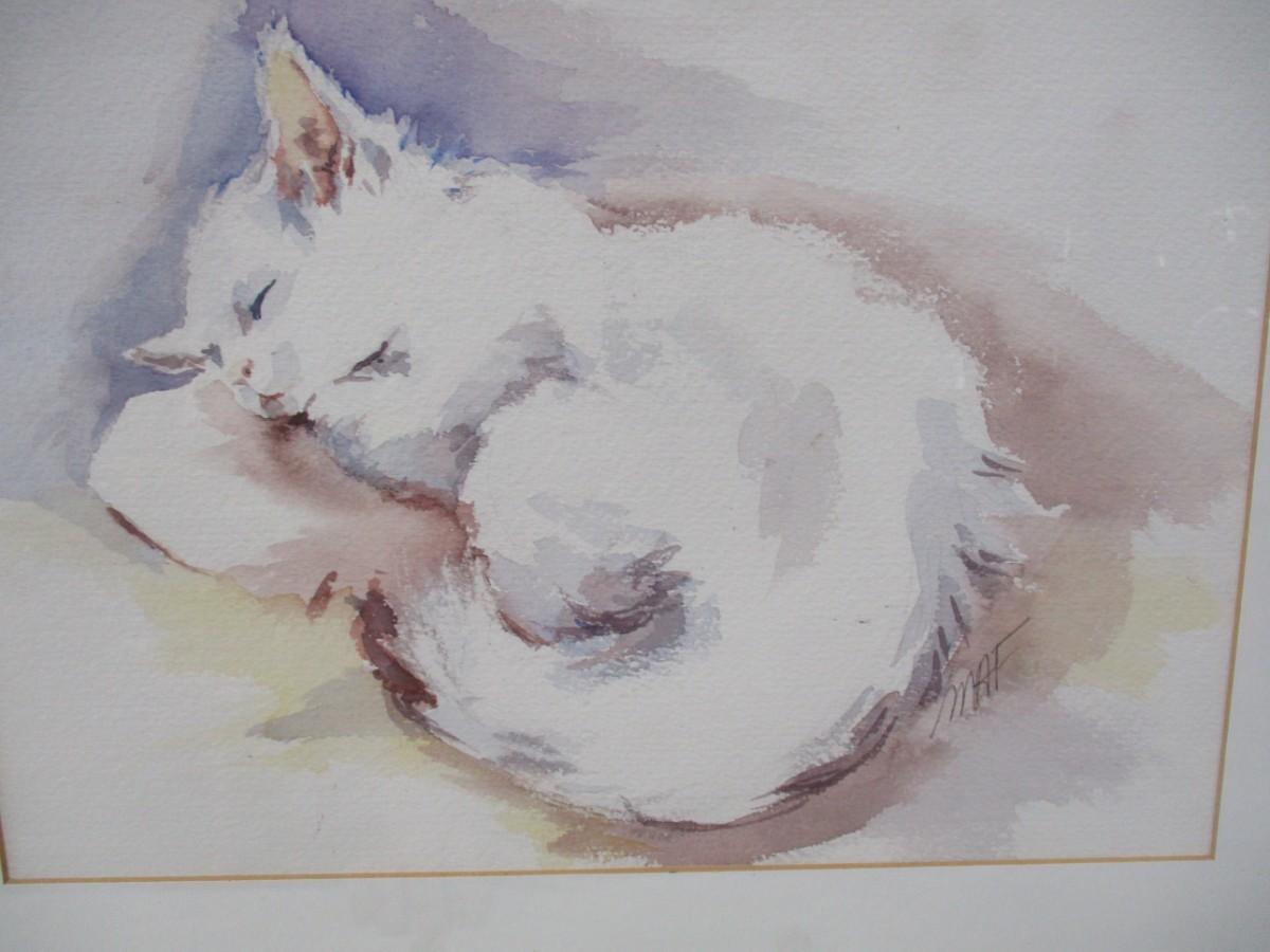Framed Sleeping Kitty Watercolor Art