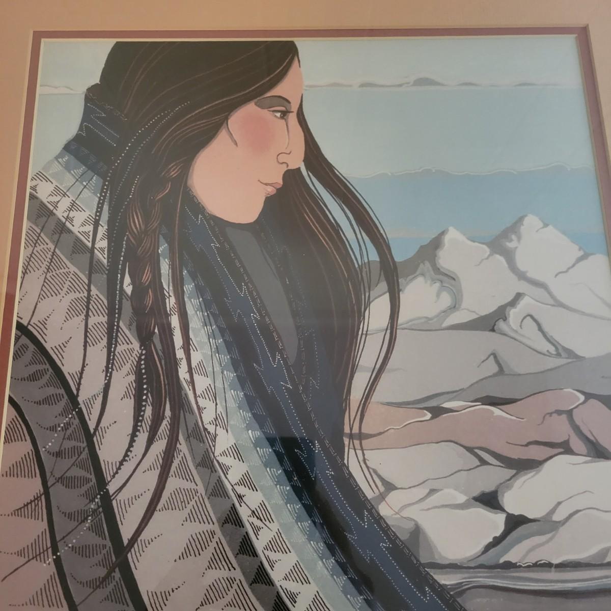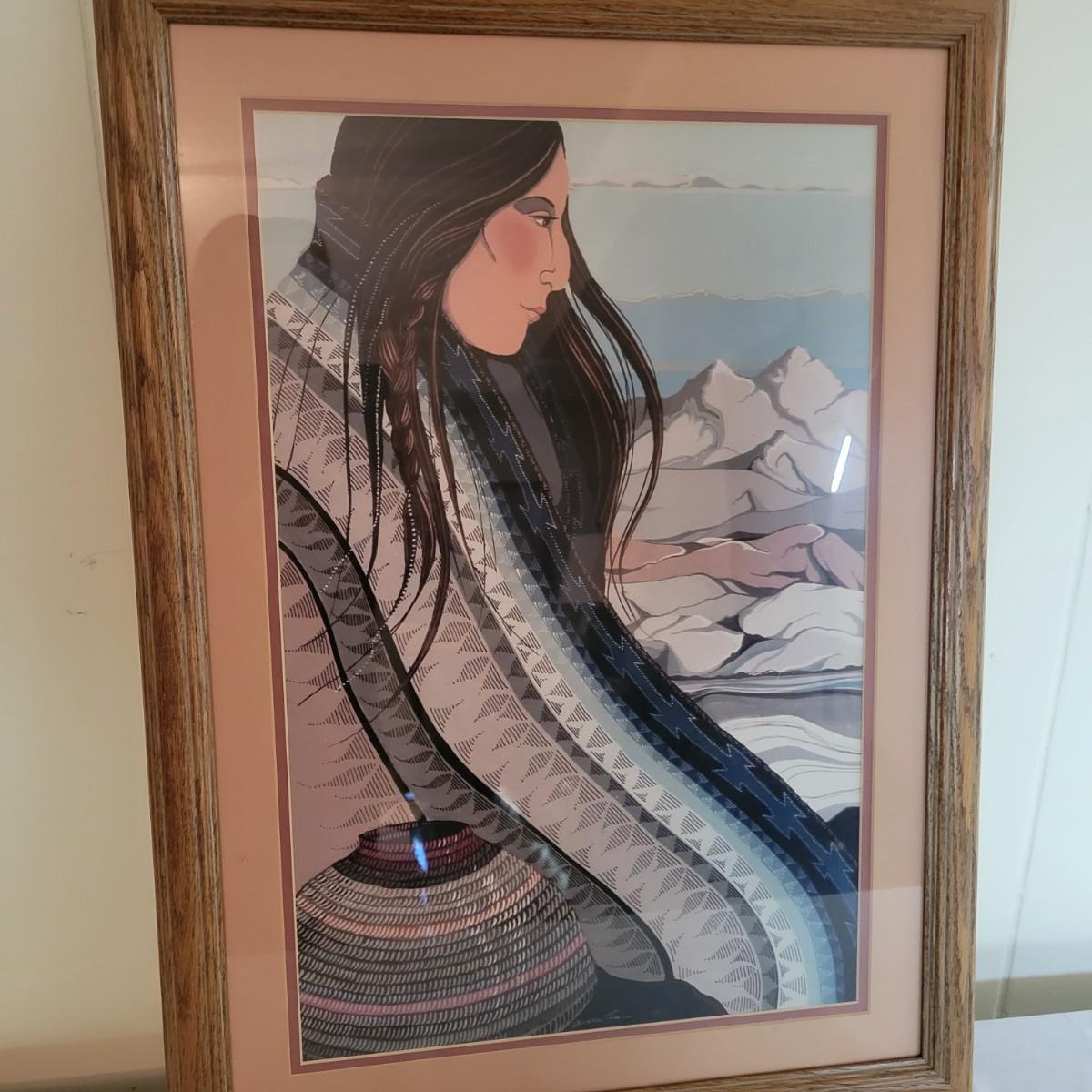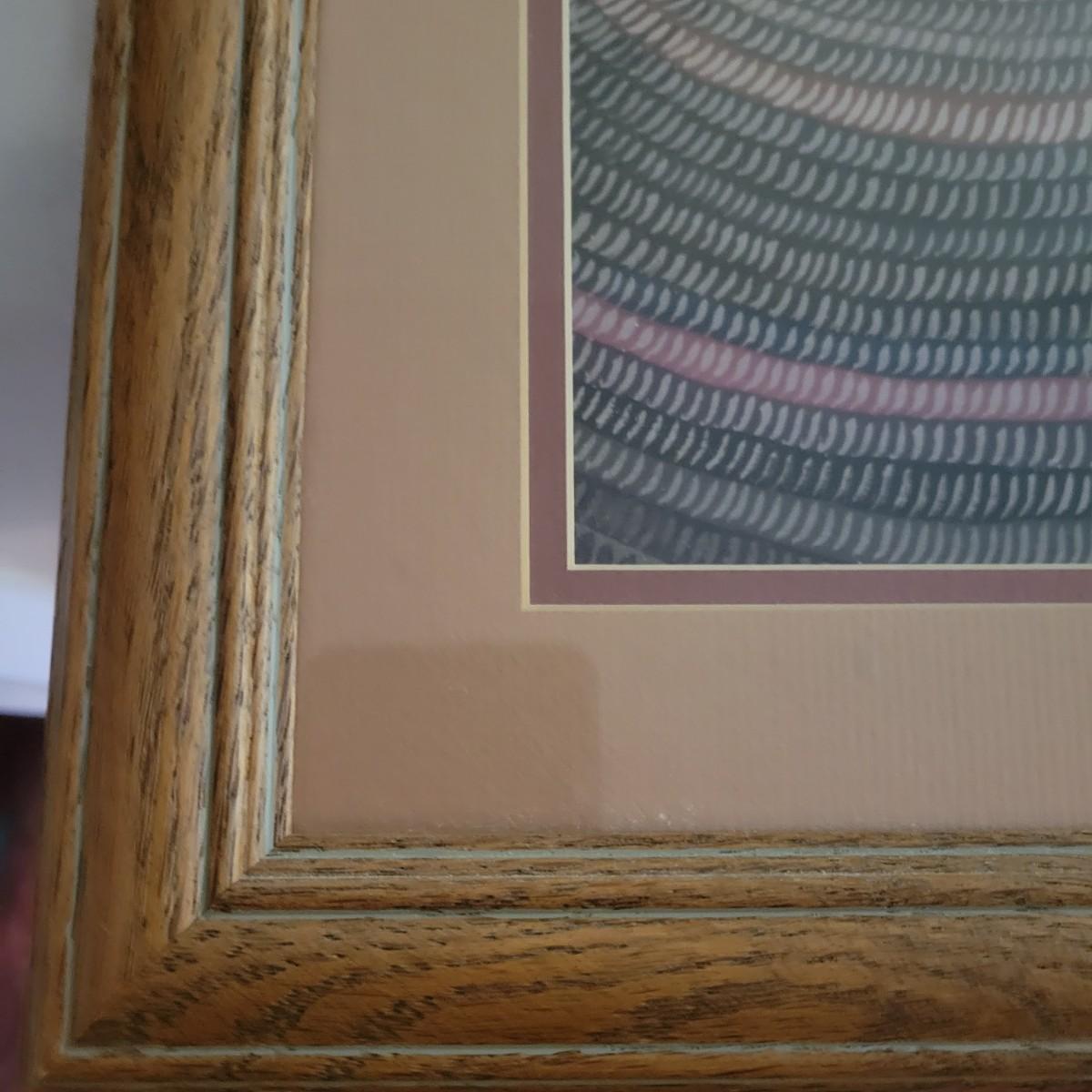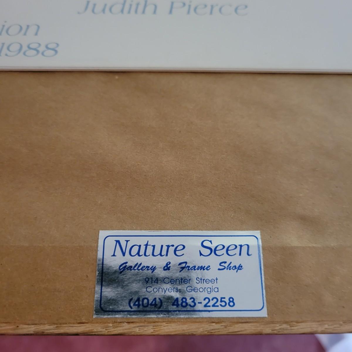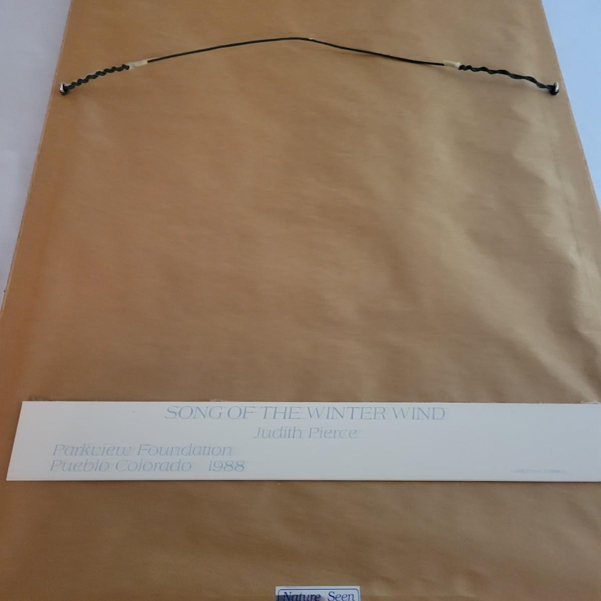 A framed print by Judith Pierce in good condition with no damage. "Song of the Winter Wind" print double matted and in a stained oak frame. Measures approximately 18.5" x 25.5" x 1". Shipping available. Shipping Art can be costly please call UPS store at 828-252-6930 for quote