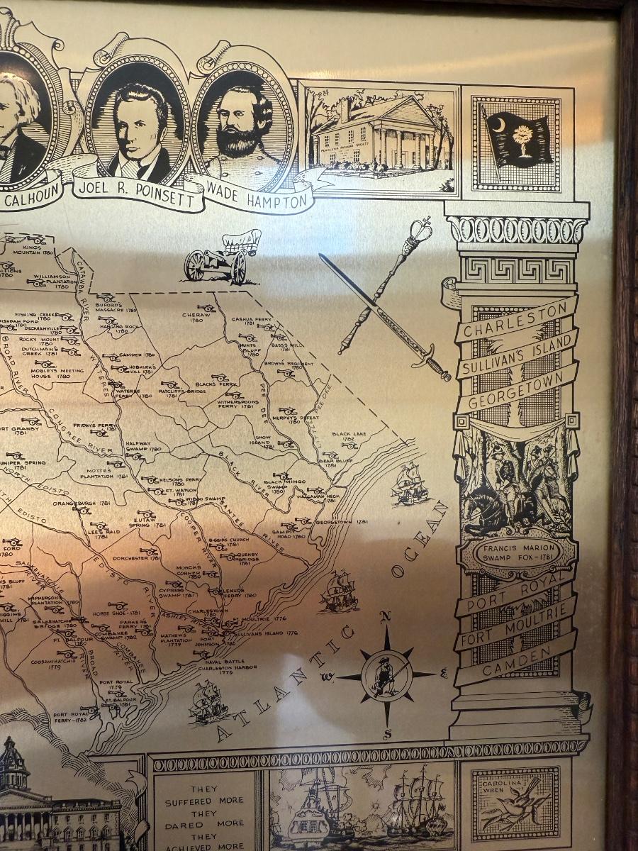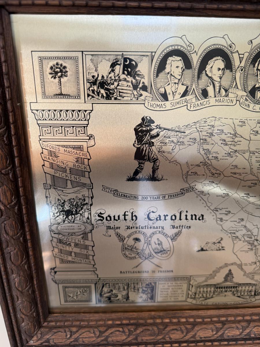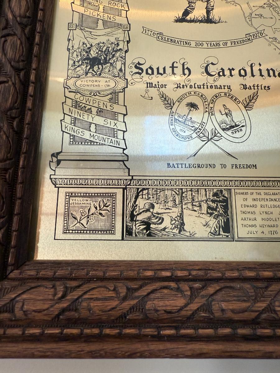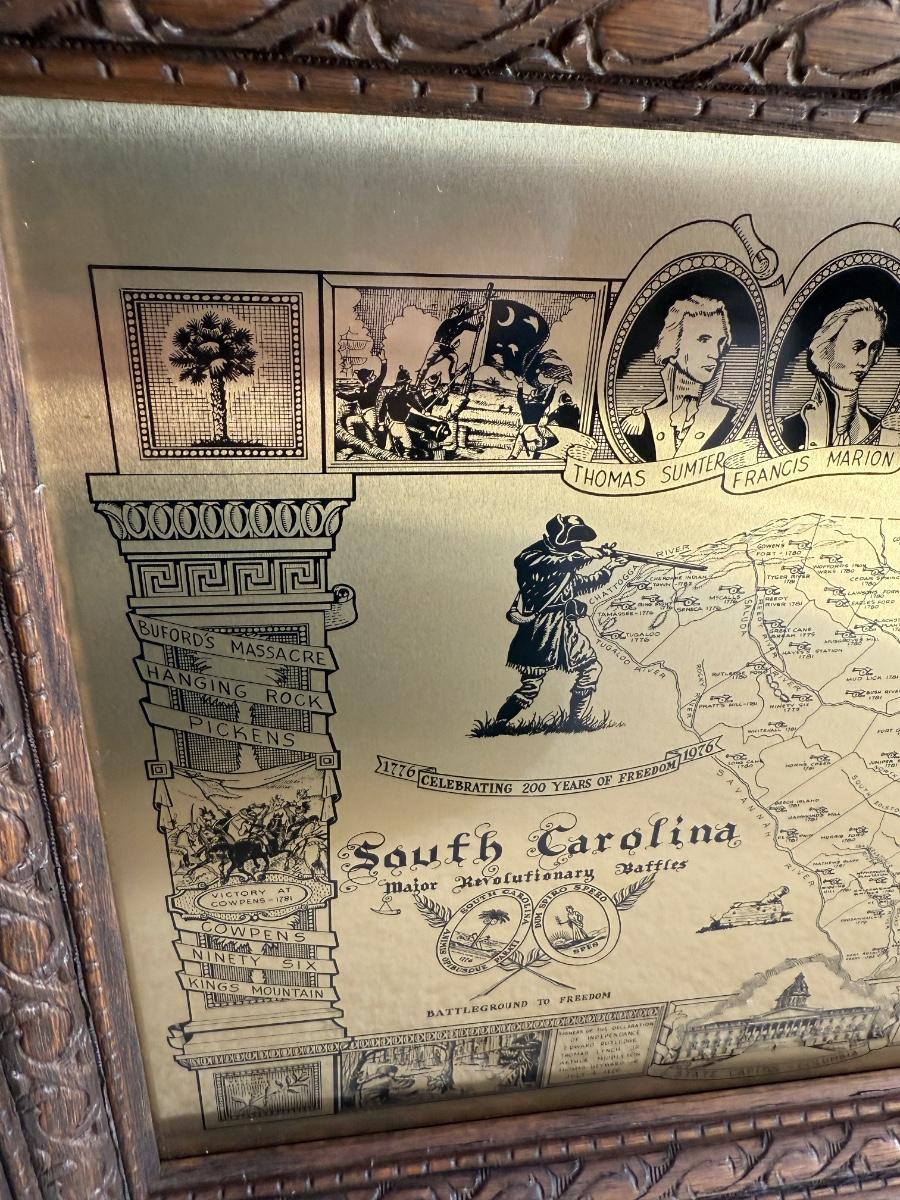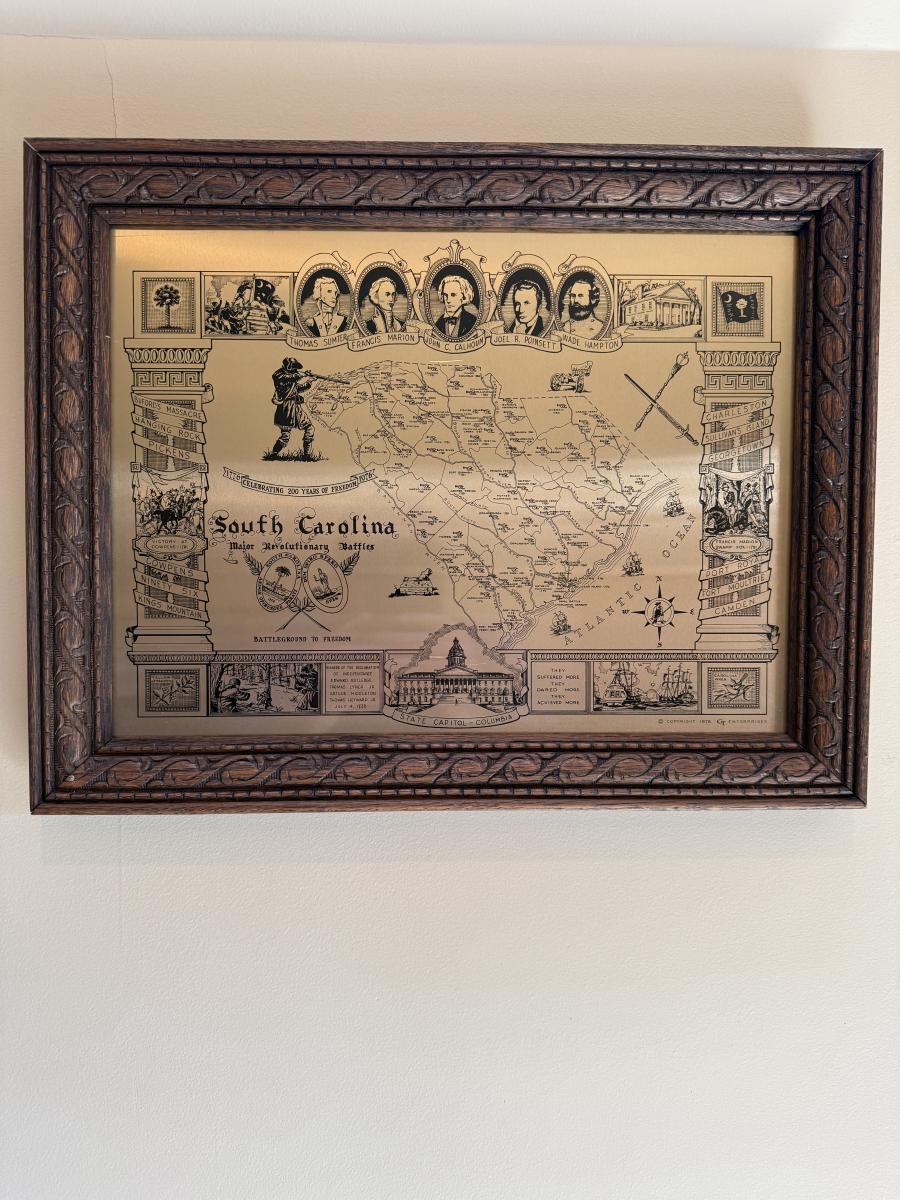 Framed South Carolina Map Following The Major Battles of The Revolution