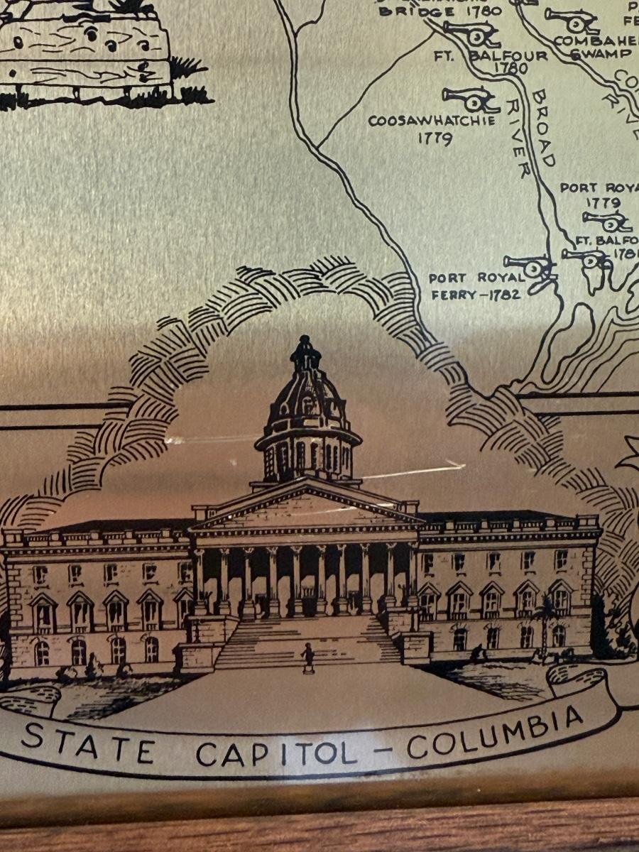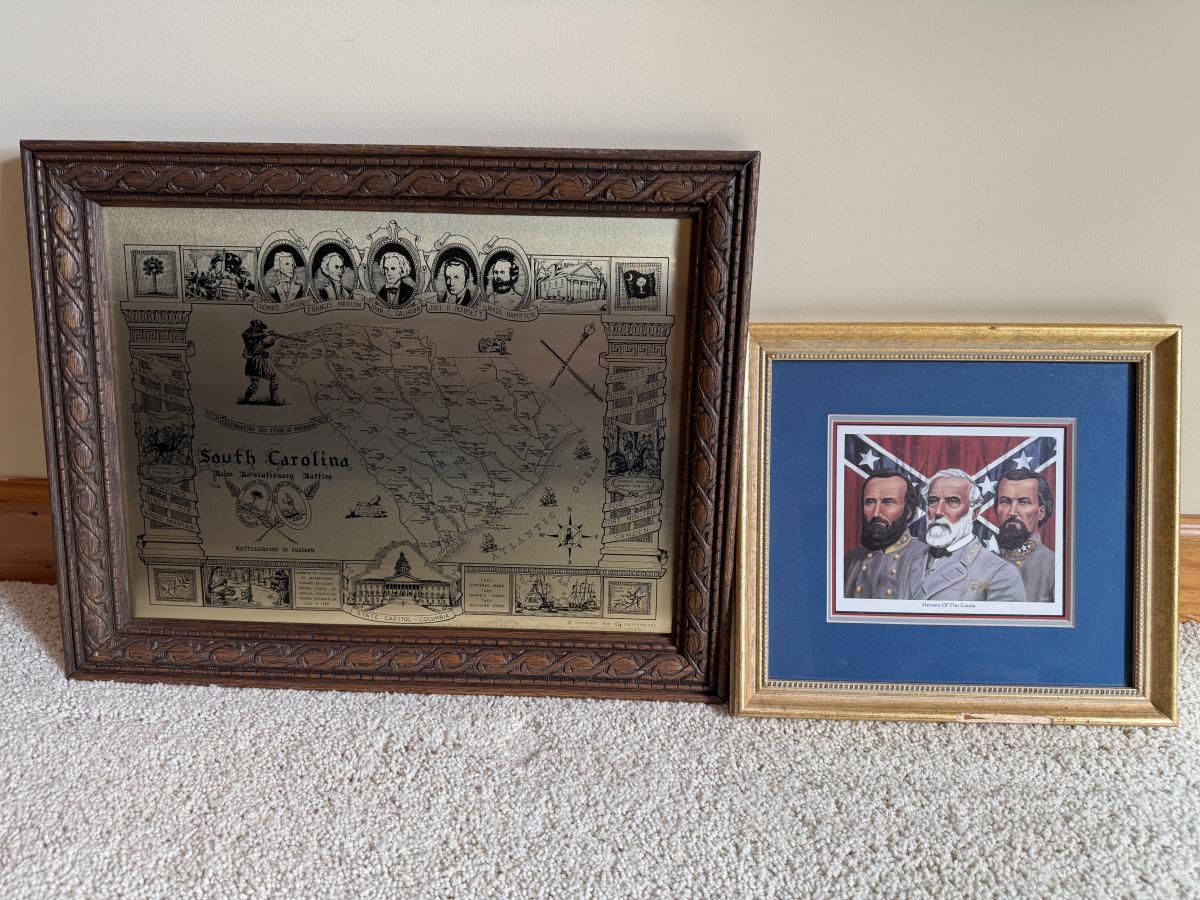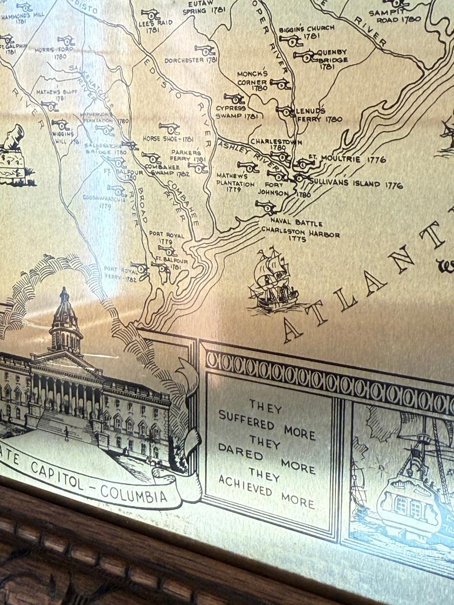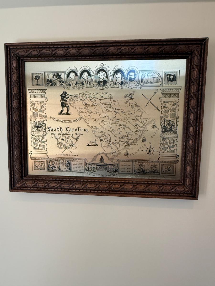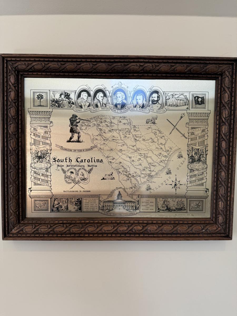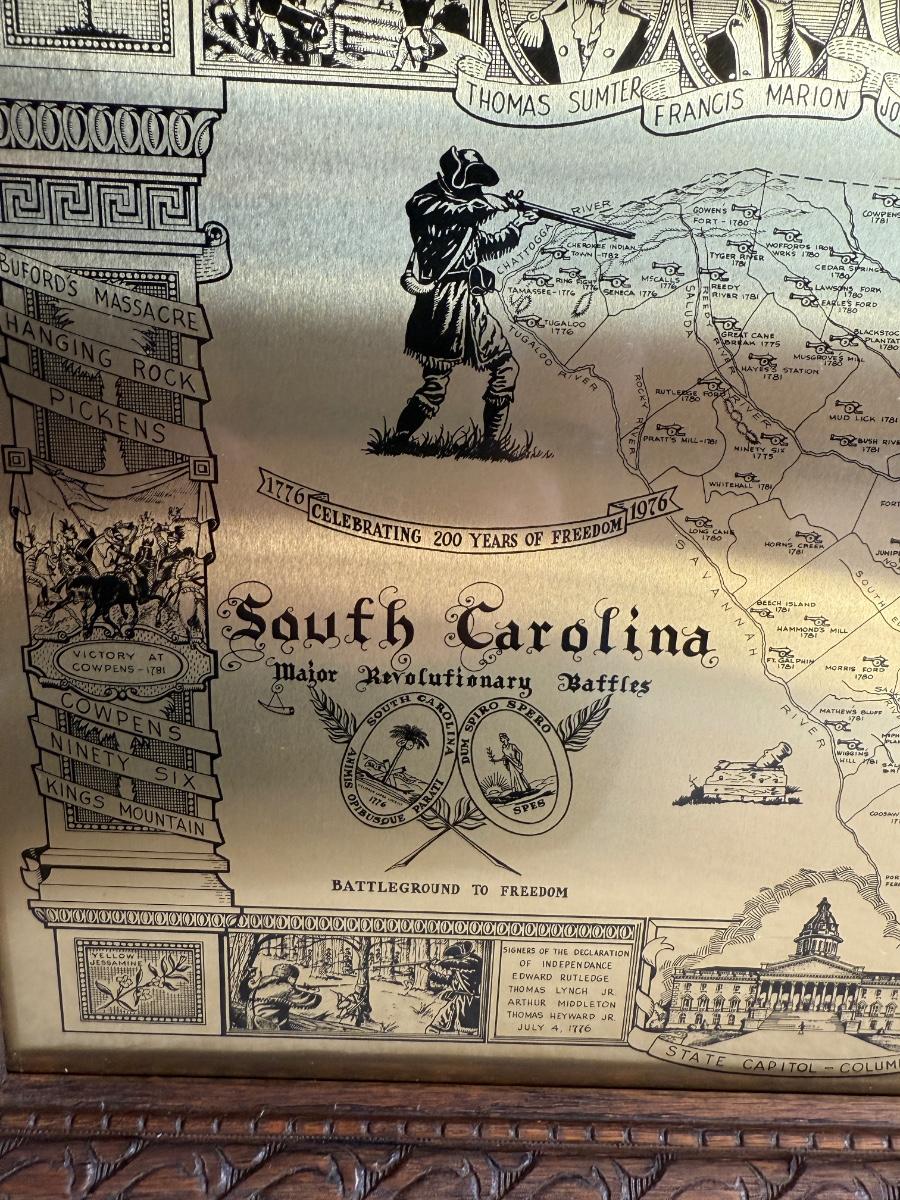 Framed South Carolina Map Following The Major Battles of The Revolution
