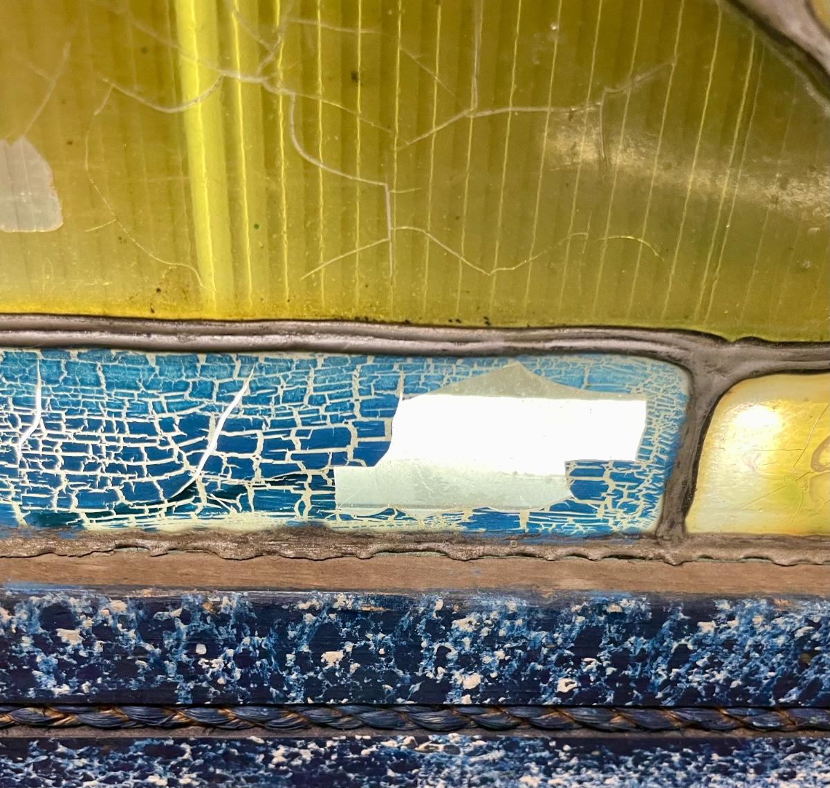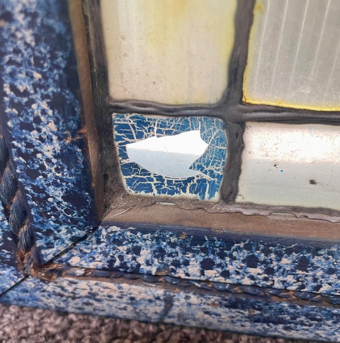There is a break in 2 places along the bottom, see pictures.