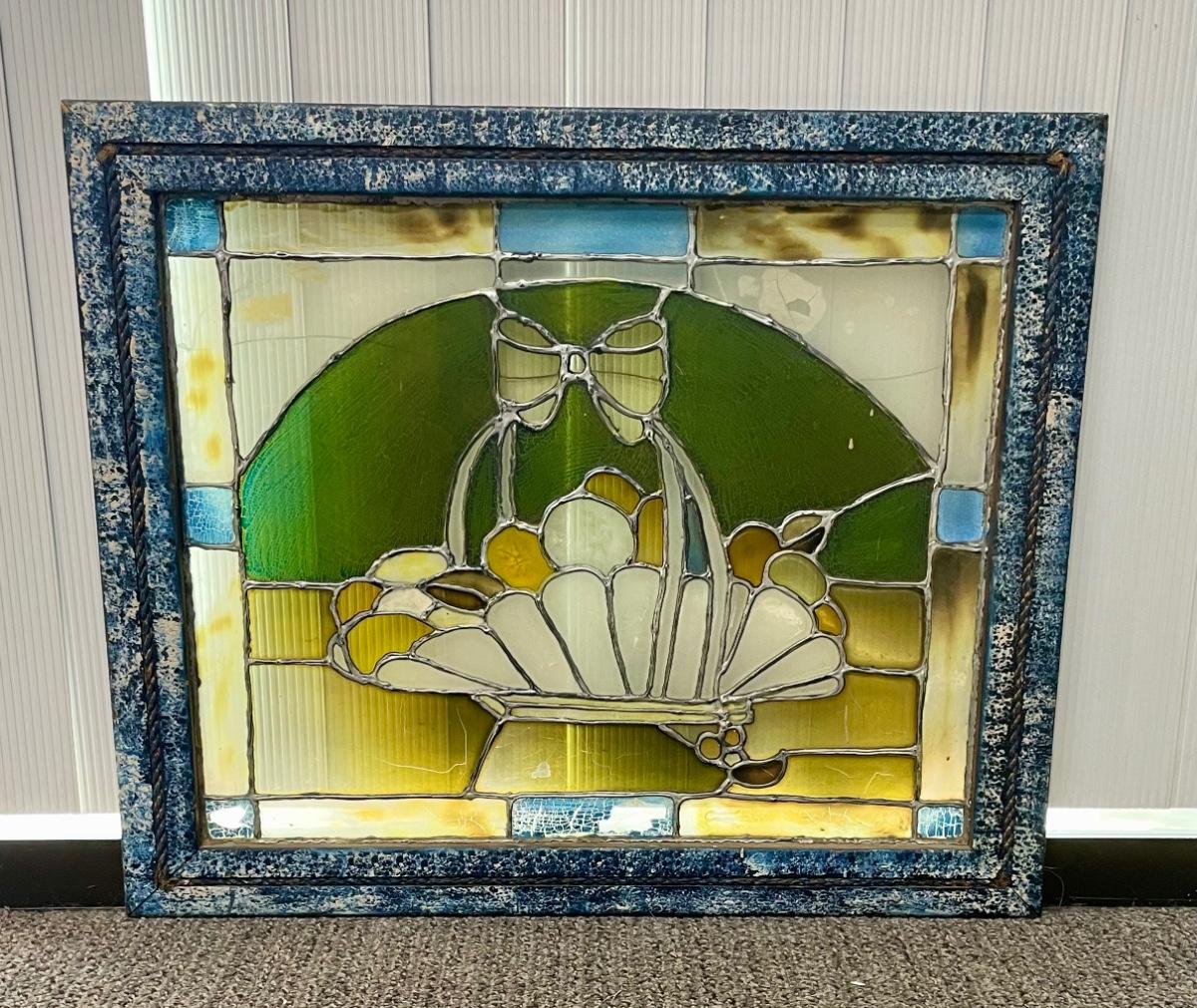 Framed Stained Glass Window Hanging Art