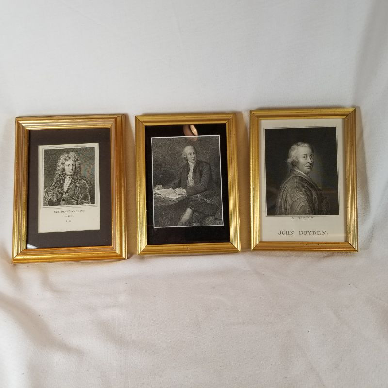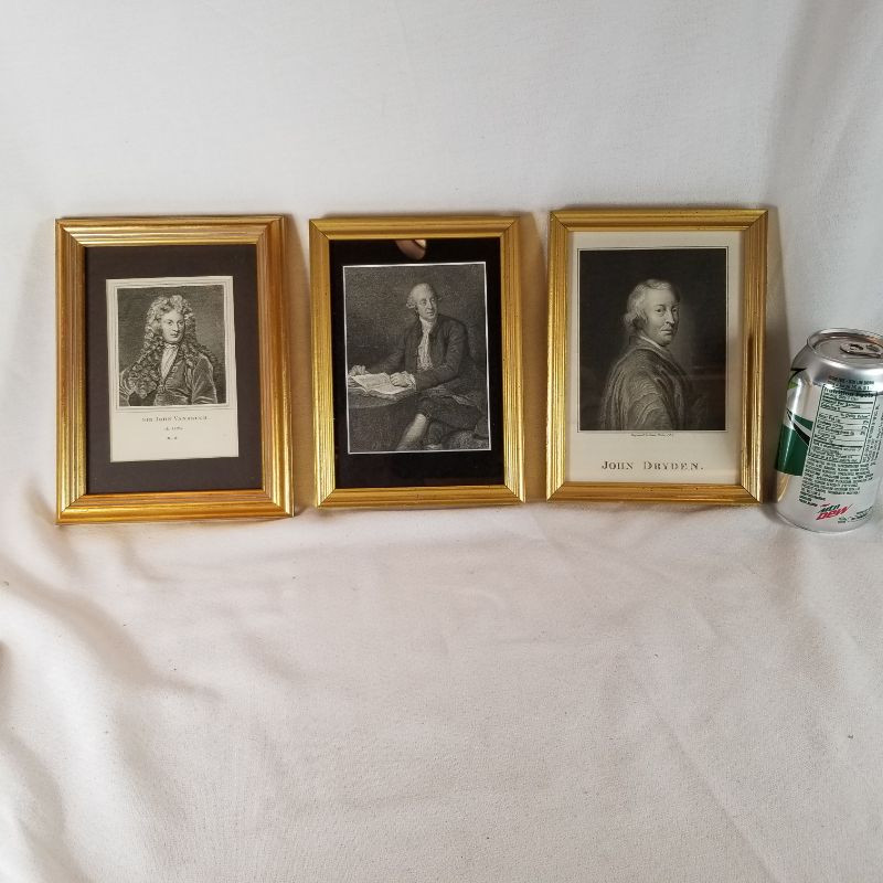 A grouping of 3 steel engravings, nicely framed. The portraits are of Sir John Vanbrugh of 1726, Arthur Murphy, Esq., and John Dryden. They are 6-inches wide x 8-inches tall. Very good condition - ready to hang.
