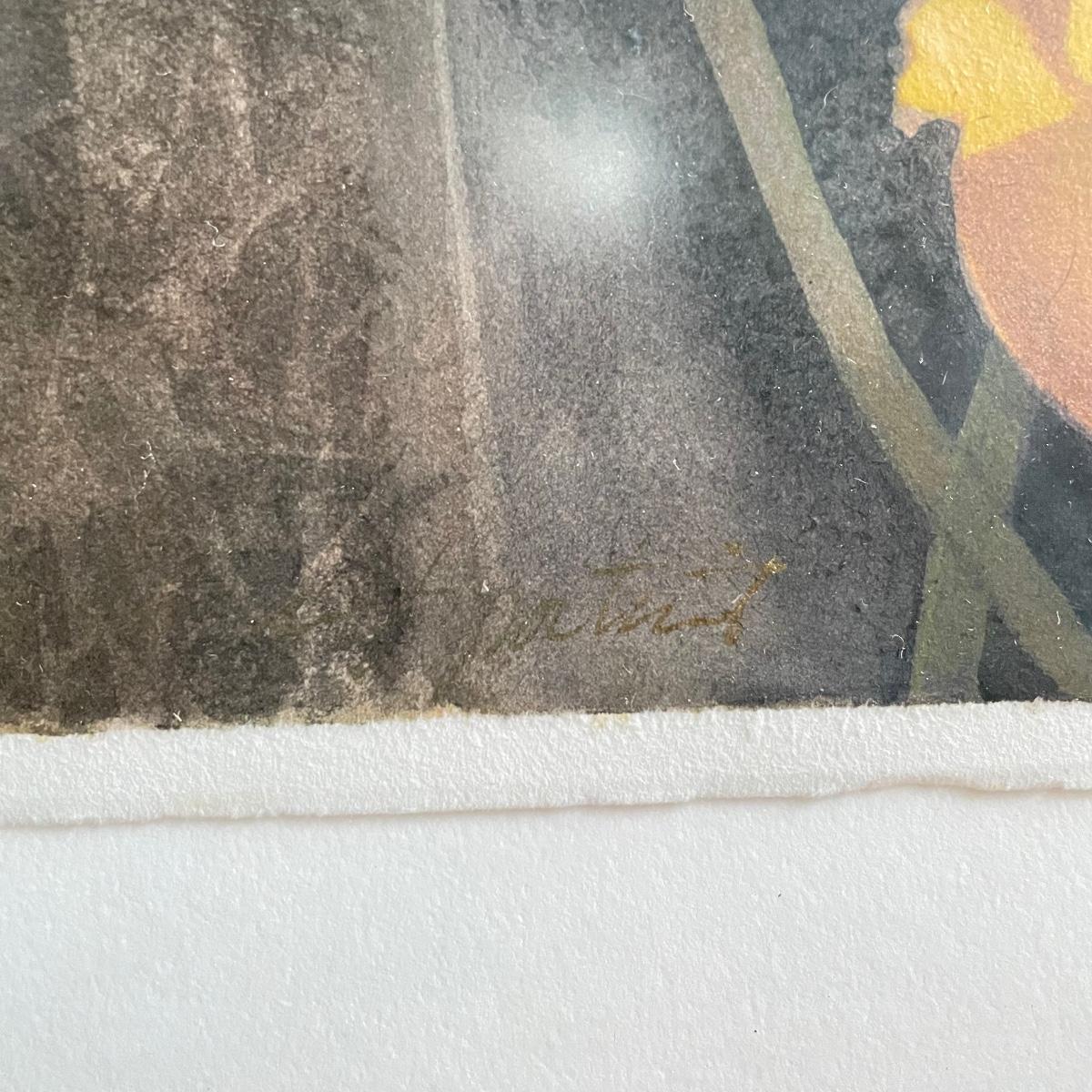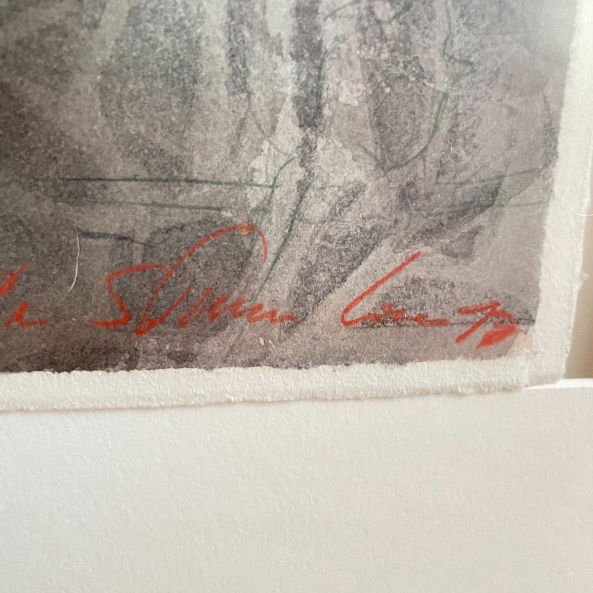 Fine art by S. Tucker Cooke in an elegant wood frame with low gloss/reflective glass. Art has indiscernible writing near the signature and what appears to be “˜72. Frame measures 32.5” x 40.5”. Shipping available. Please call UPS with dimensions at 828-252-6930 for a shipping quote prior to bidding.