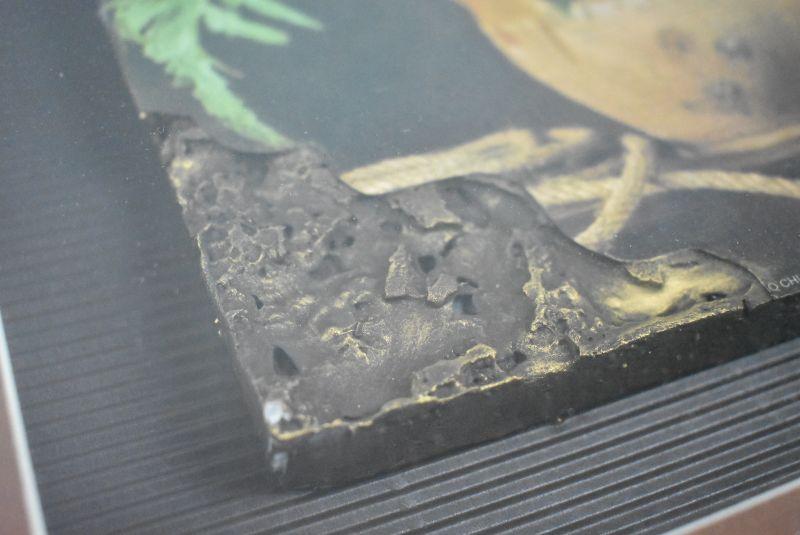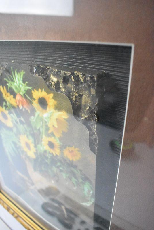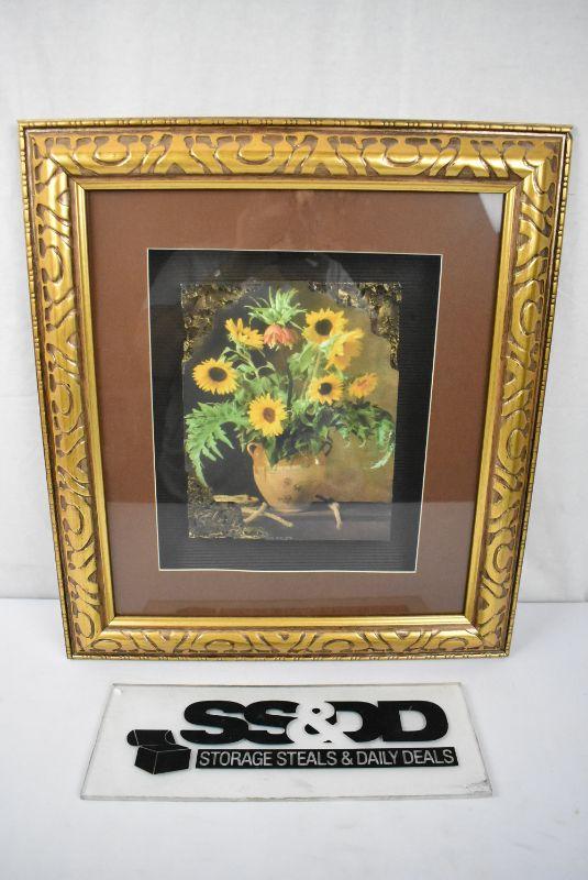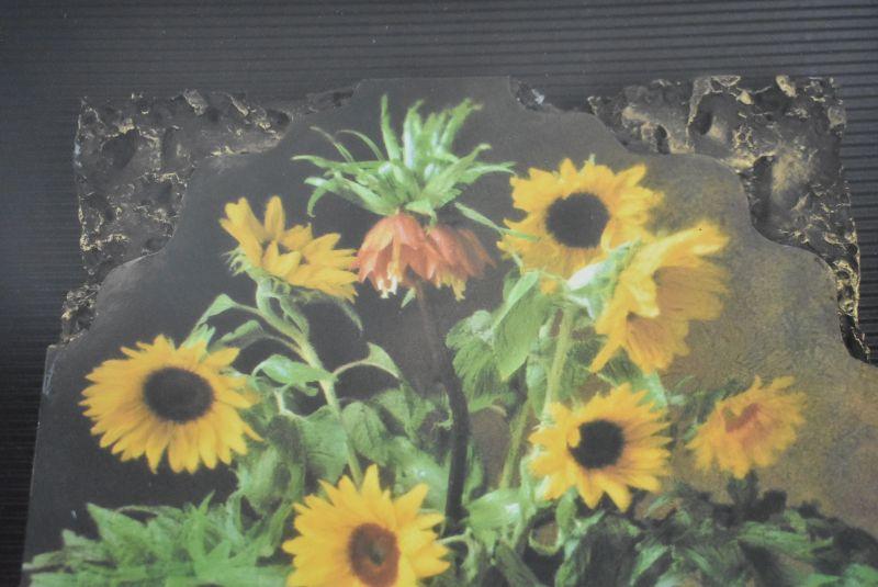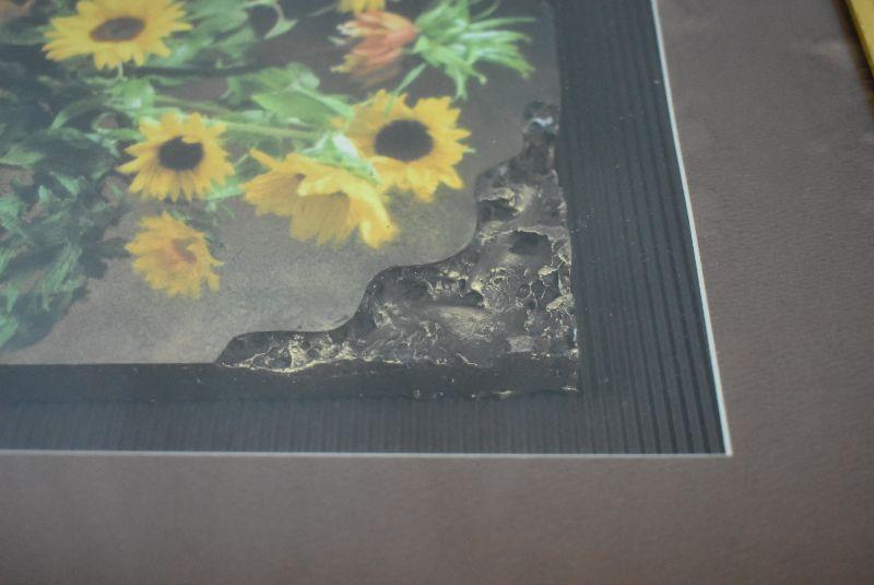 Framed Sunflower Image with Thick Stone-Like Base/Shadow Box