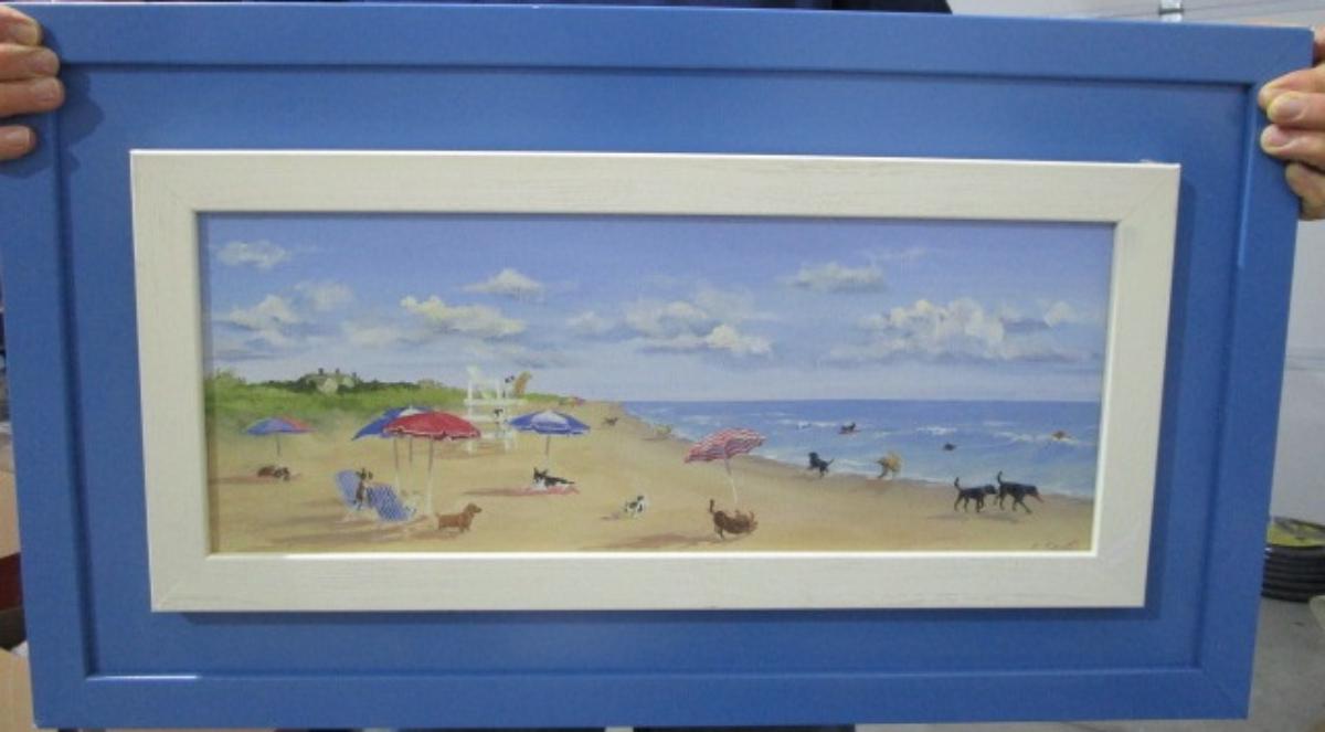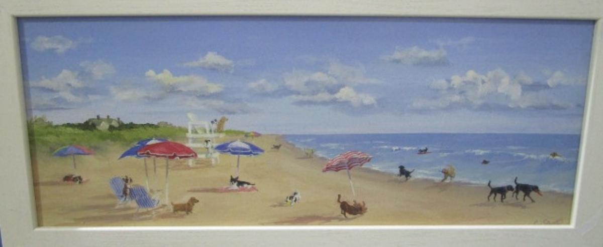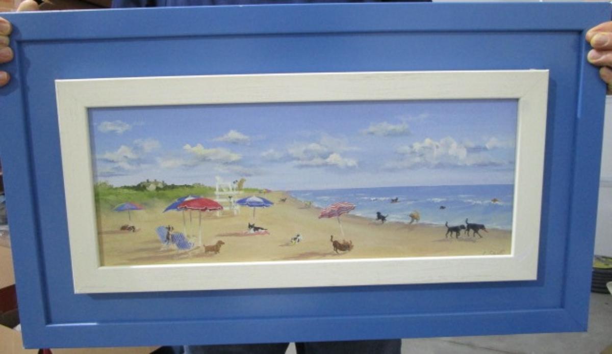 Framed textured picture of "Dogs Rule the Beach" by Carol Saxe