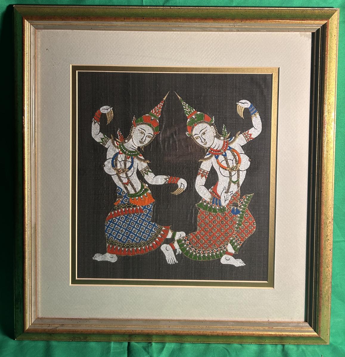 Framed Thai Beaded Textile Art Depicting Dancers
