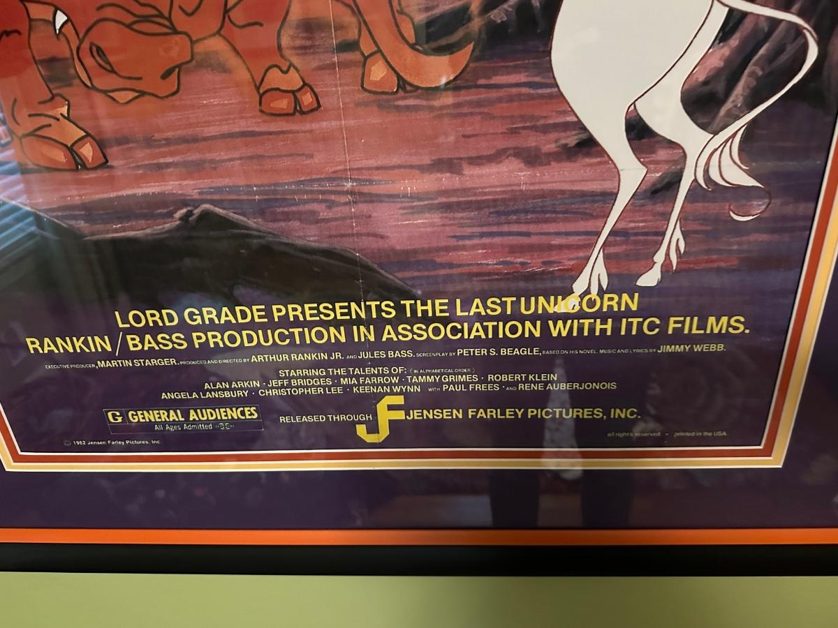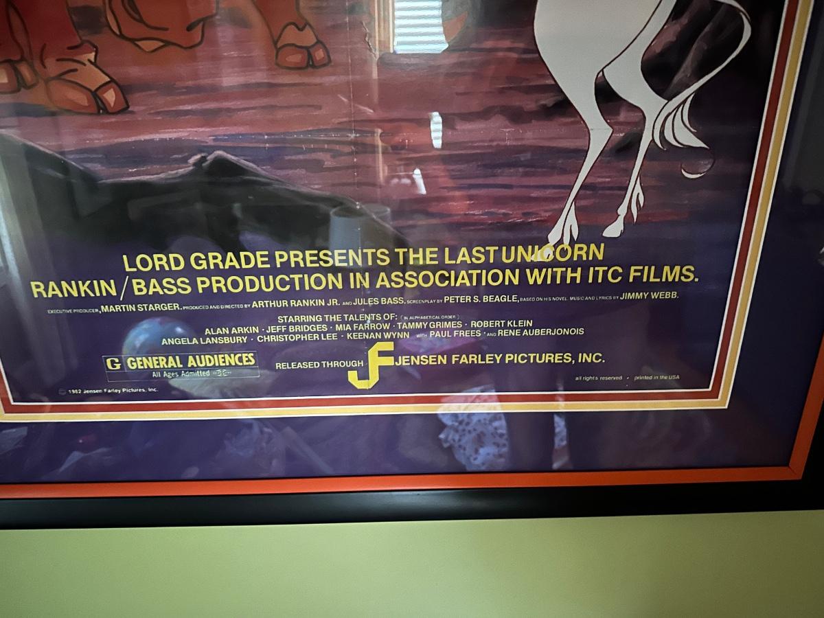 THE LAST UNICORN FRAMED POSTER 1982 33 1/2X47 1/2 JENSON FARLEY PICTURES PRINTED IN USA