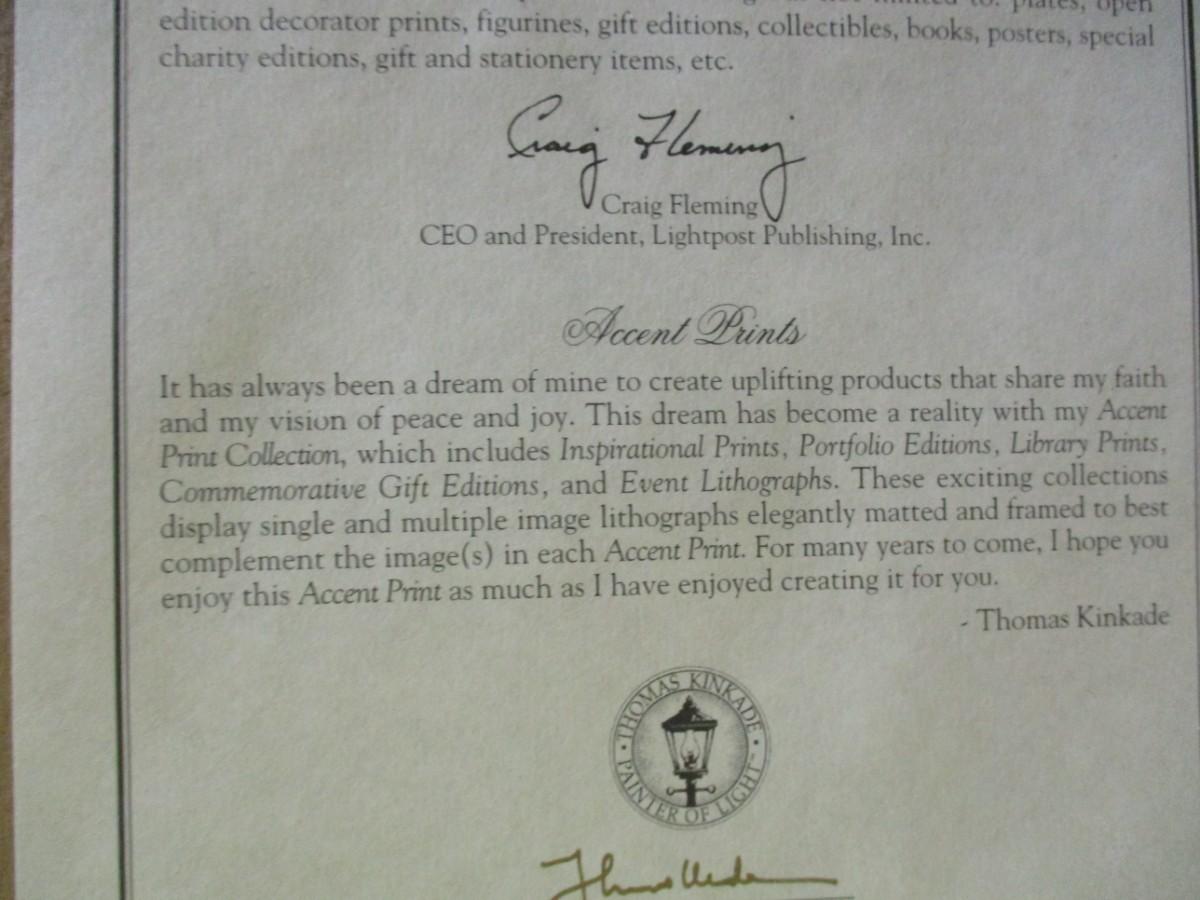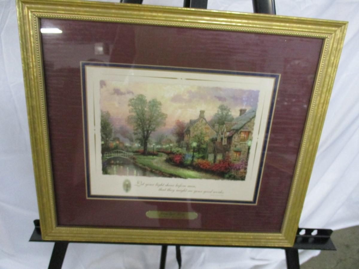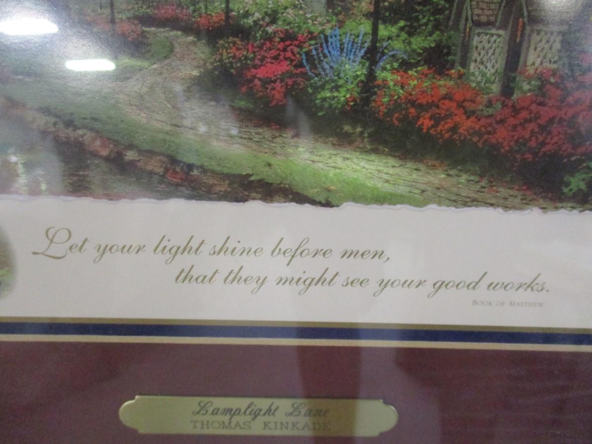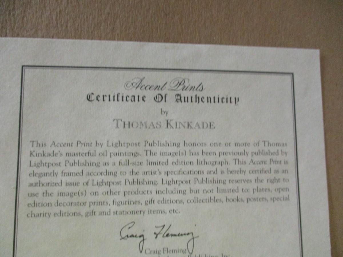 Framed Thomas Kinkade "Lamplight Lane" Print With COA