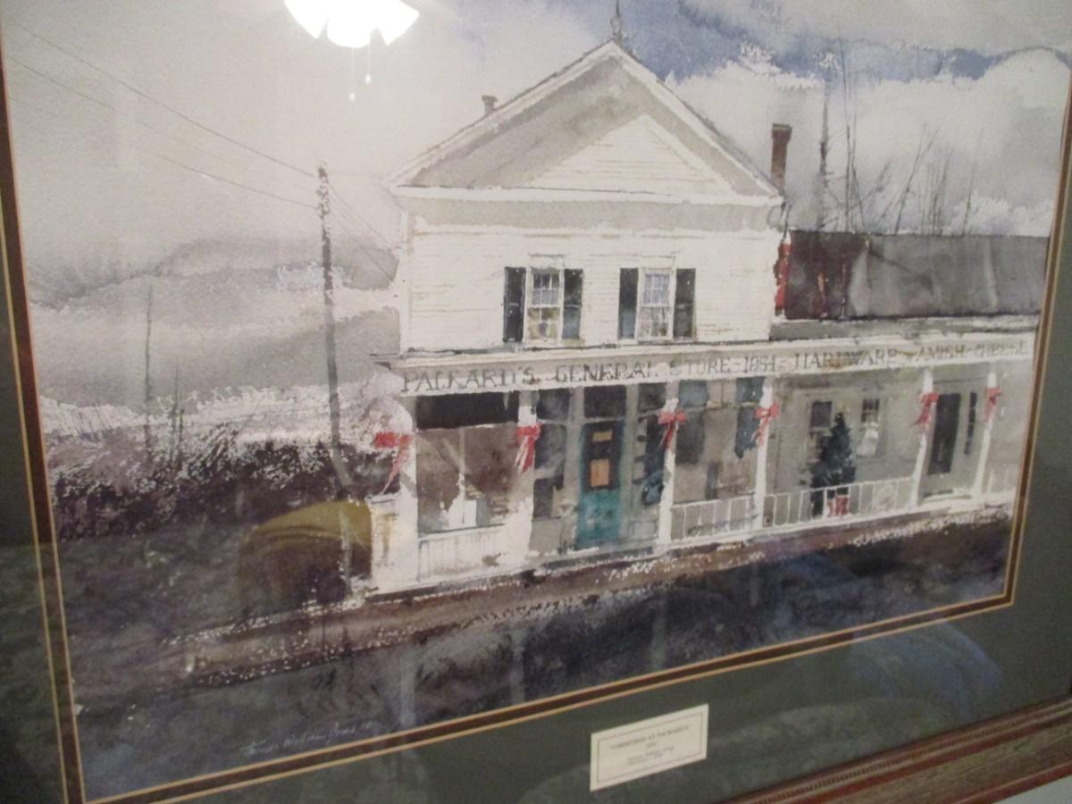 Framed Thomas William Jones Watercolor Art "Christmas At Packard's"