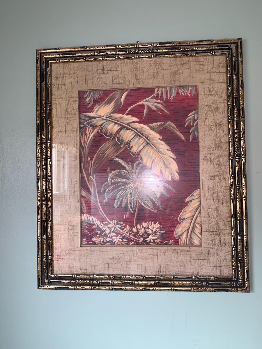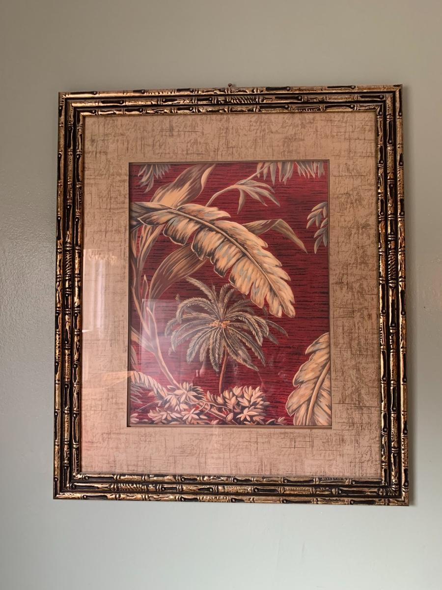 Tropical Print by Samuel Blanco, matted in a bamboo style frame.