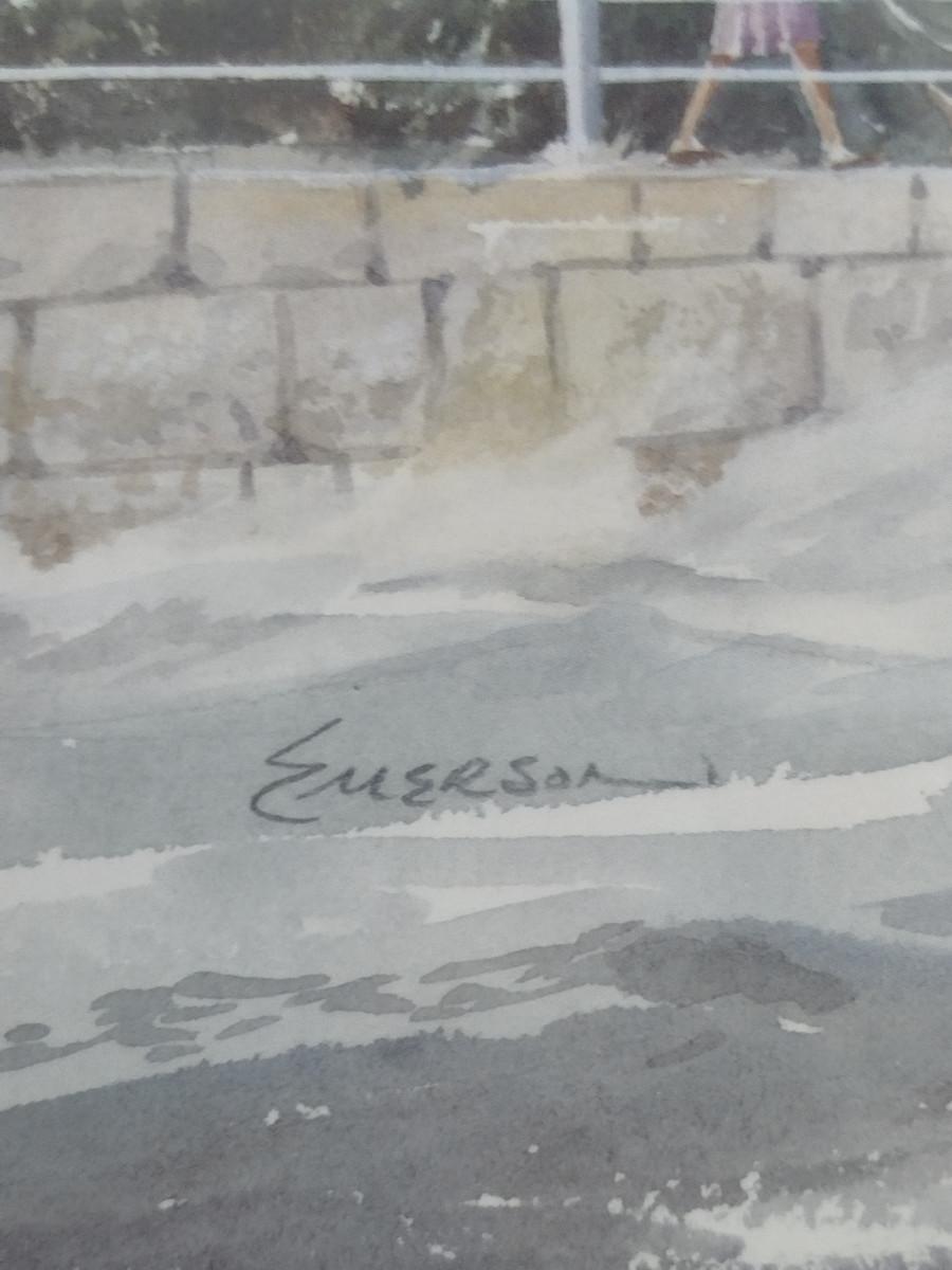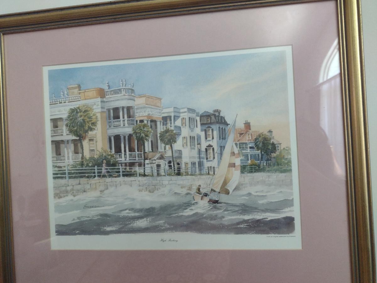 Framed Under Glass Print 'High Battery' based on Emerson Watercolor- Approx 21 1/2" x 17"