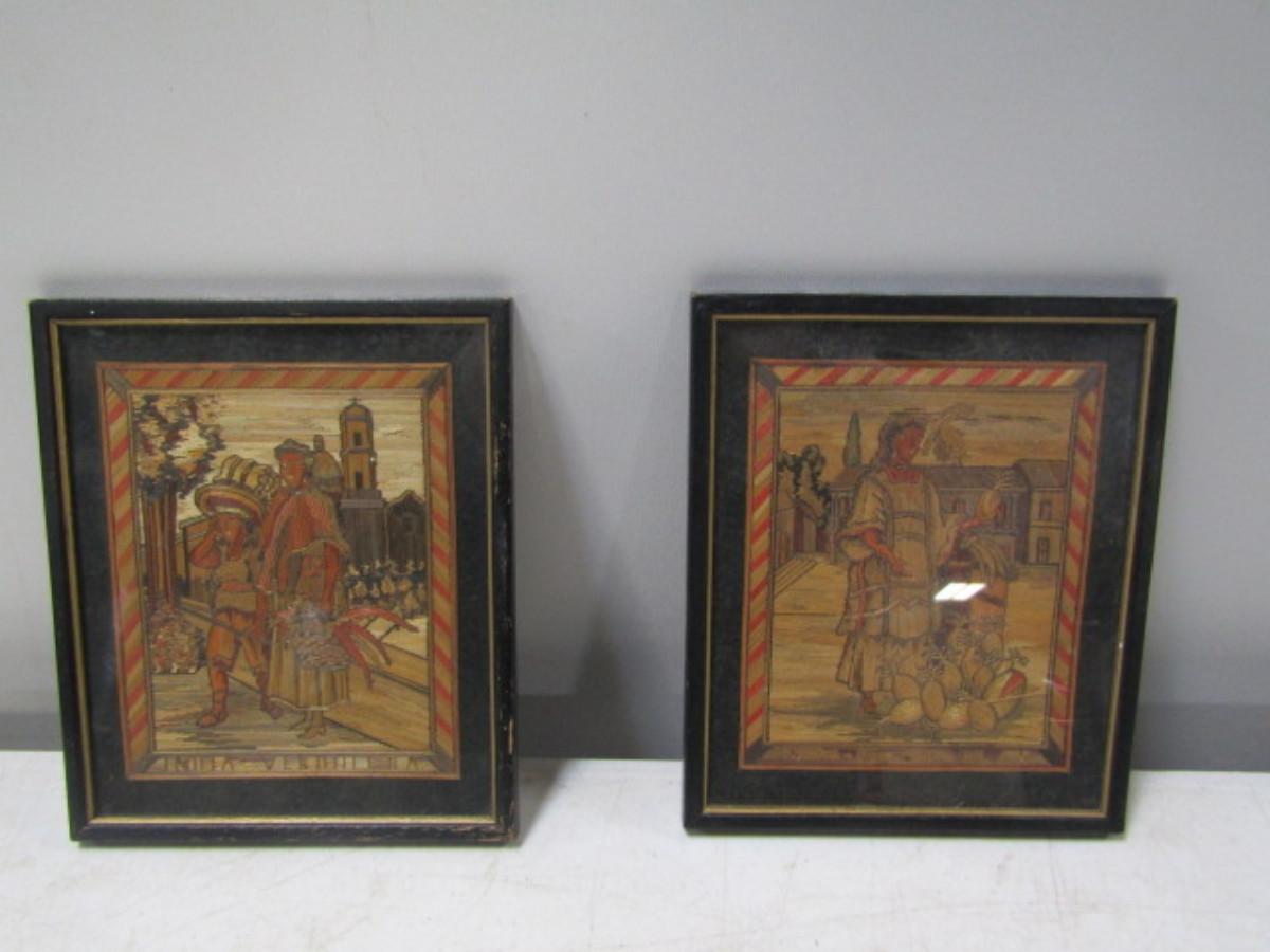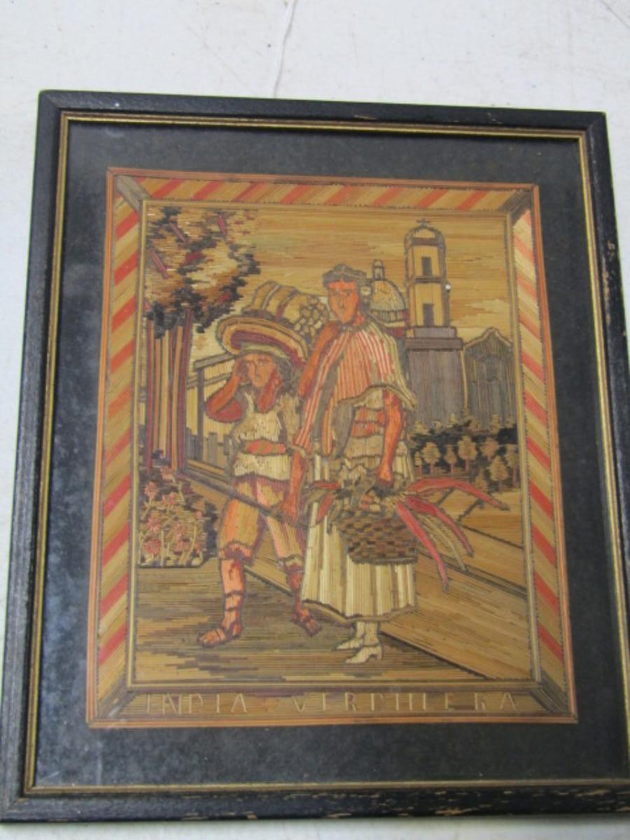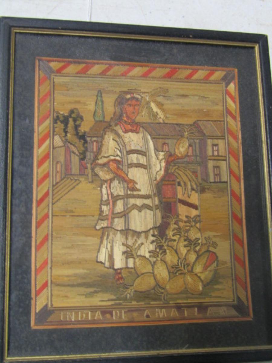 Framed Under Glass-Set of Two Vintage Handmade Art Pieces Made from Porcupine Quills