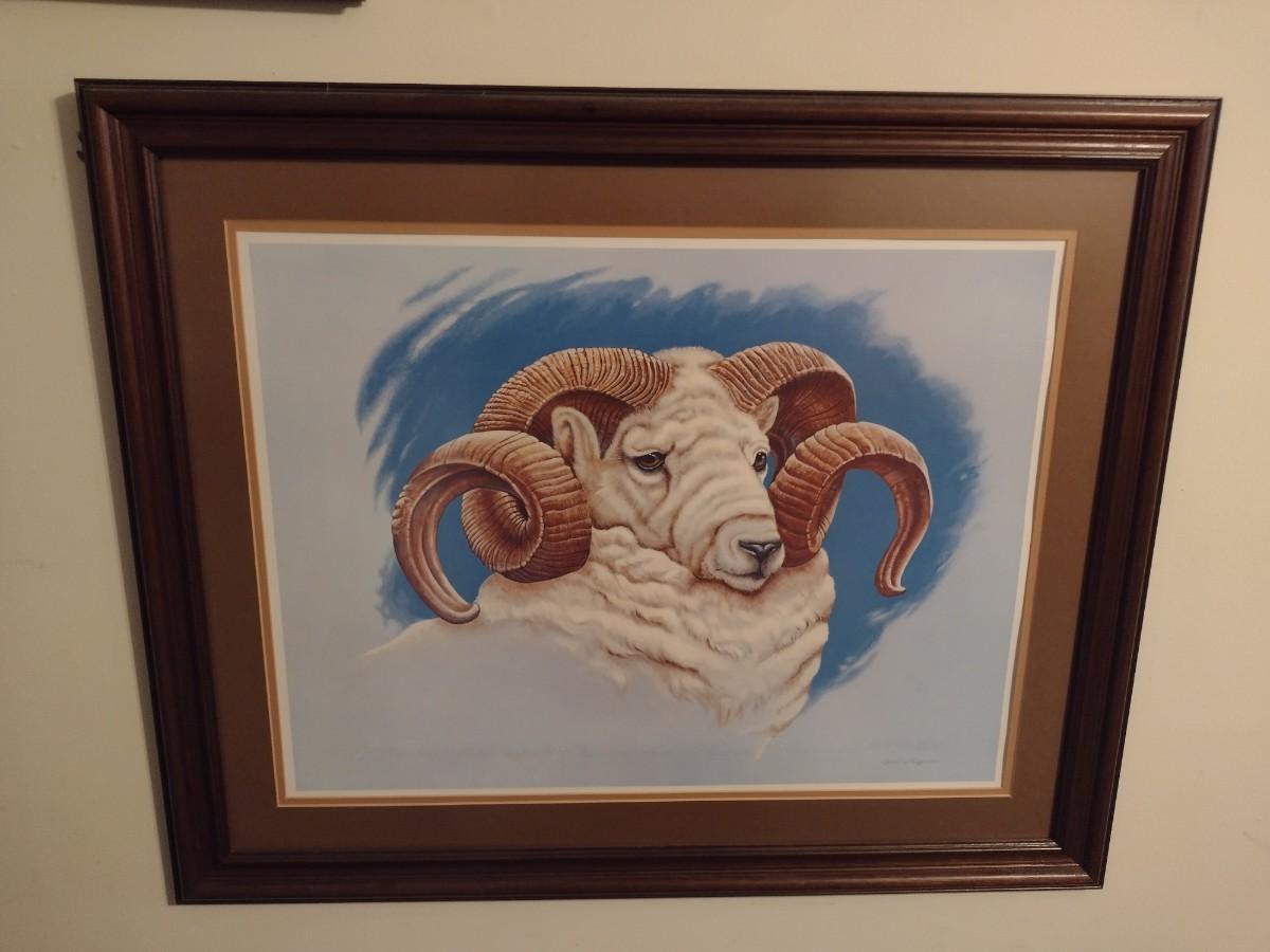 Framed University of North Carolina Rameses School Mascot Print Signed by Alton Langford