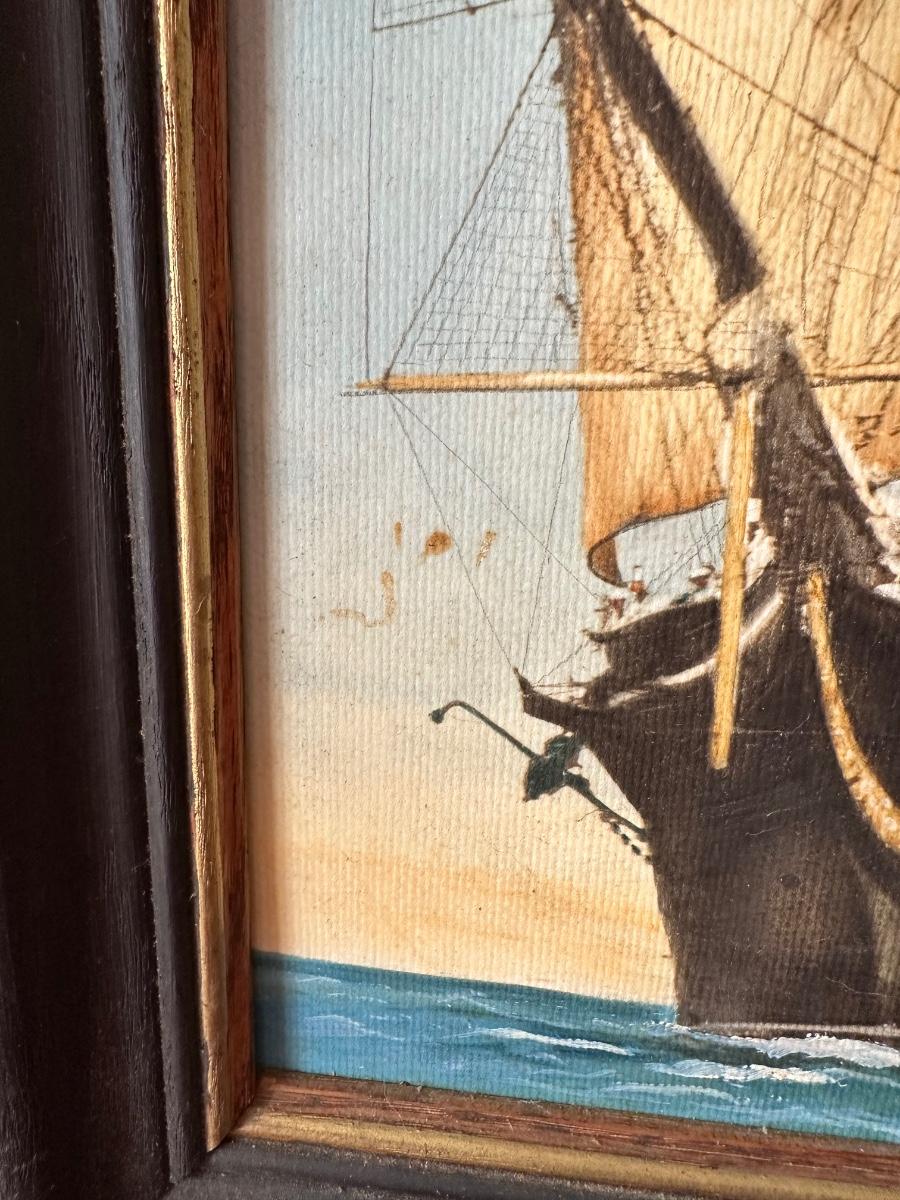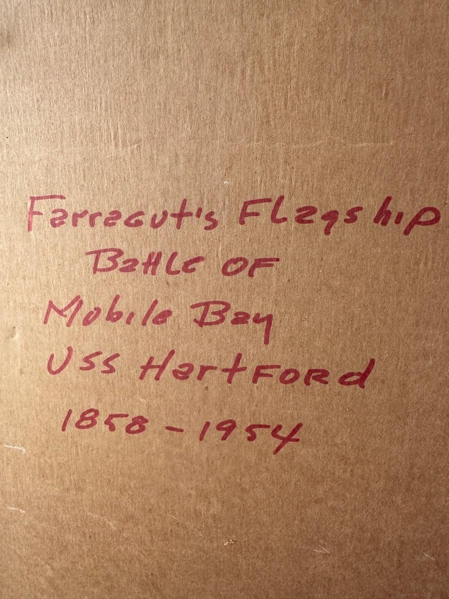 FRAMED USS HARTFORD HAND COLORED PERMANENT OIL BATTLE OF MOBILE BAY