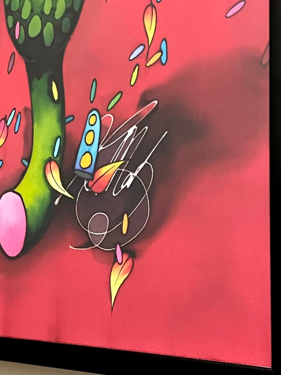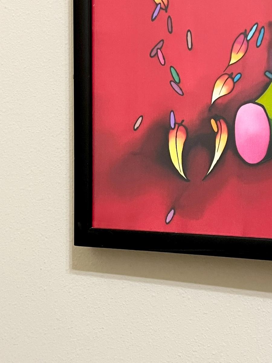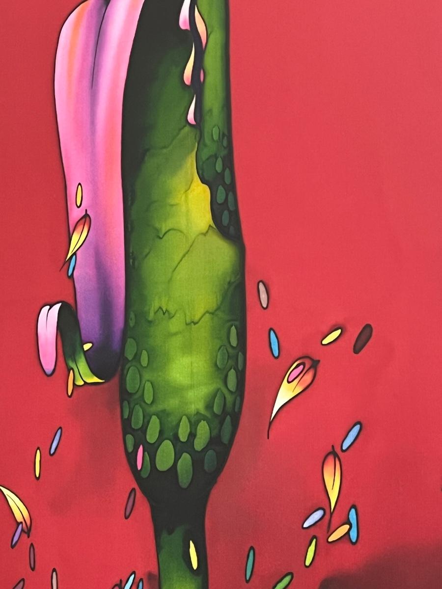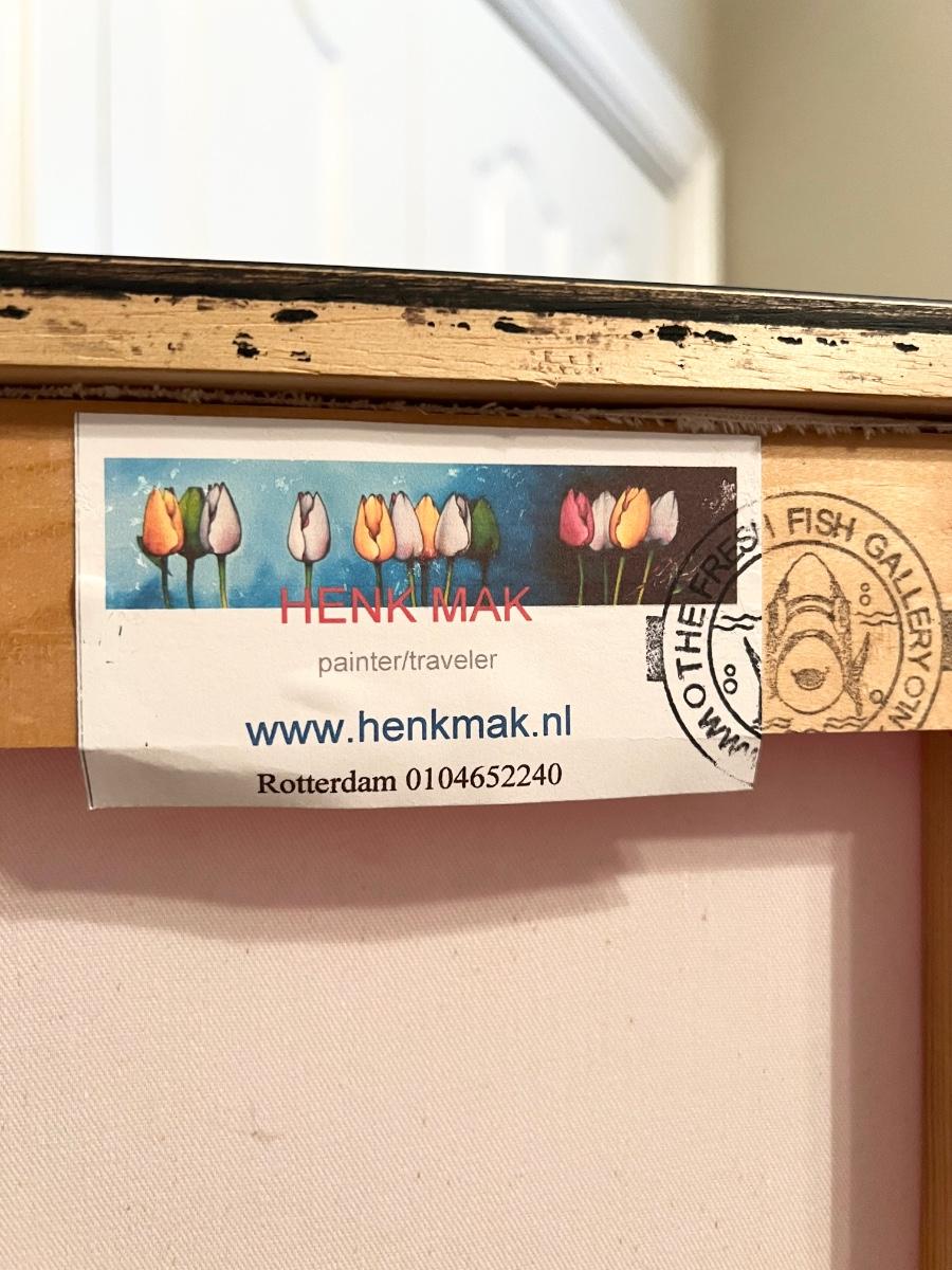 HENK MAK ~ Framed Vibrant Original Painted Tulip Silk Scarf Behind Acrylic