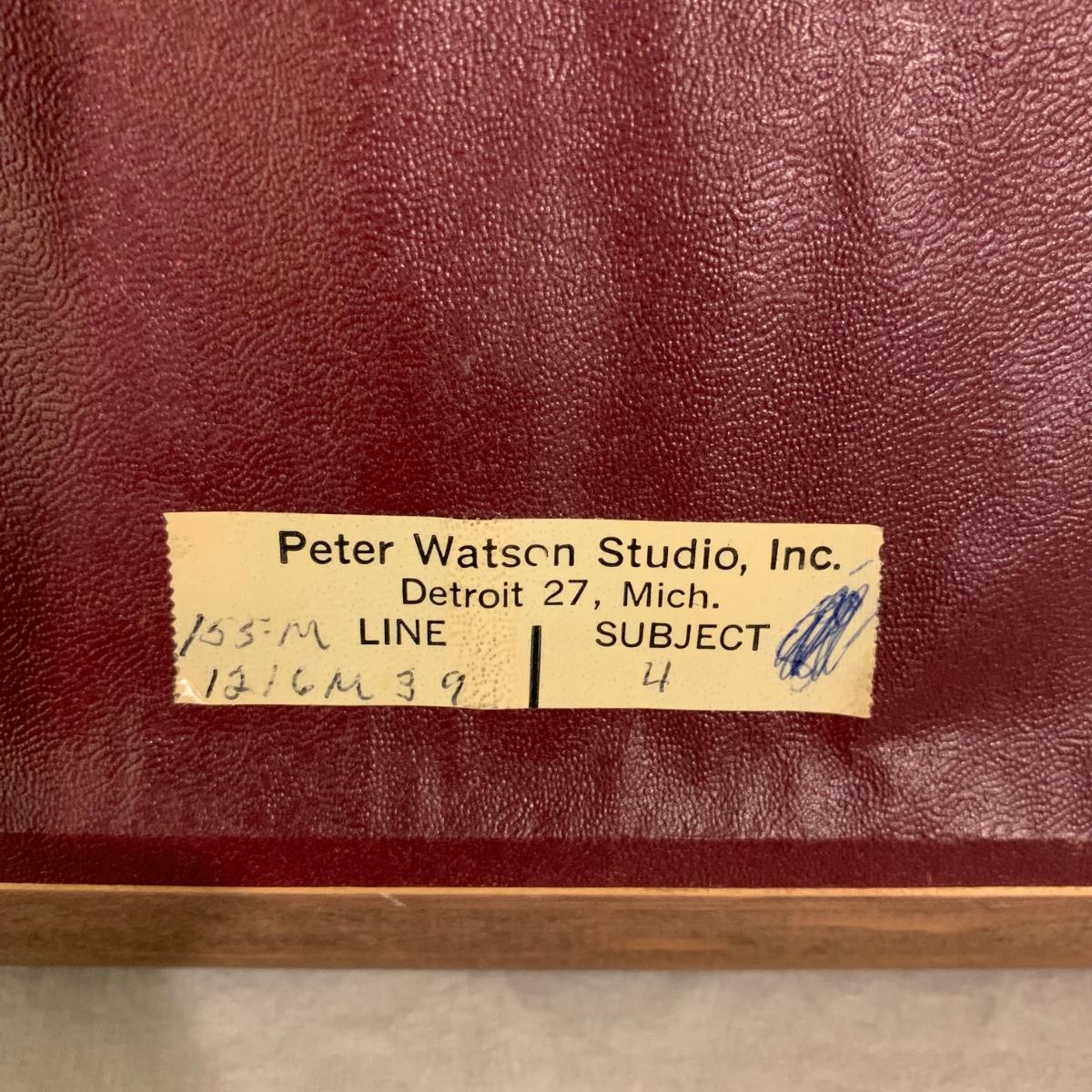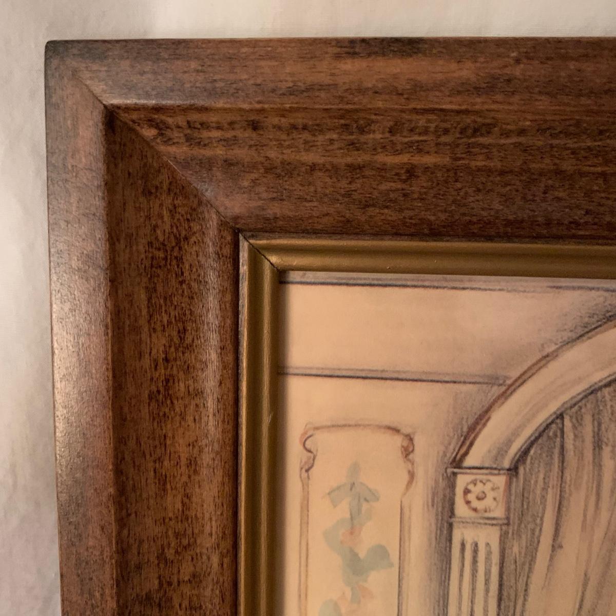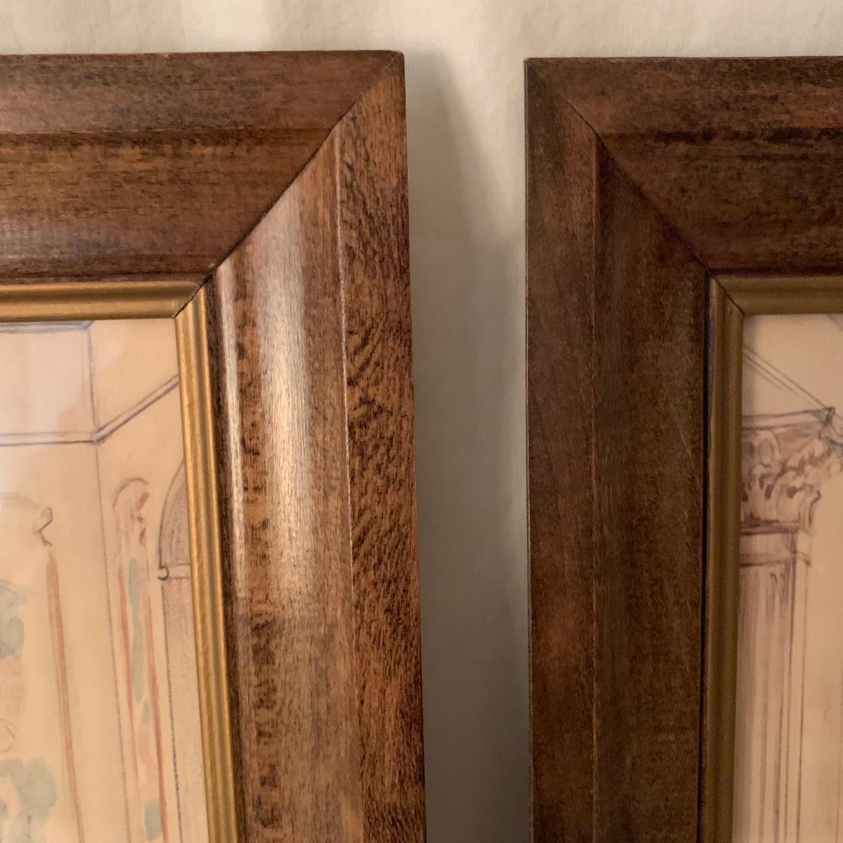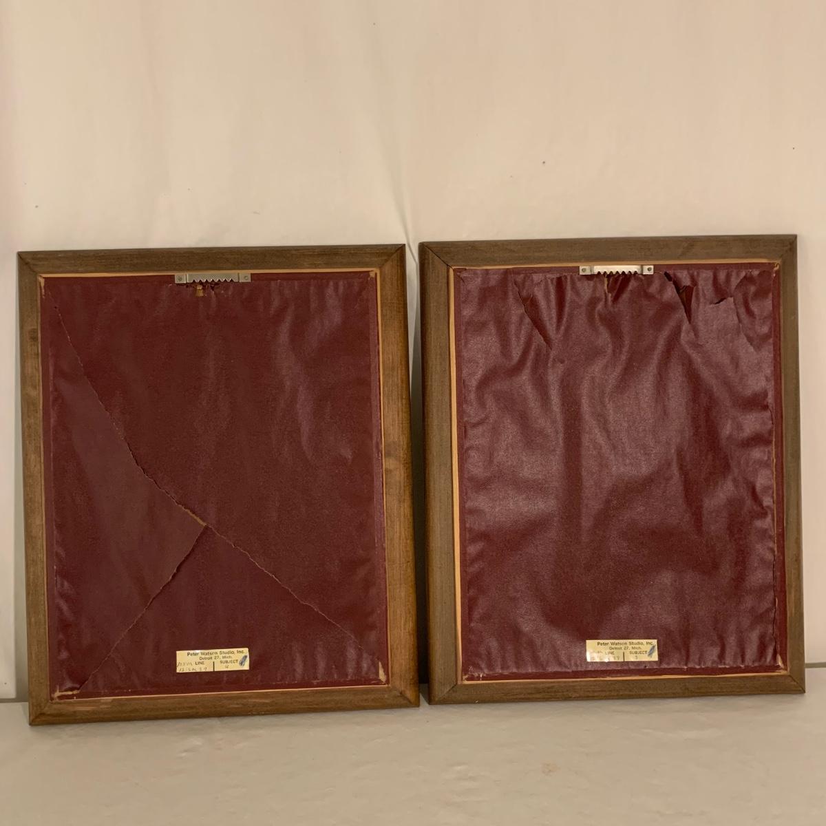 Two framed art prints from Peter Watson Studio featuring ladies in Victorian fashion. The frames are wood with a gold-painted inner border. They each measure 14” x 17”. The prints and frames are in good condition. The paper on the back of the frames is a bit torn. The prints are behind glass. Shipping available.