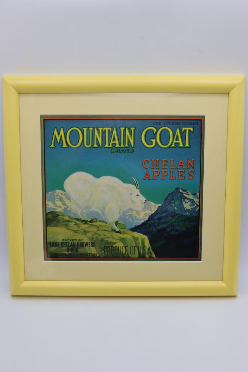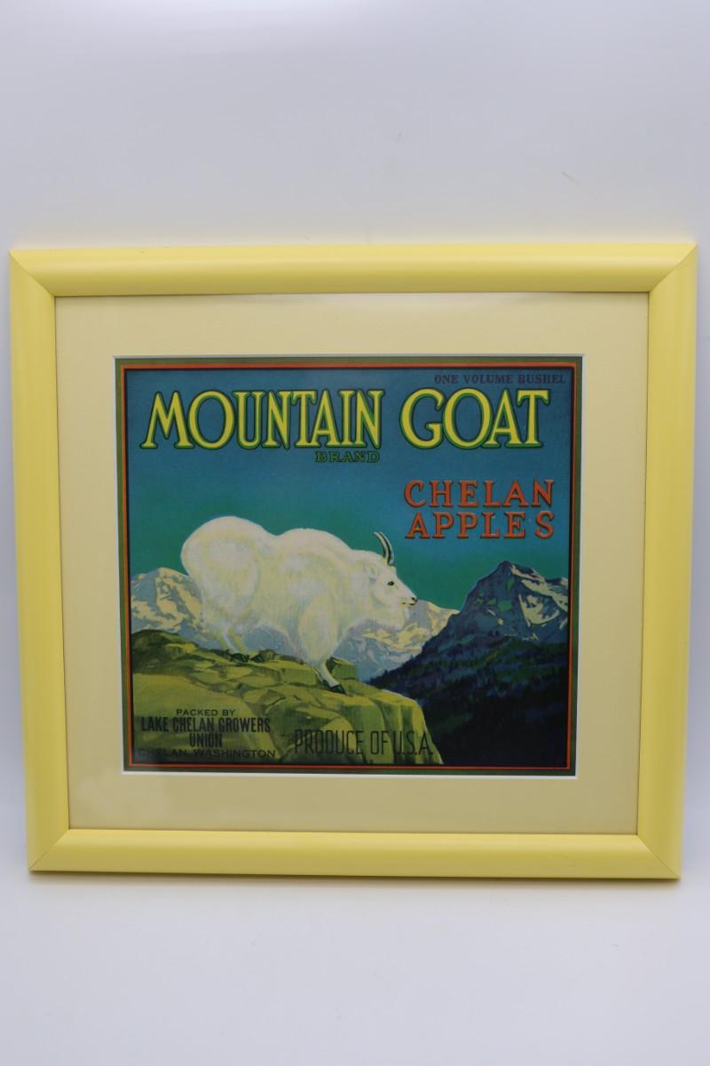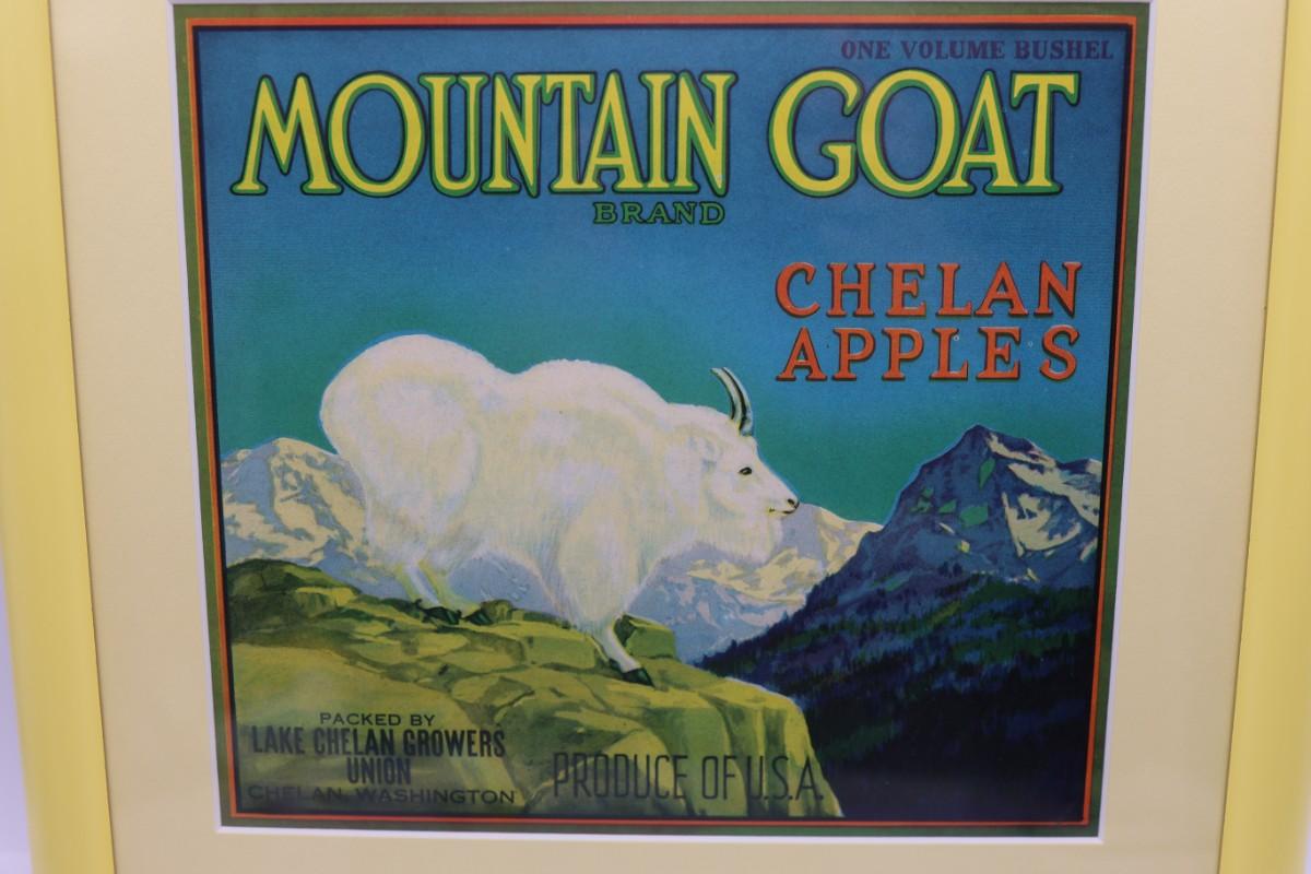 Framed Vintage 1940s Mountain Goat Chelan Apples Fruit Crate Box Label