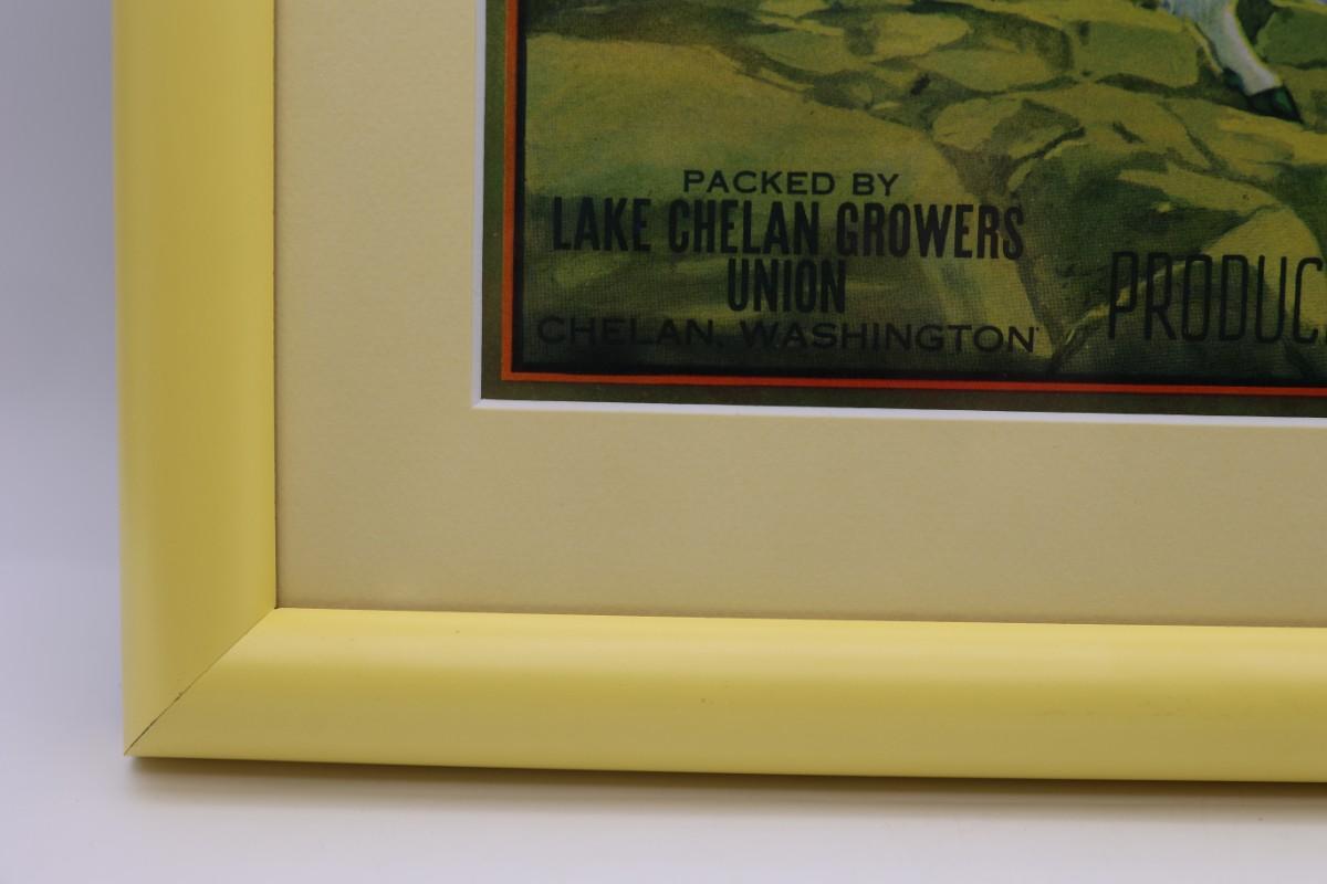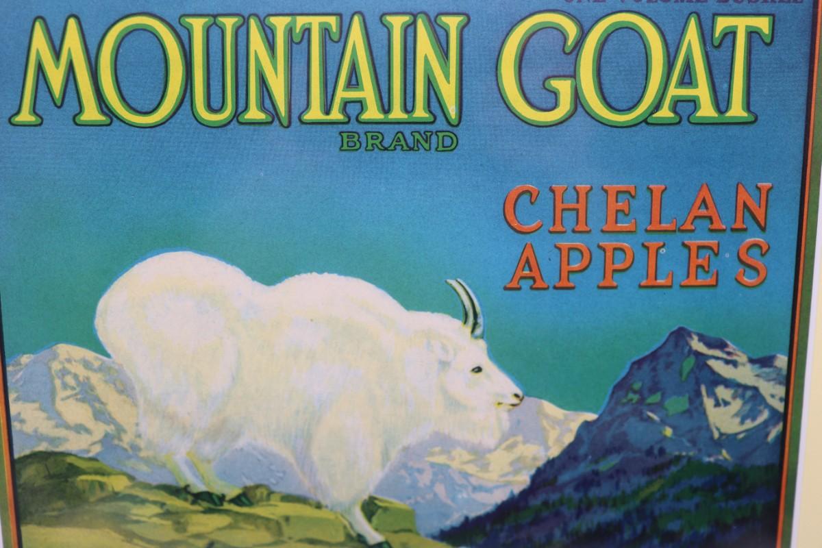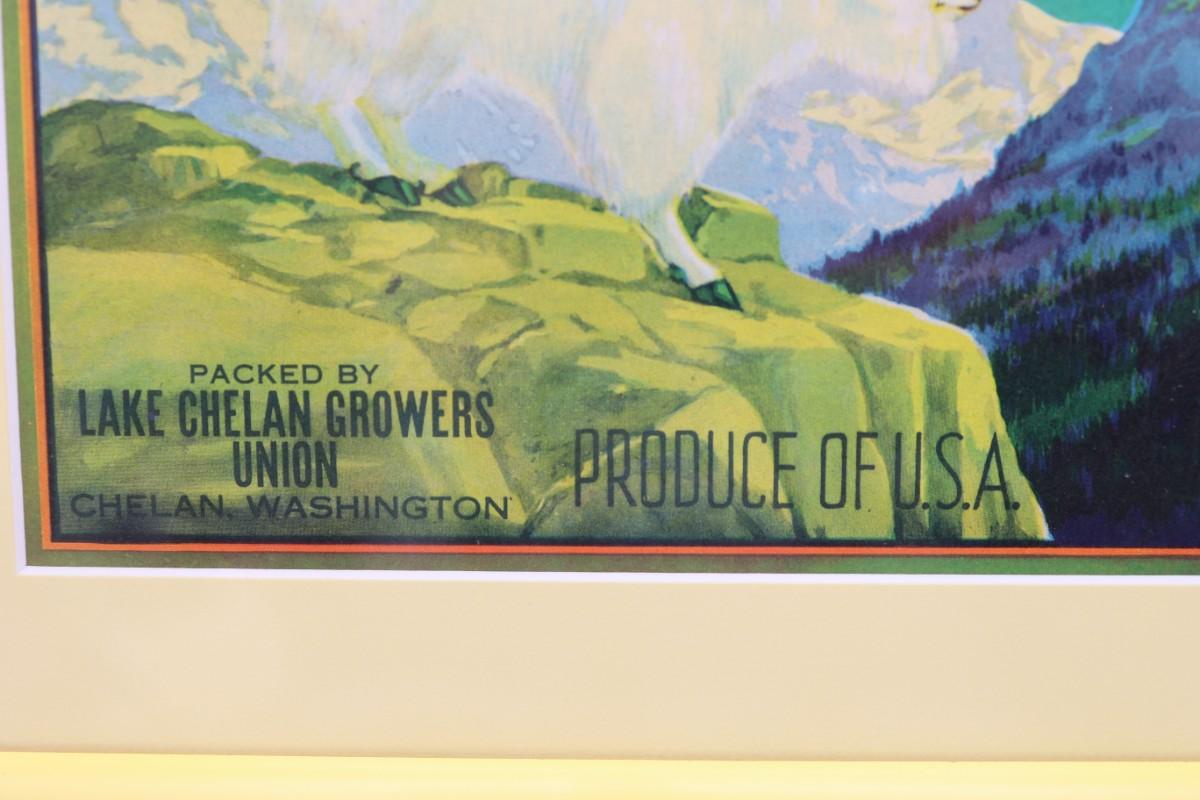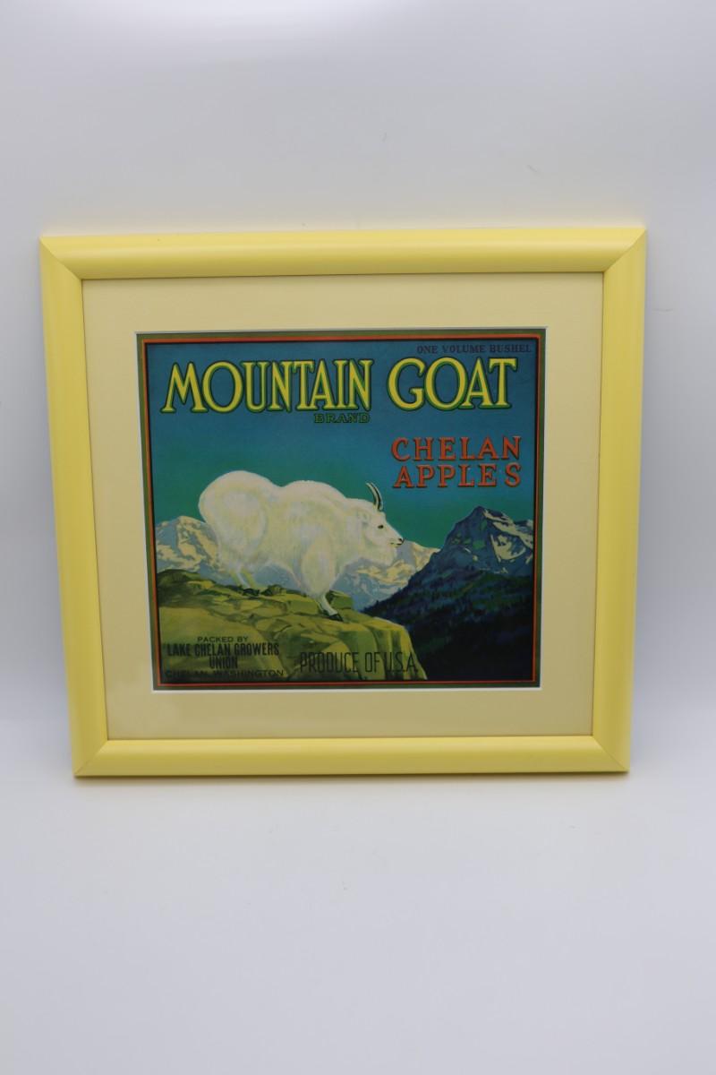 Framed Vintage 1940s Mountain Goat Chelan Apples Fruit Crate Box Label