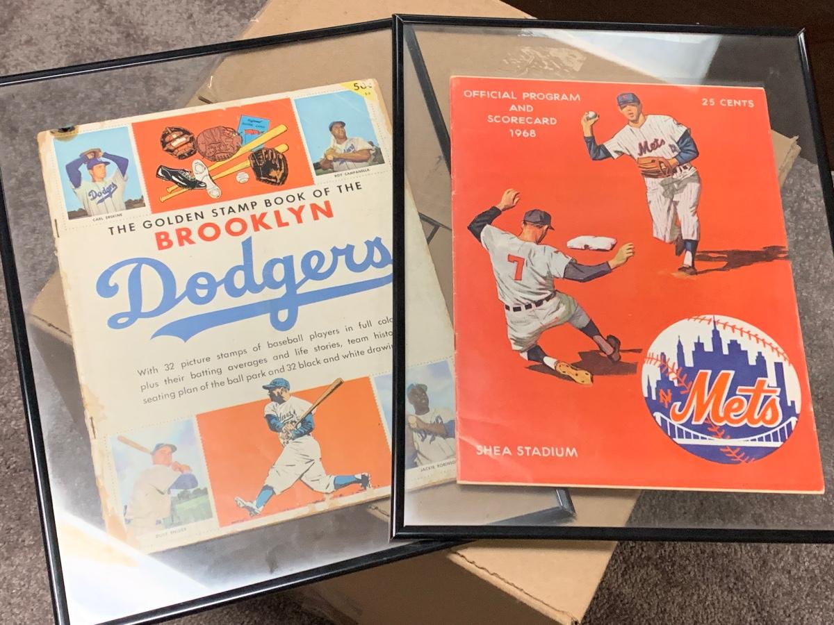 Framed Vintage Brooklyn Dodgers / Mets Programs