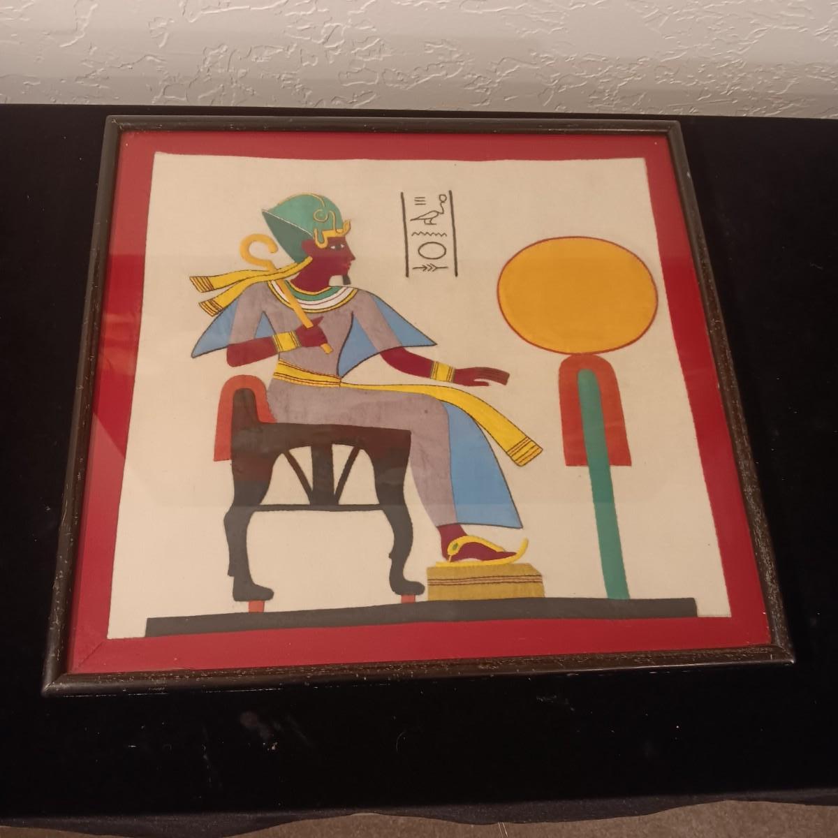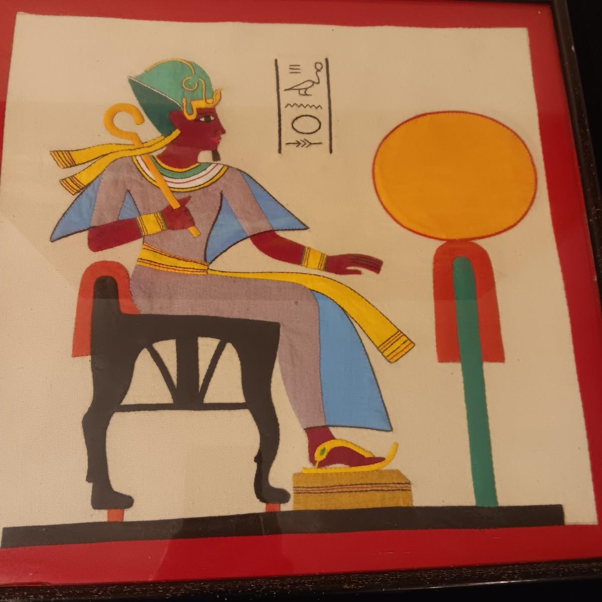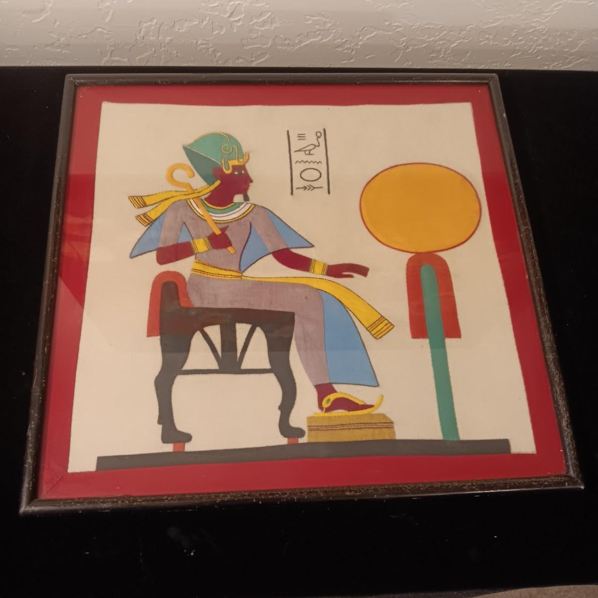 FRAMED VINTAGE EGYPTIAN HAND STITCHED CLOTH TAPESTY