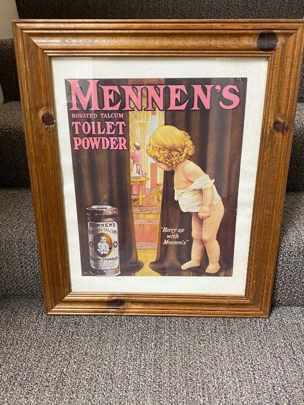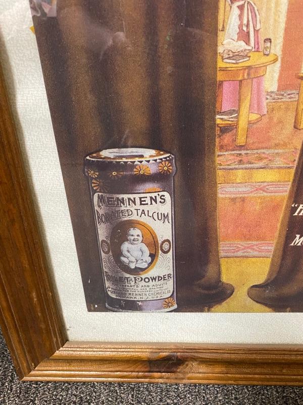 Framed Vintage Mennen's Toilet Powder Advertisement Picture