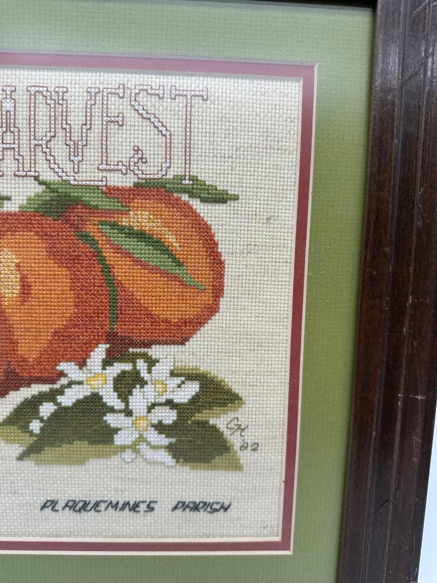 Framed Vintage Needlepoint “Golden Harvest” Citrus Art – Fowler Bros Citrus, Louisiana