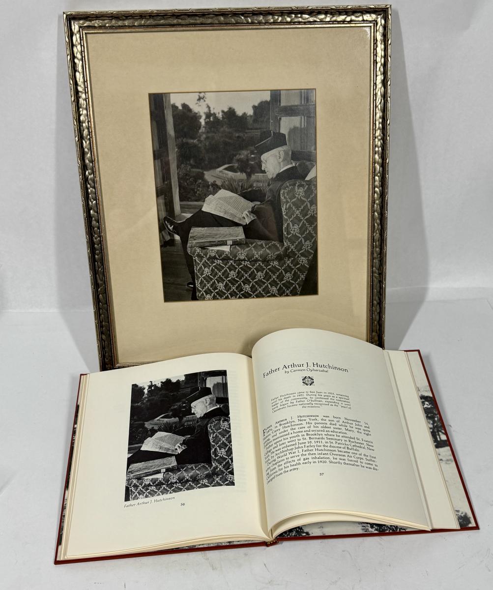 Framed Vintage Photograph 14" x 16" of Father Arthur J. Hutchinson and Vintage Book on San Juan Capistrano Memories