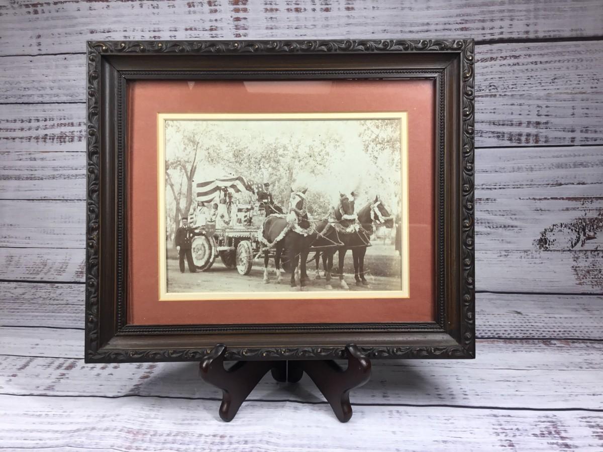 Framed Vintage Antique early 1900's Photograph Horse Drawn Parade Fire Department Carriage Cart