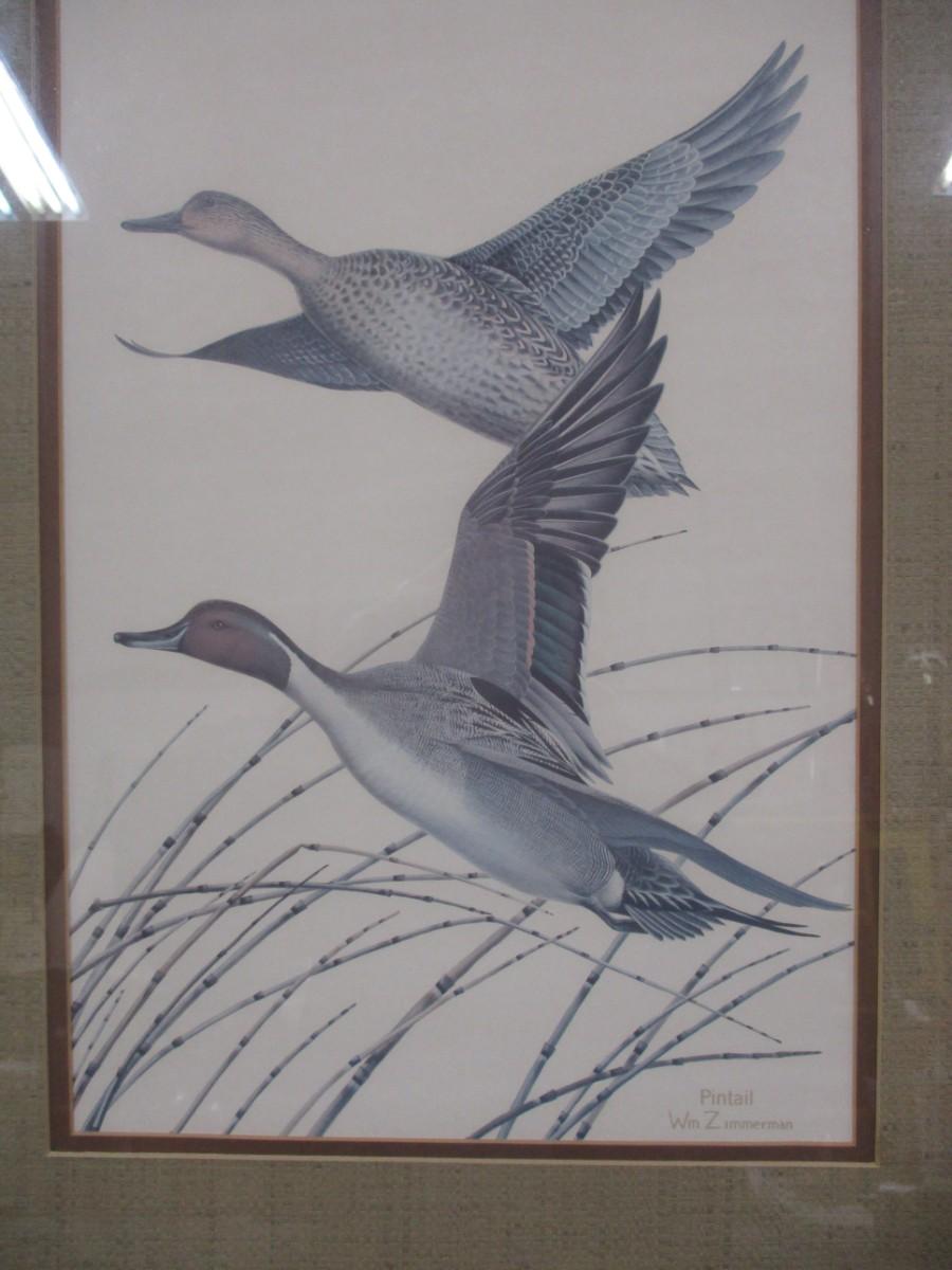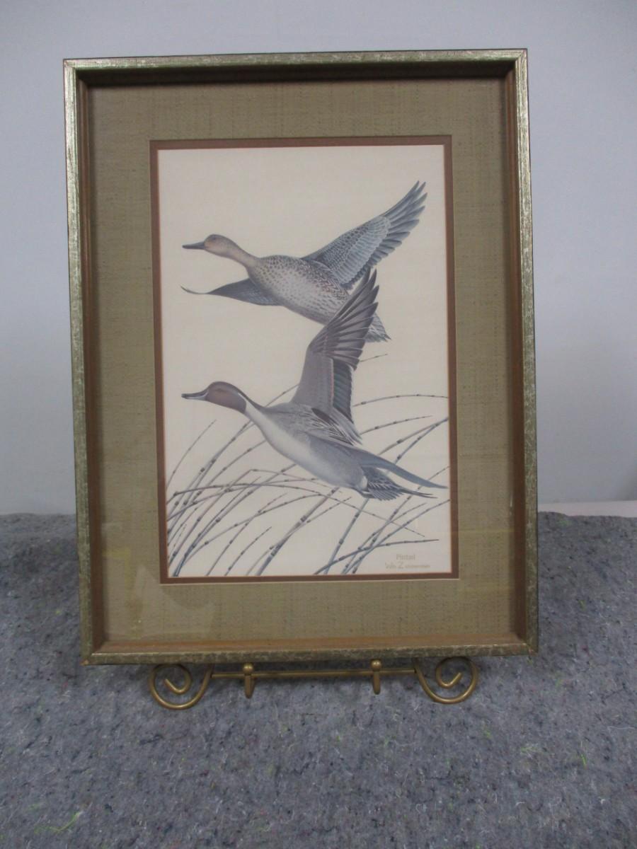 Framed Vintage Pintail Print by William Zimmerman Approx  21" x 16"