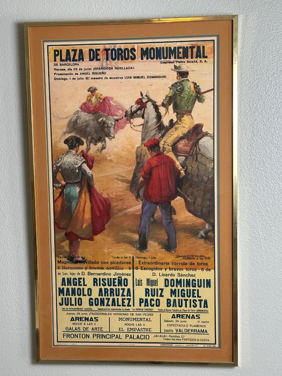 Framed Vintage Plaza De Toros Monumental Poster Matador Spain Advertisement