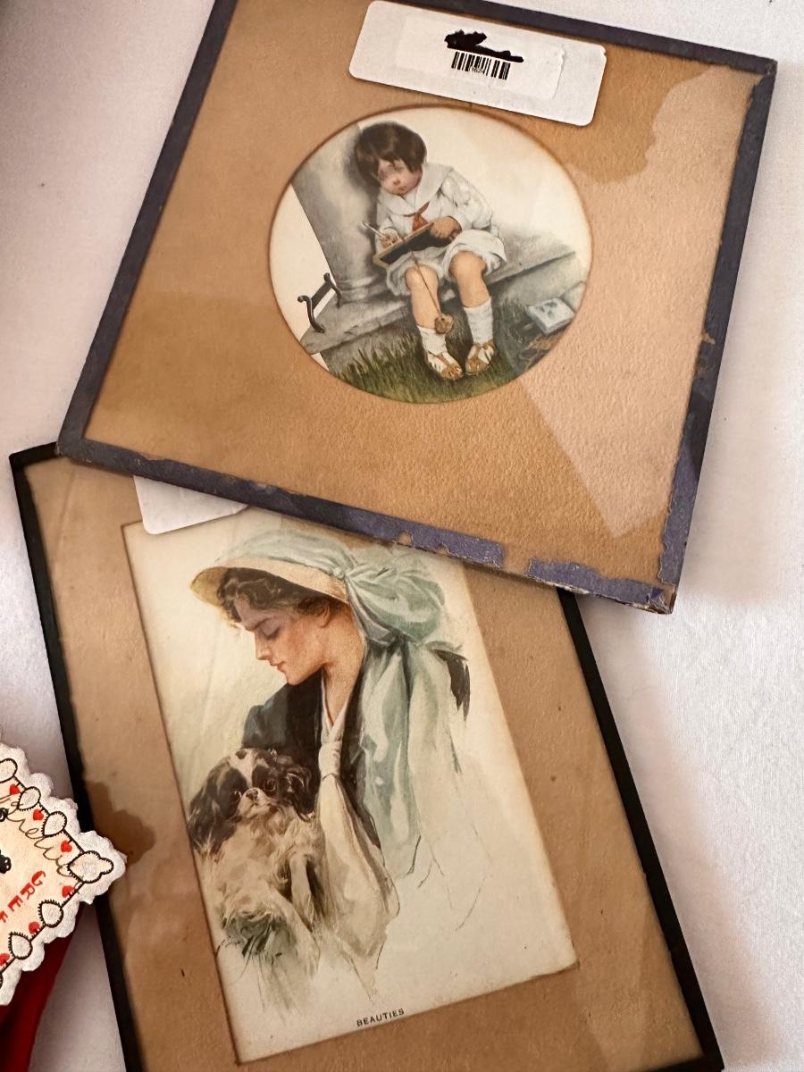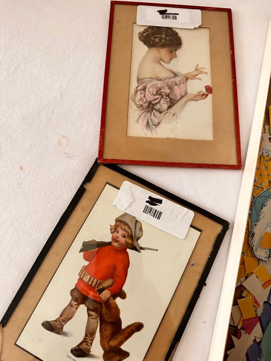 Framed Vintage Post Card, Paper Doll, and Greeting Card Lot