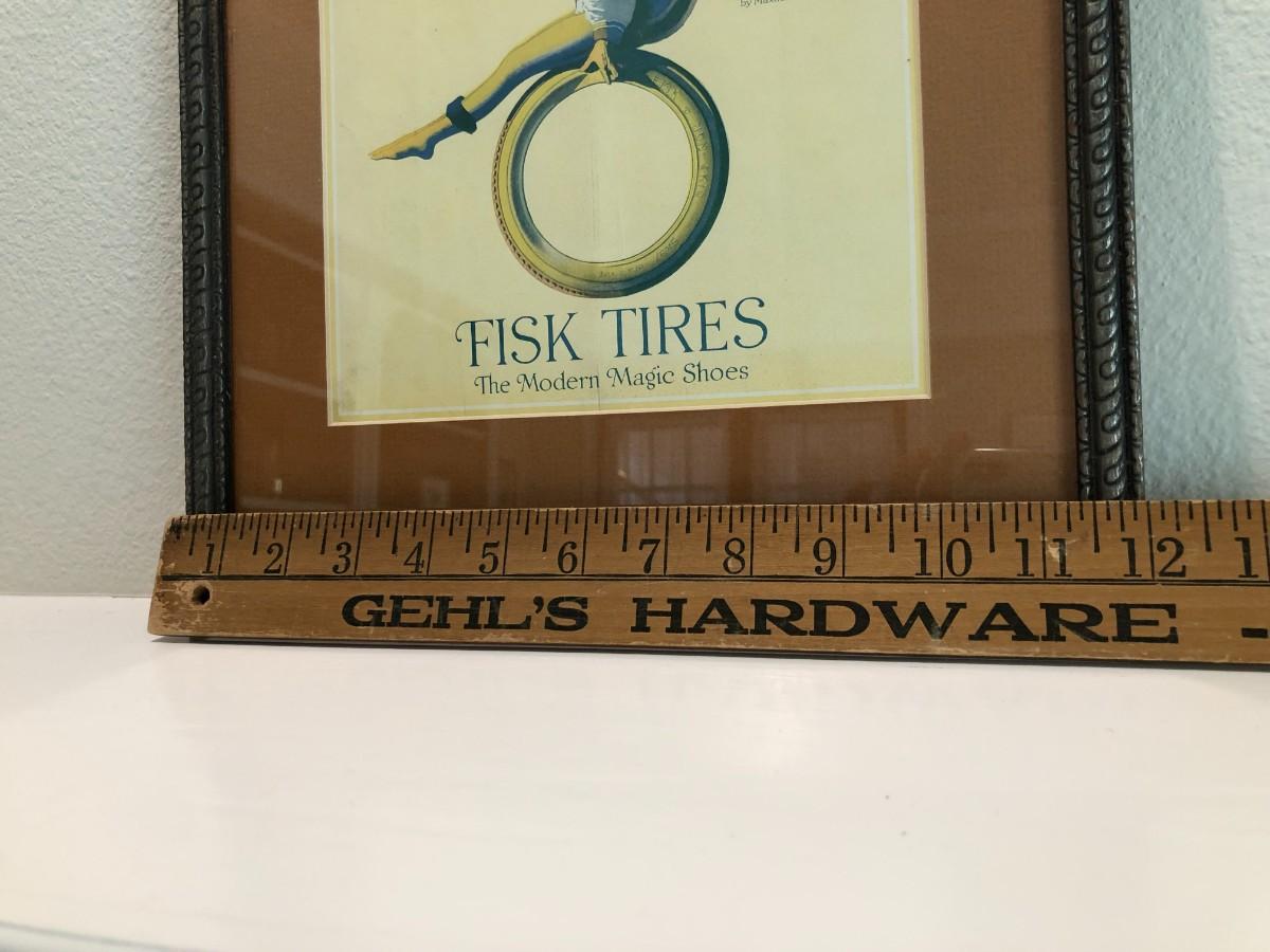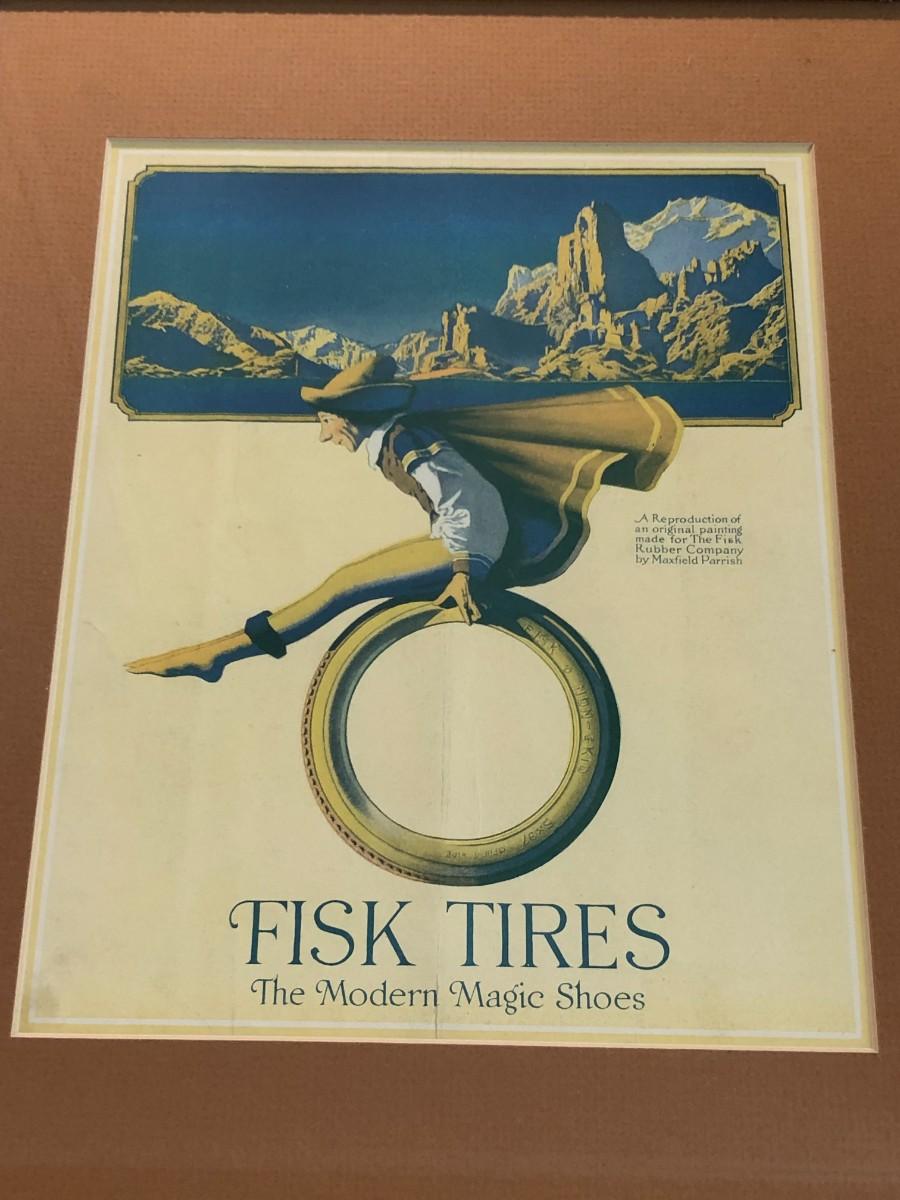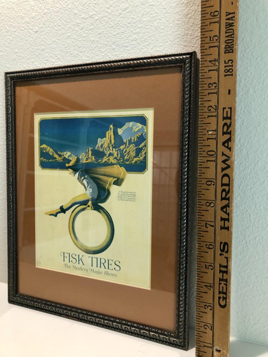 Framed Vintage Print by Maxfield Parrish for Fisk Tires and Rubber Company. In very good condition.