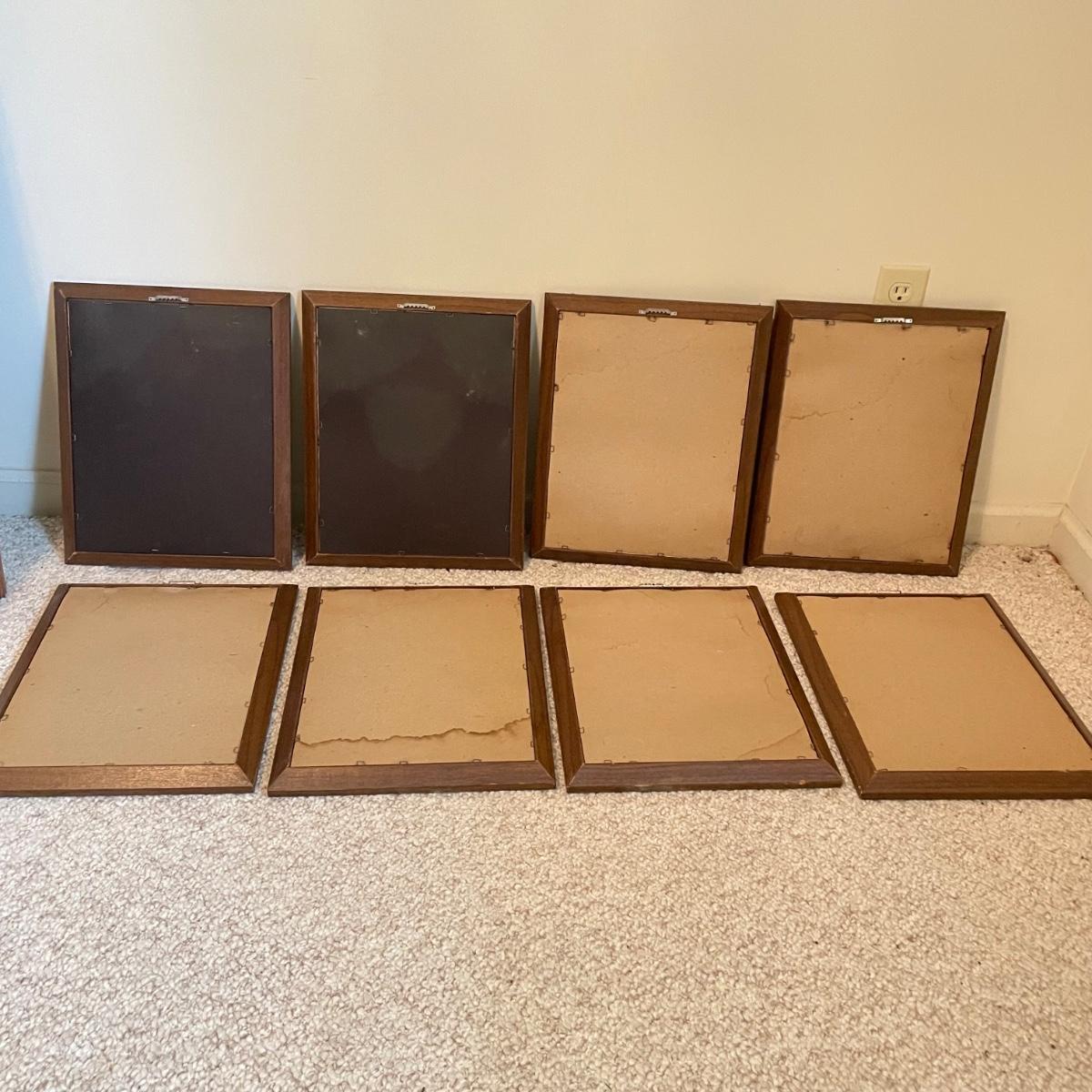 Eight vintage documents behind glass in wood frames. Frames and documents show blemishes, but it adds to the charm of the set. Documents are not matted, each frame measures 13” x 16”H. Shipping available.