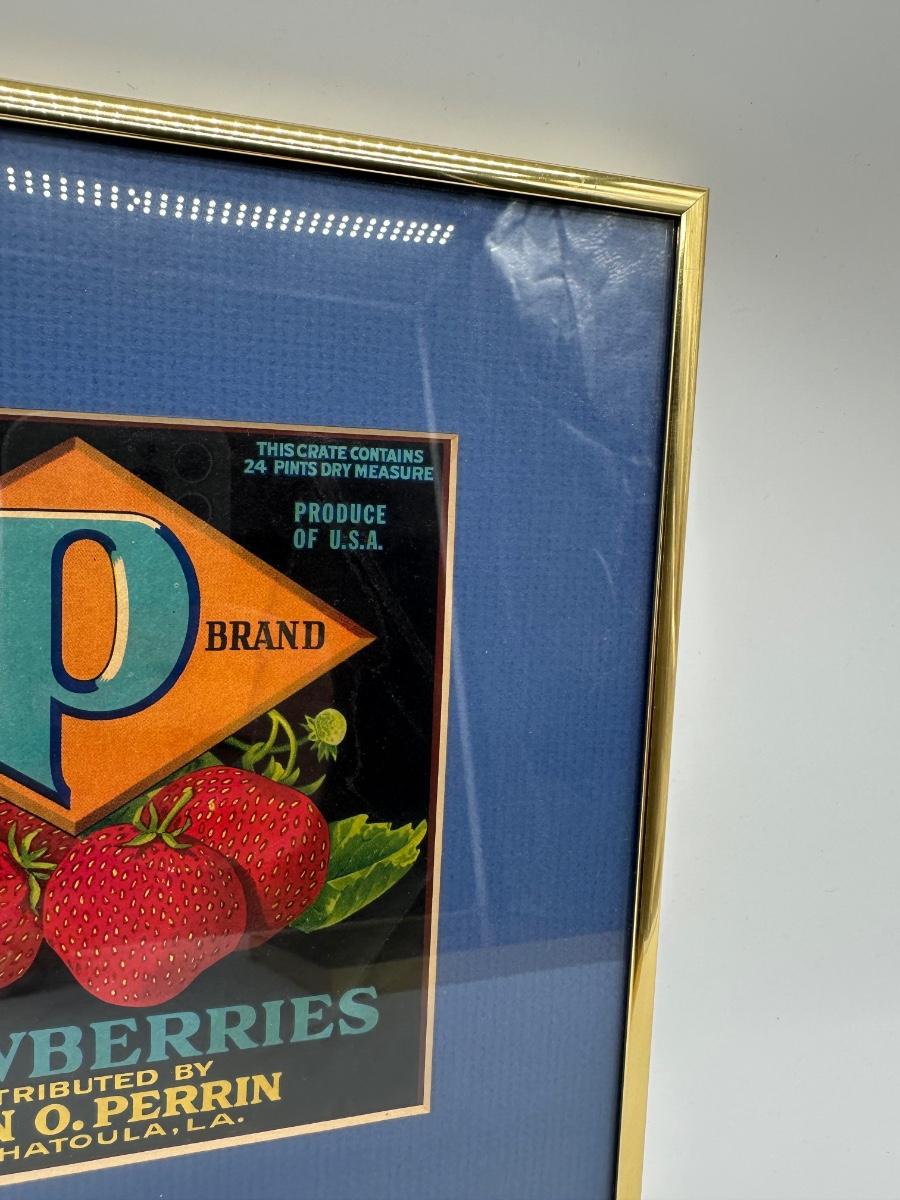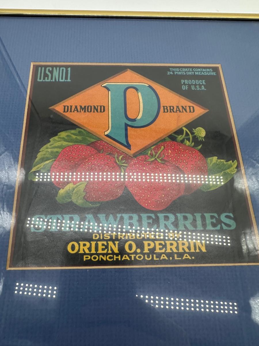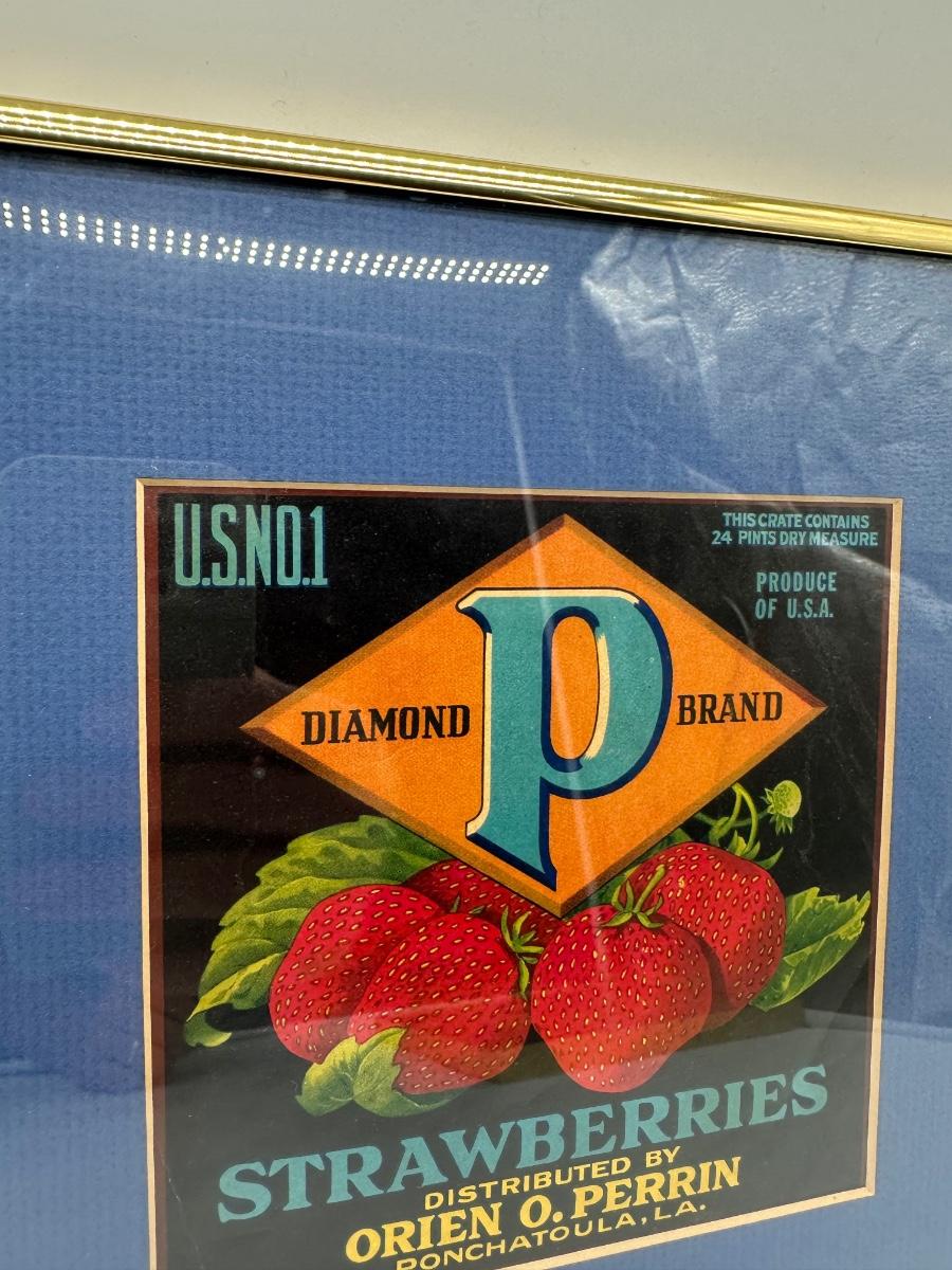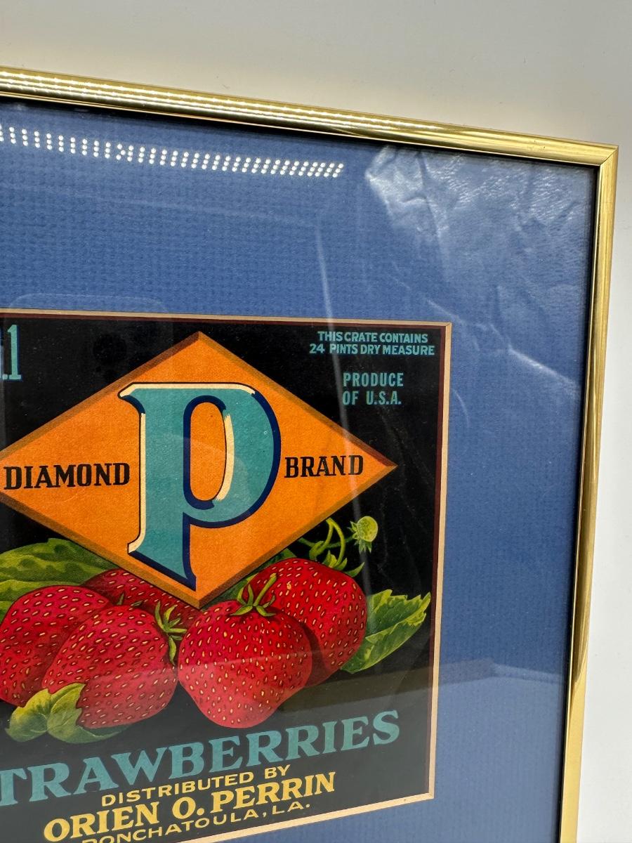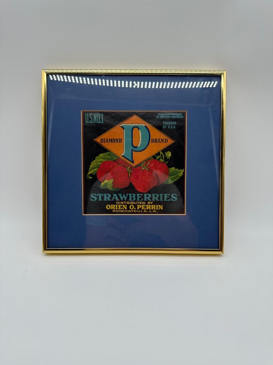 Framed Vintage Strawberry Crate Label – Diamond “P” Brand – Ponchatoula, LA