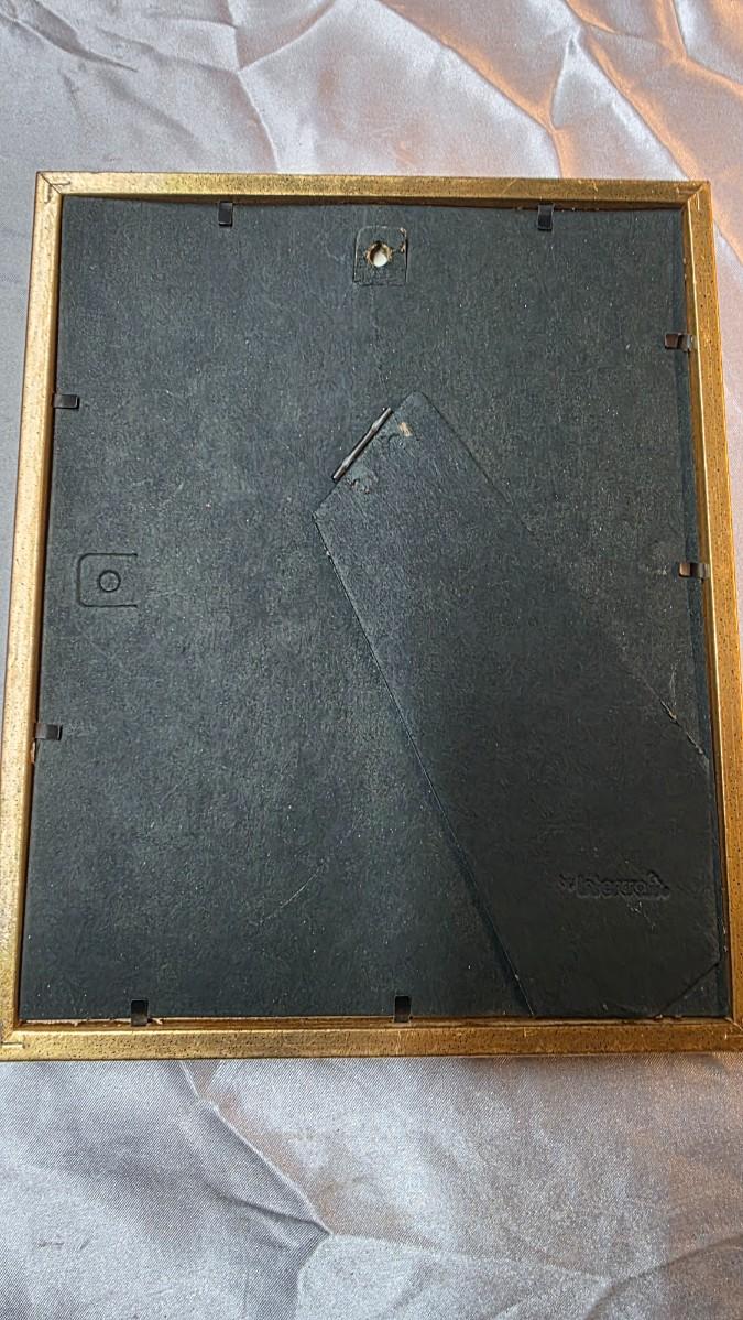 This appears to be a custom-assembled framed collectible display rather than a mass-produced retail piece. The frame shows minor vintage wear at edges consistent with age. The image and stamp remain clean and visually striking. No visible glass cracks or structural frame damage.