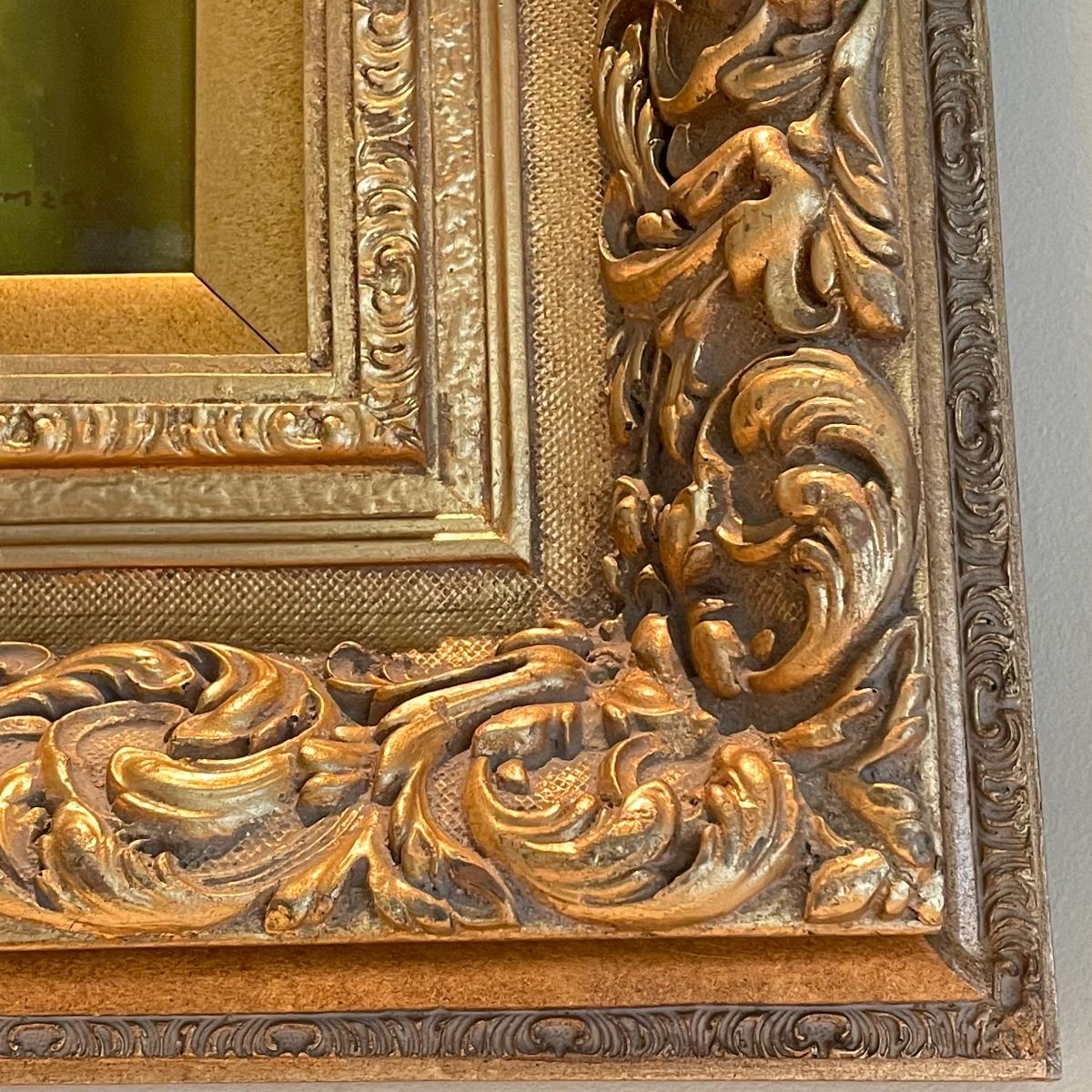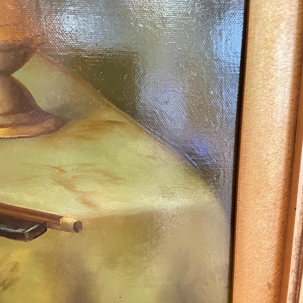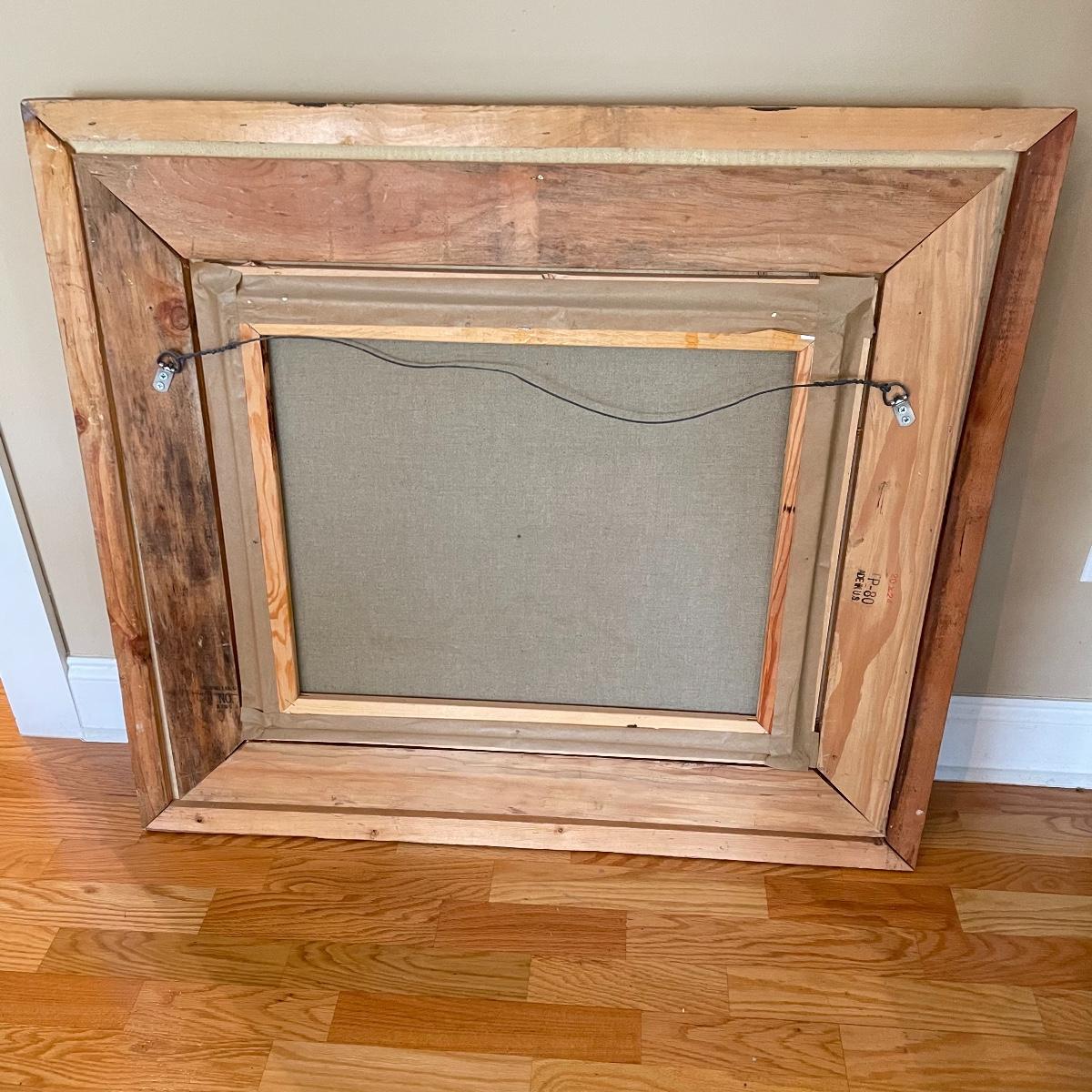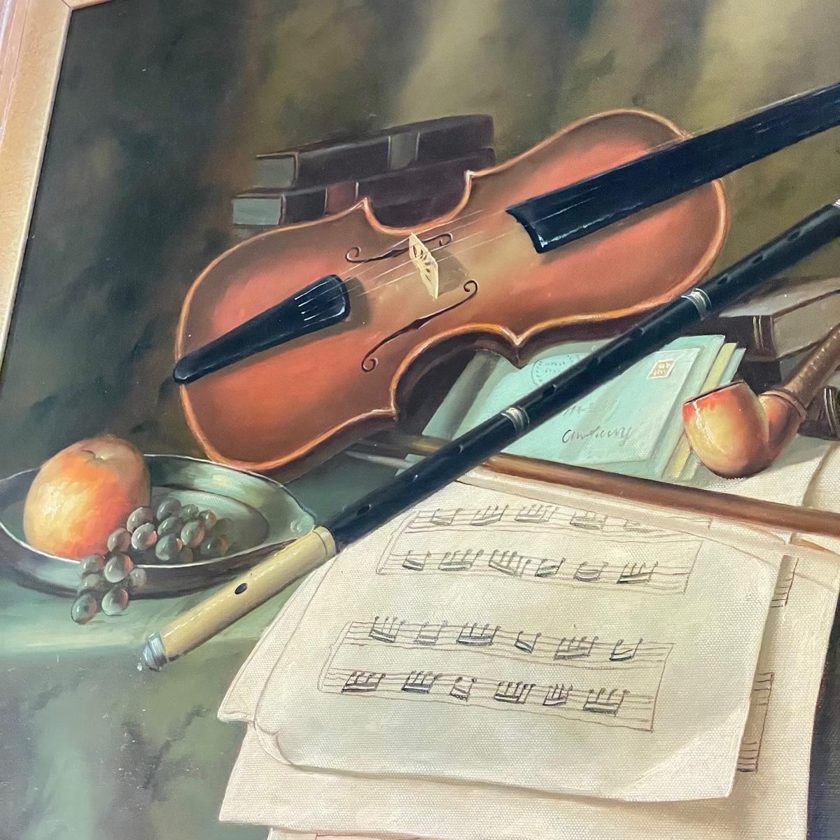A musical still life art on canvas in a large and heavy wooden frame. Appears to have an original signature by Montgomery, but we cannot verify this. The painted wooden frame is 37.25” x 34” and it’s 3.75” thick. Shipping available. Please call UPS with dimensions at 828-252-6930 for a shipping quote prior to bidding.