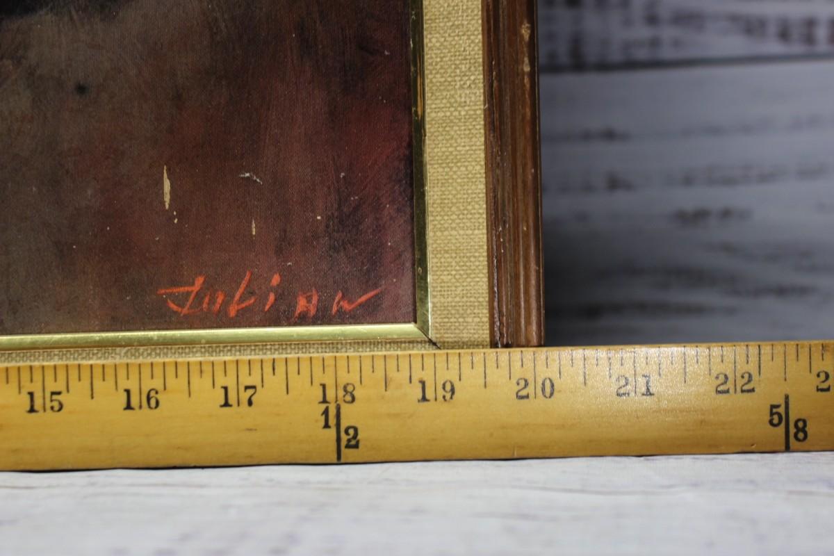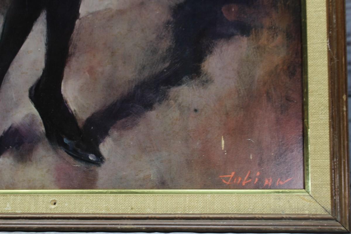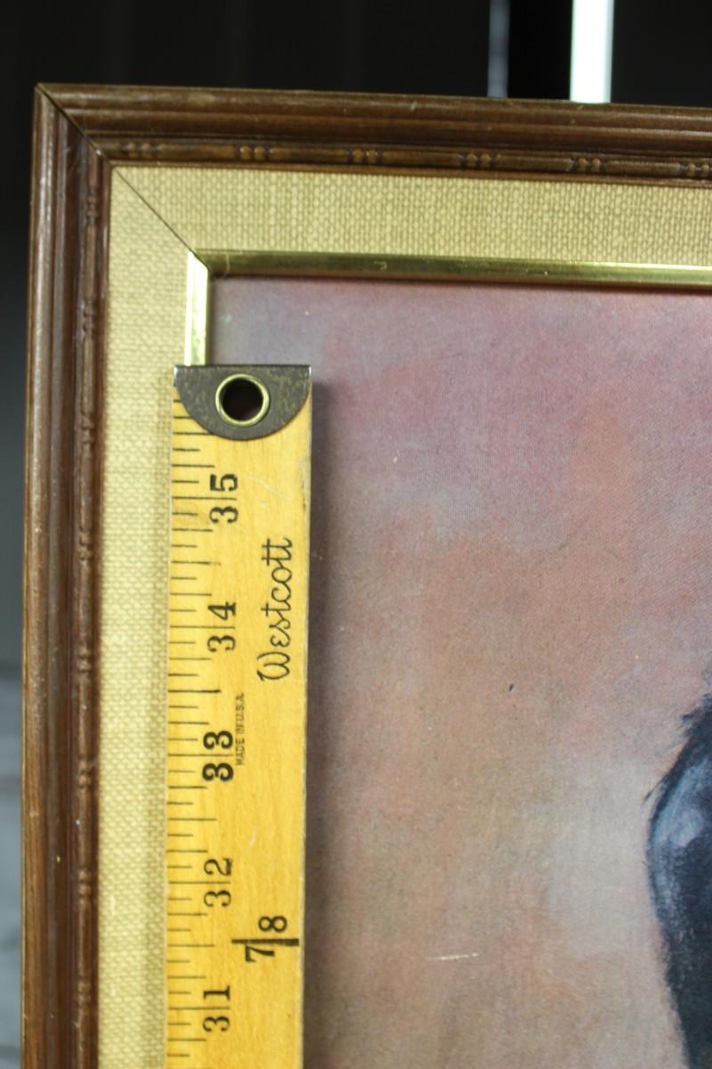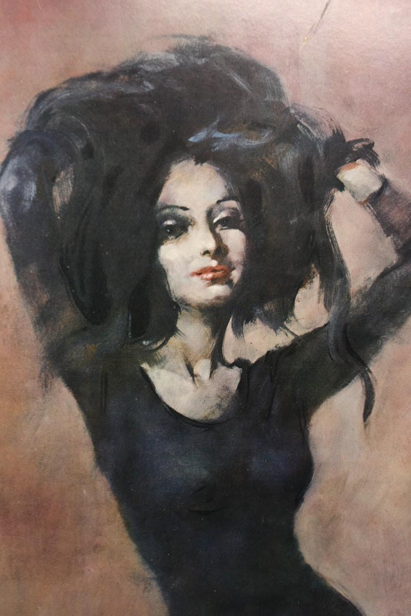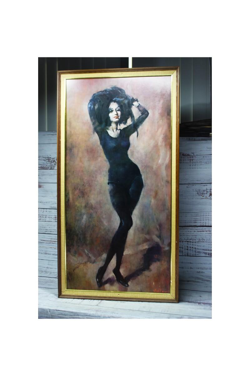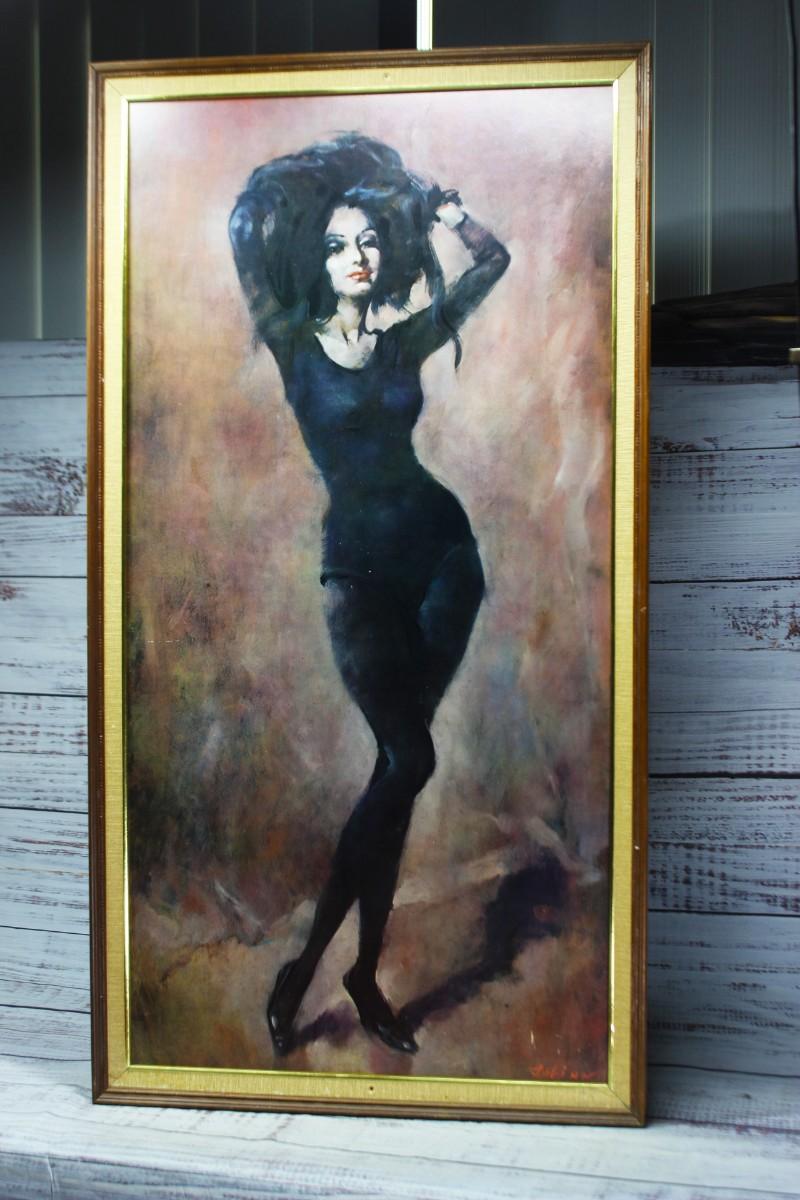 Framed Wall Art Reproduction Print of Model in Black by Artist Julian, there is no significant damage to the frame or the surface of the print and is in good condition. Check pictures for more details and for sizing.