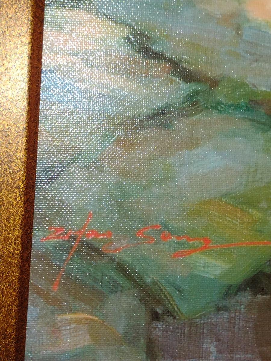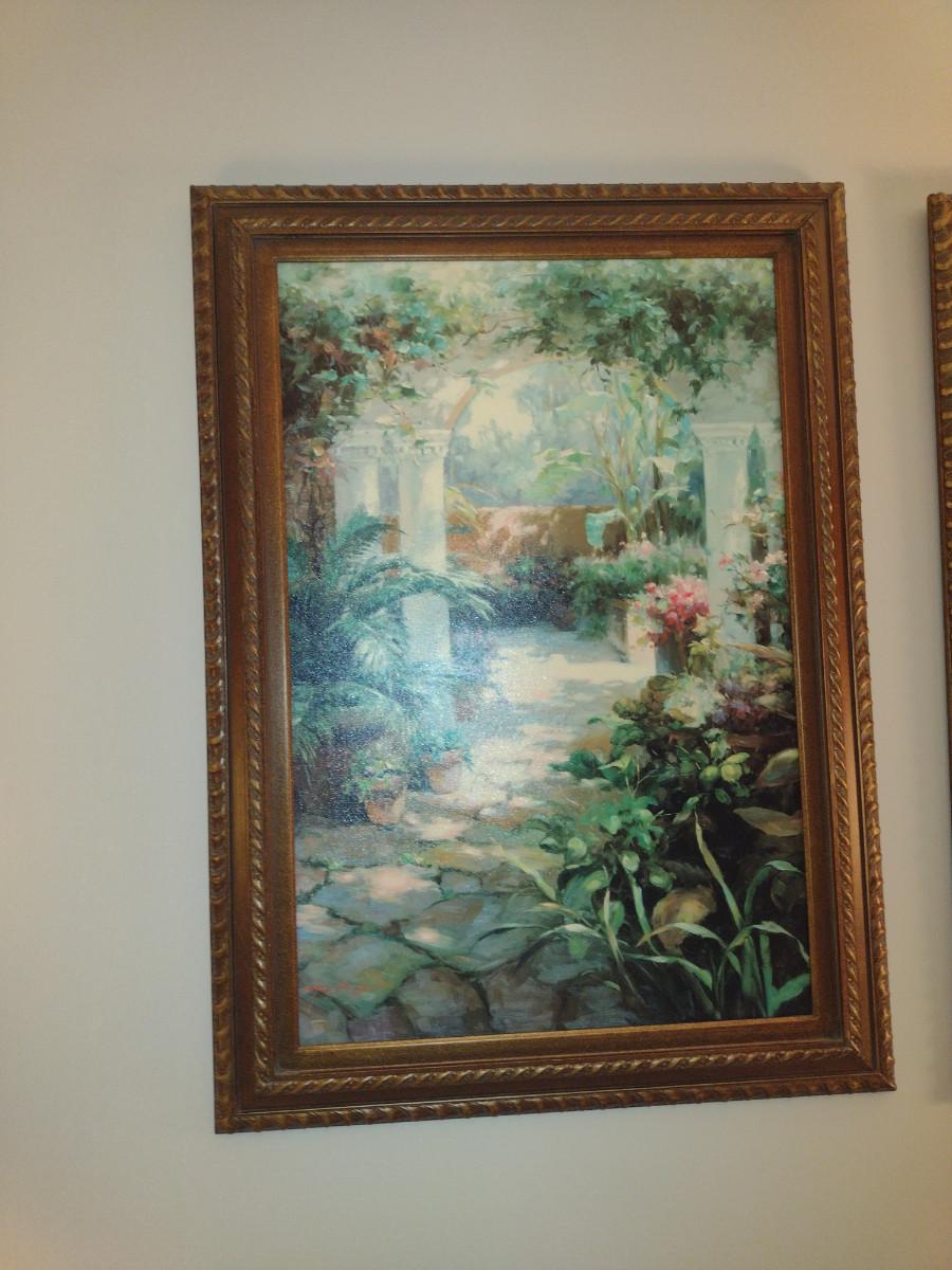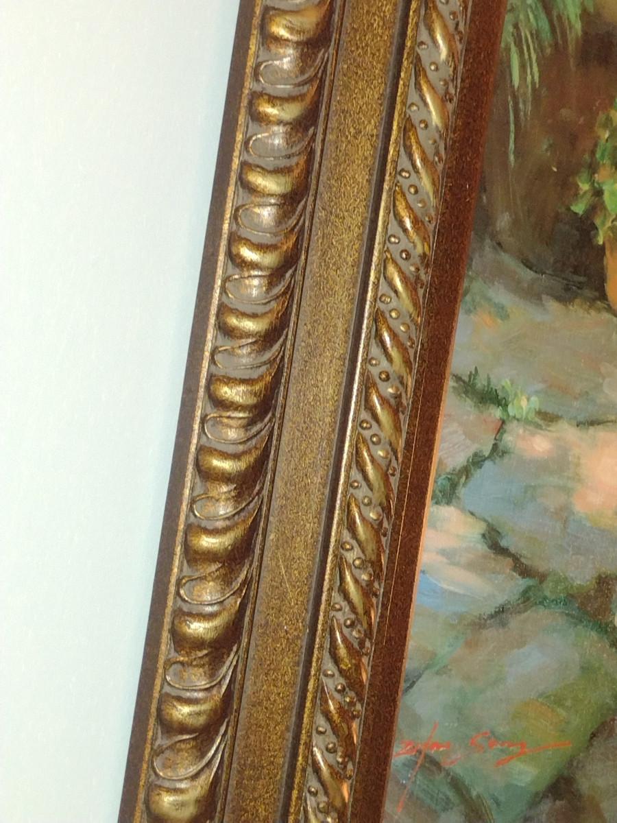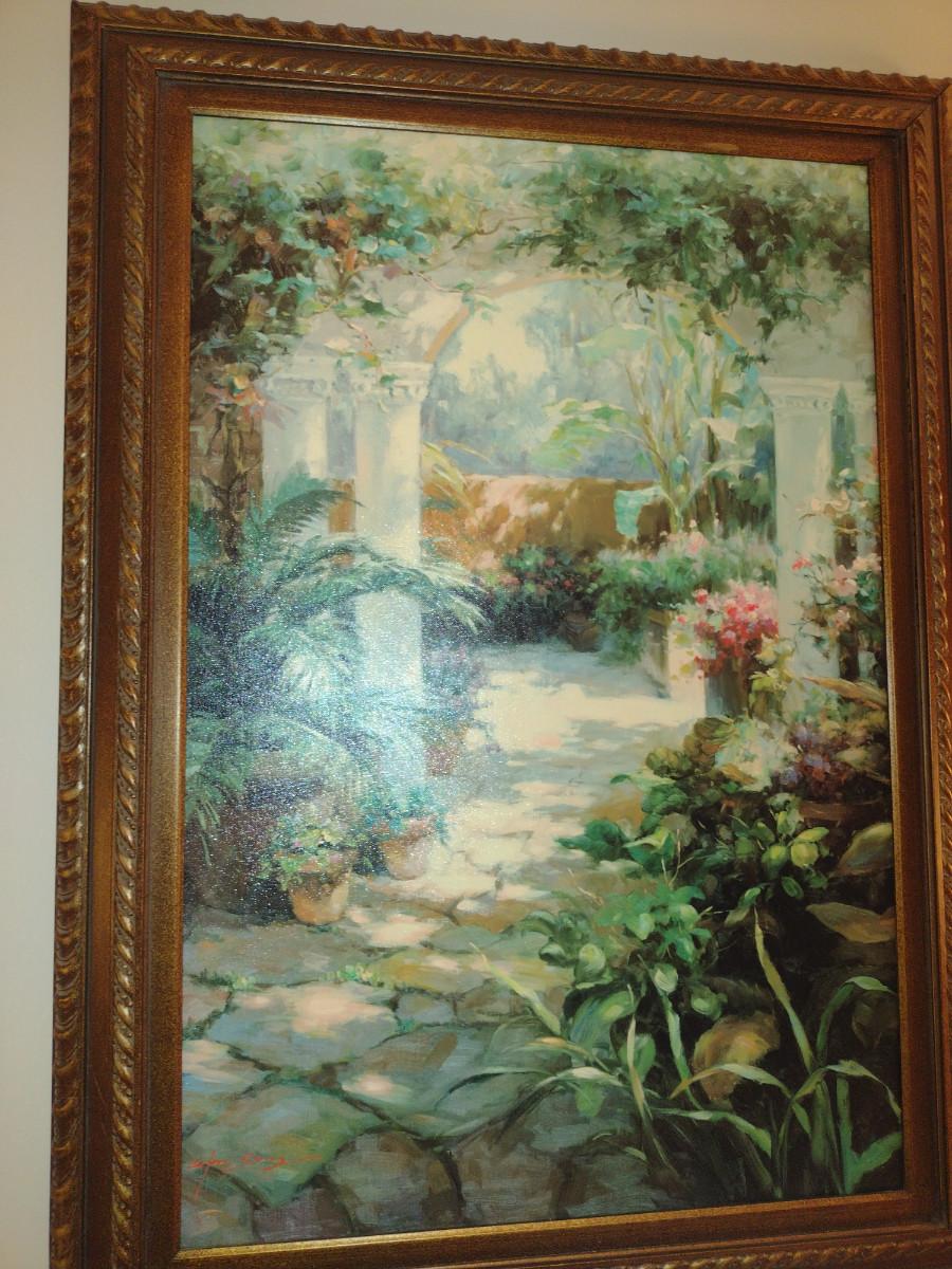 Floral Patio with Columns Framed Wall Art- Signed by Artist- Approx 31 3/4" x 43"