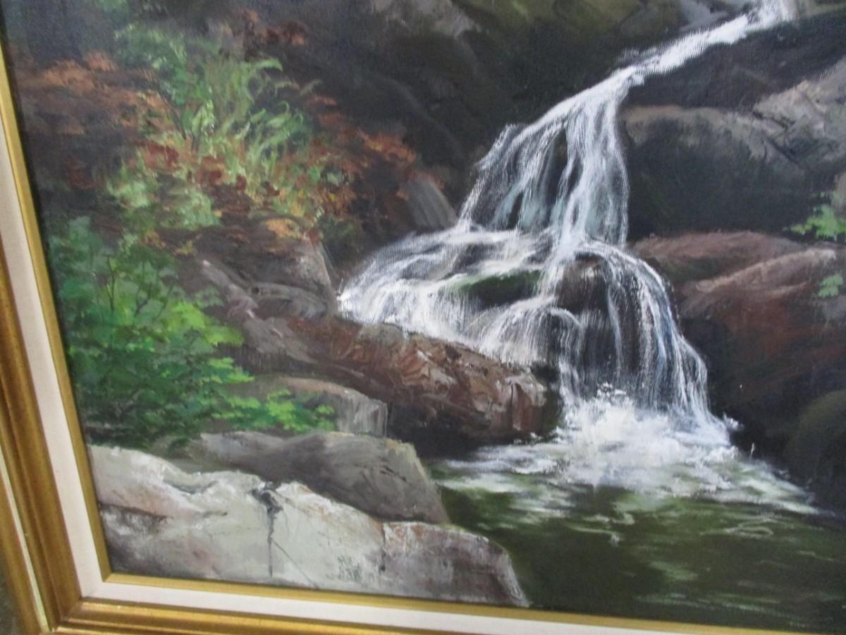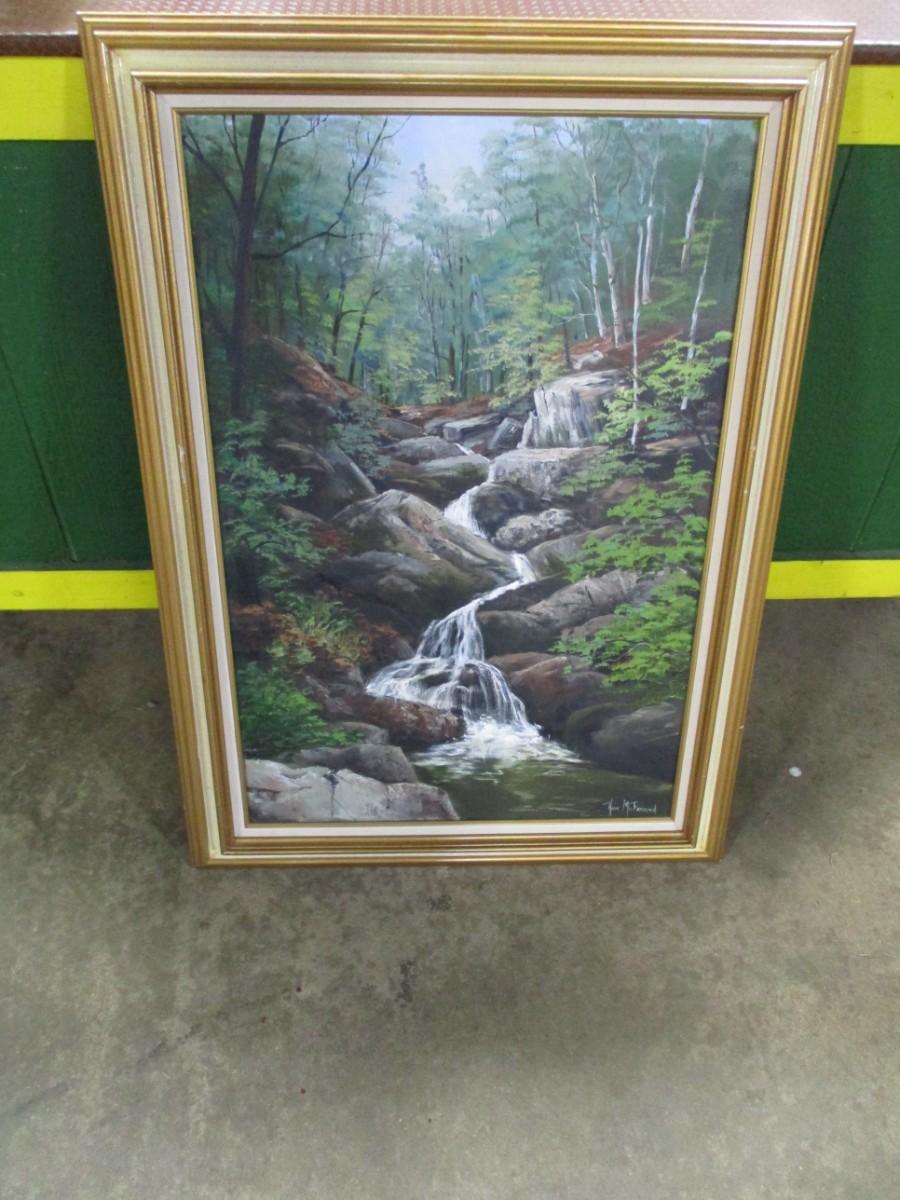 Framed Water Fall Art Painting 27 3/4" x 39 1/4" - Signed by Artist