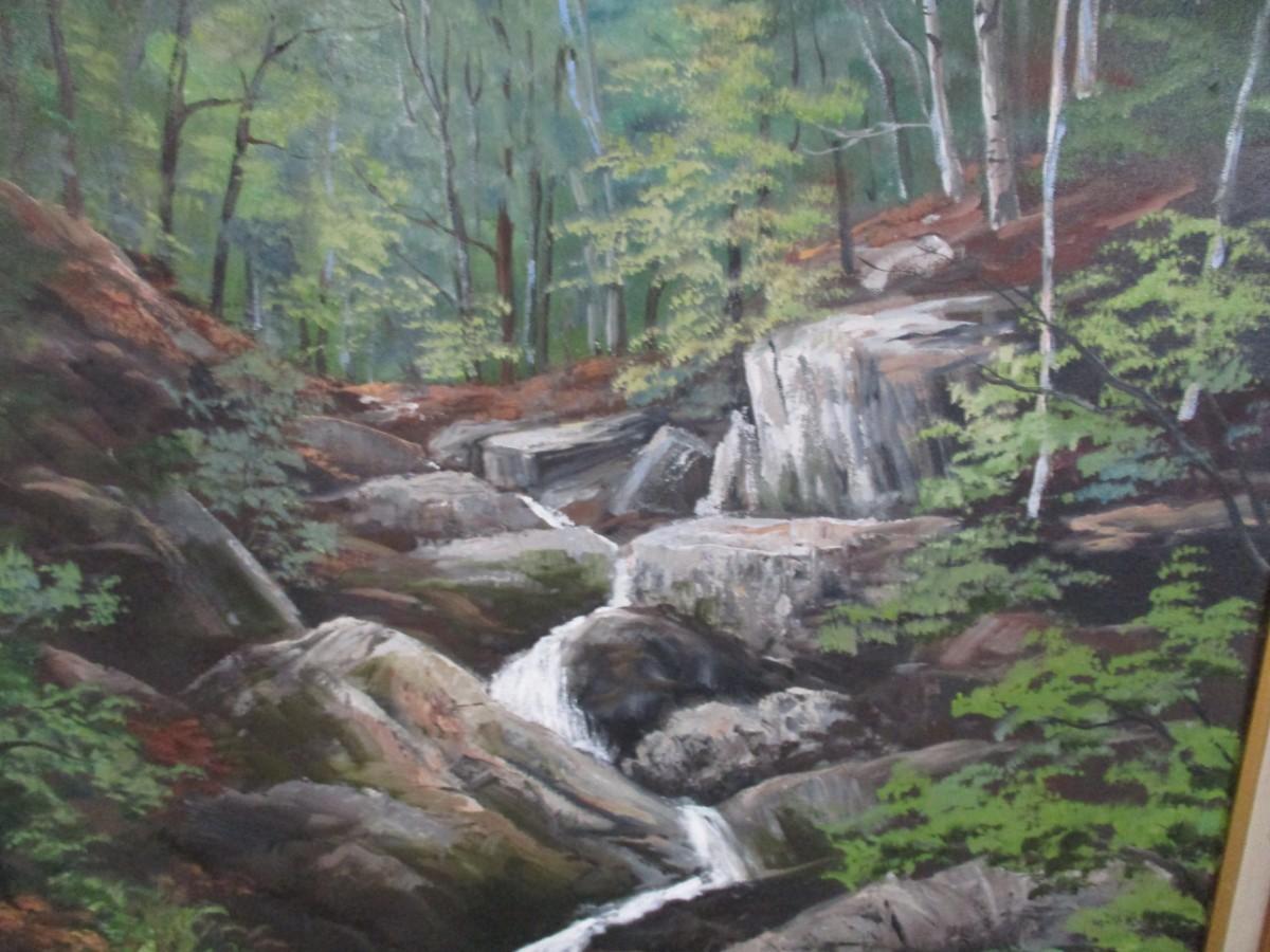 Framed Water Fall Art Painting 27 3/4" x  39 1/4" - Signed by Artist