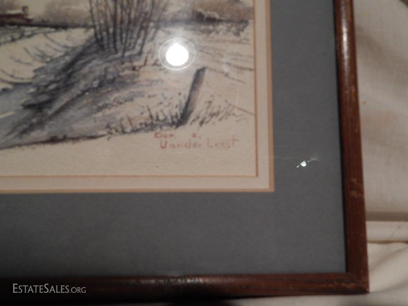 Framed Watercolor by Winter Farm by Vanderleest Lot # 36