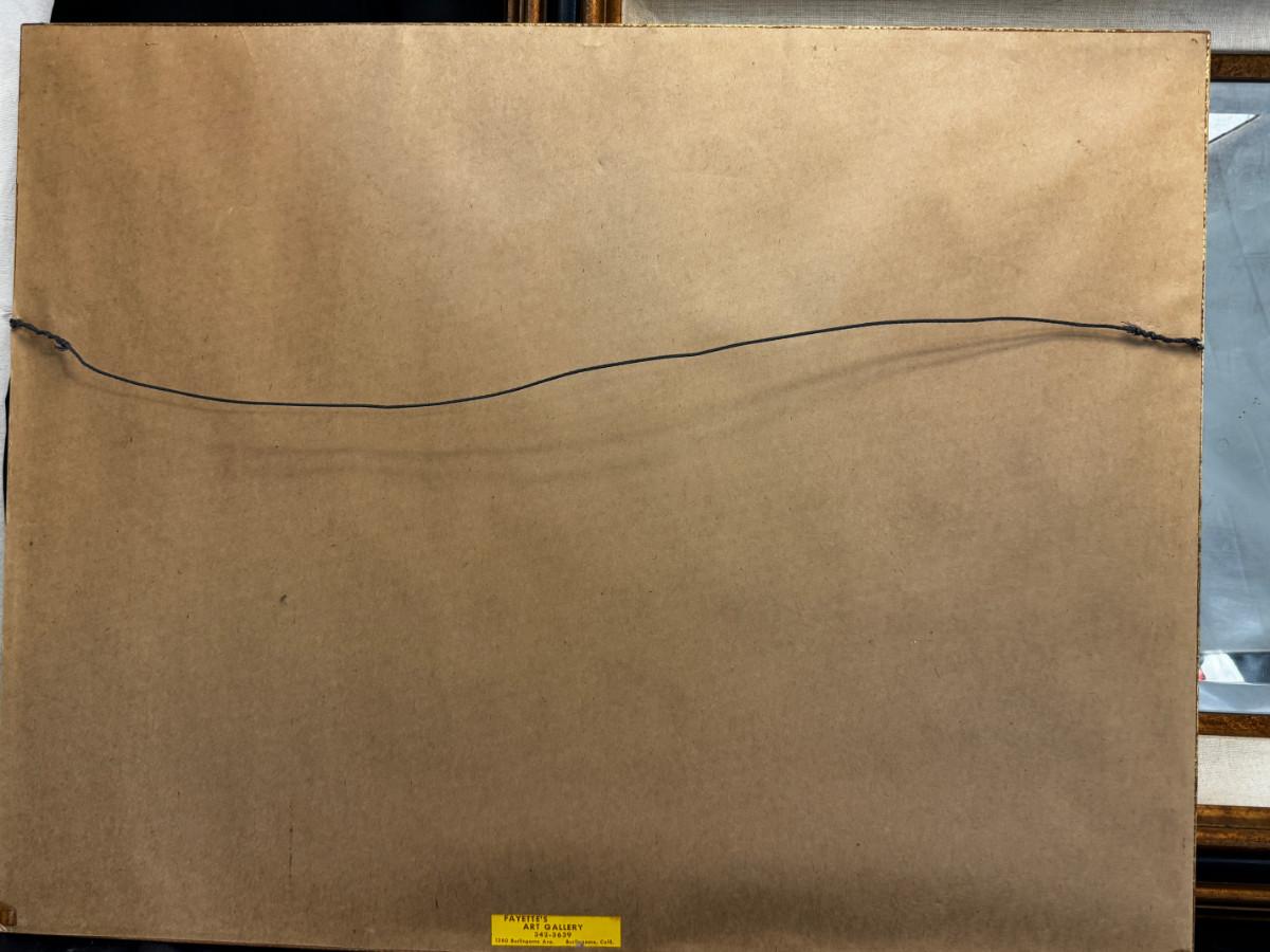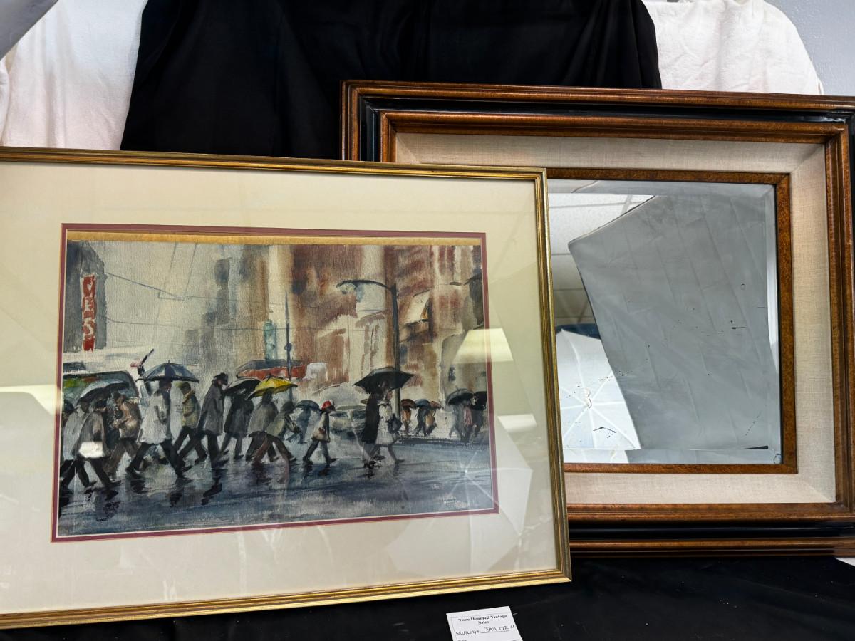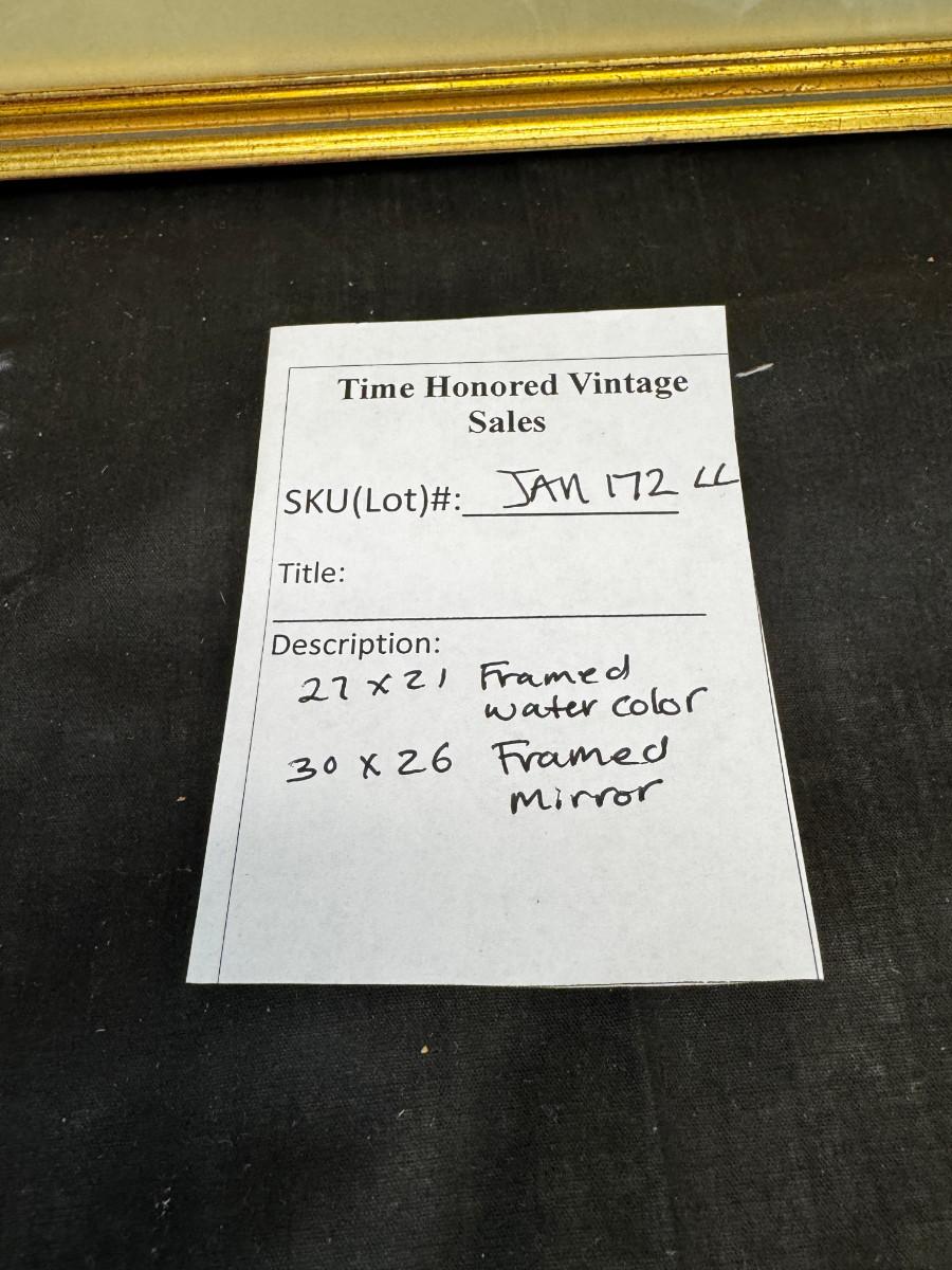 Unknown if water color is print or original no signature viable, Mirror has marks and wear