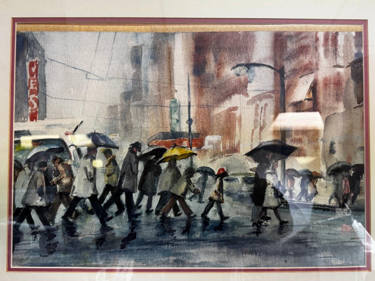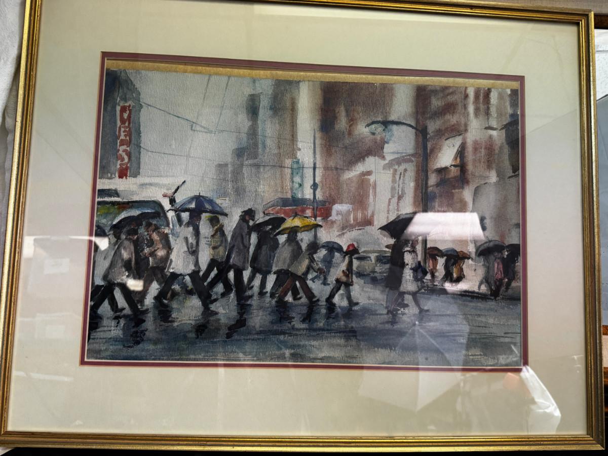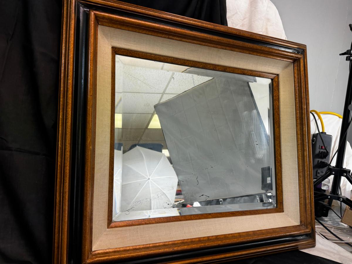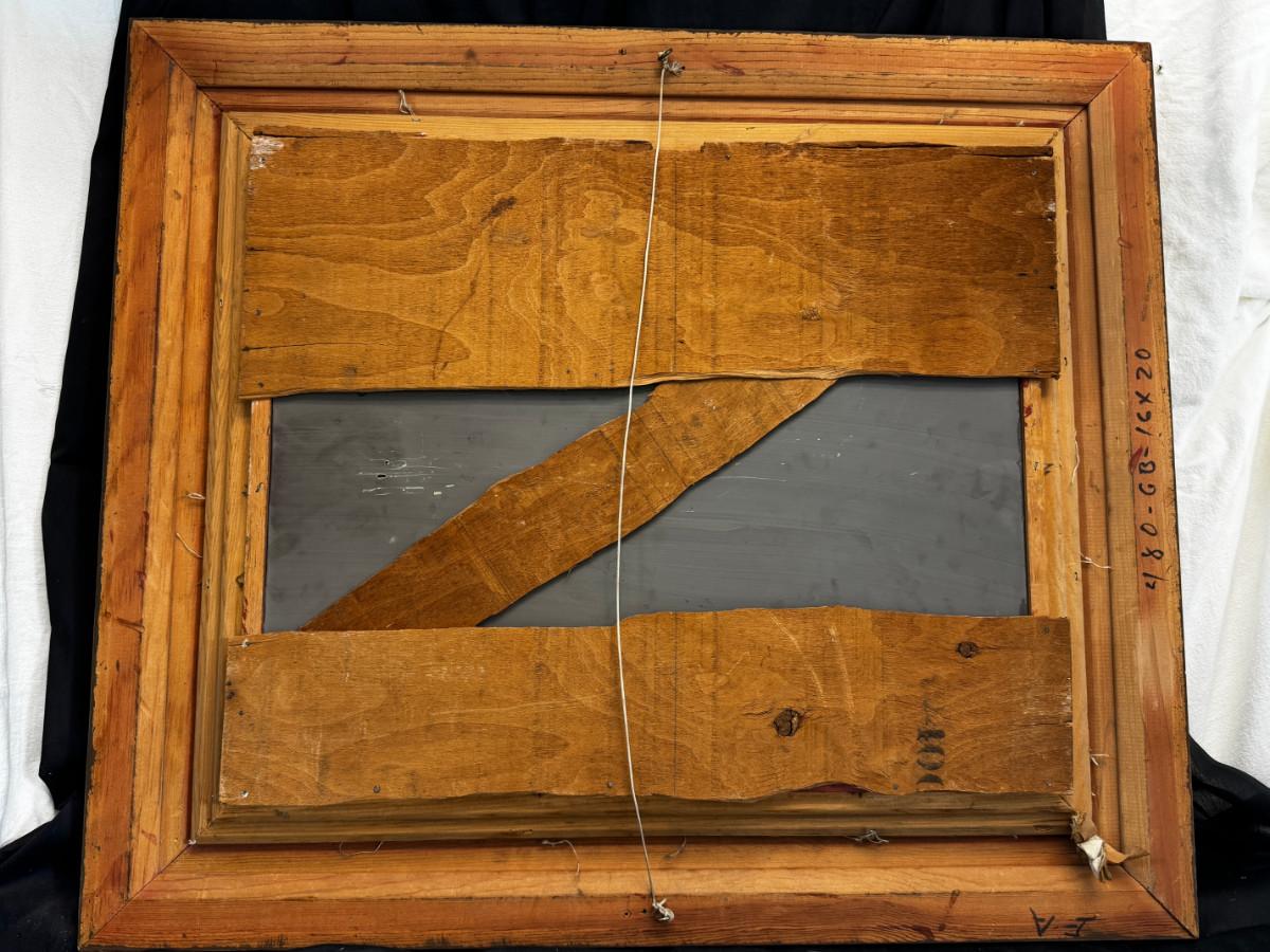 Unknown if water color is print or original no signature viable, Mirror has marks and wear