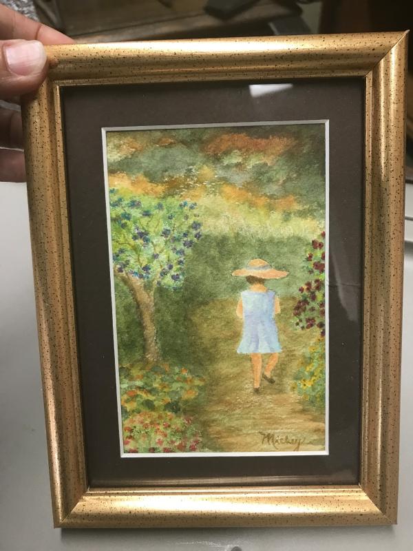Framed Watercolor Miniatures "Girl Path" by Mickey