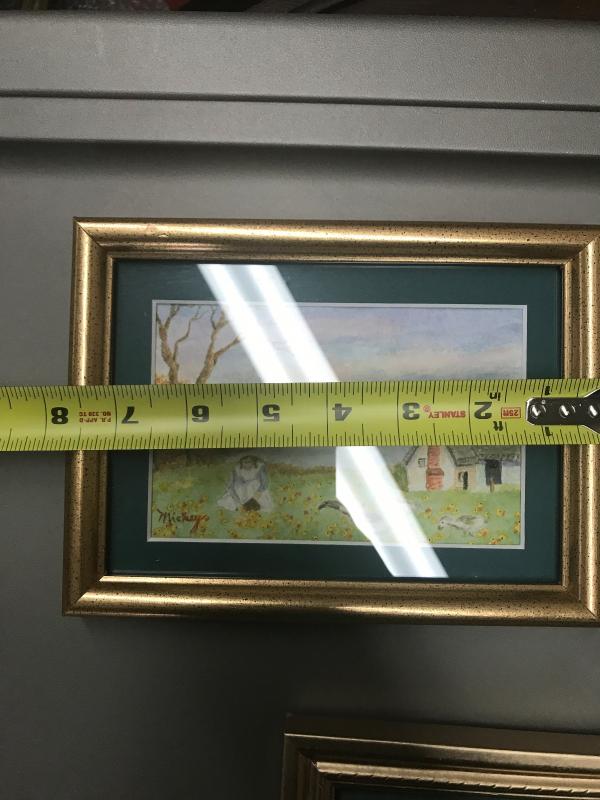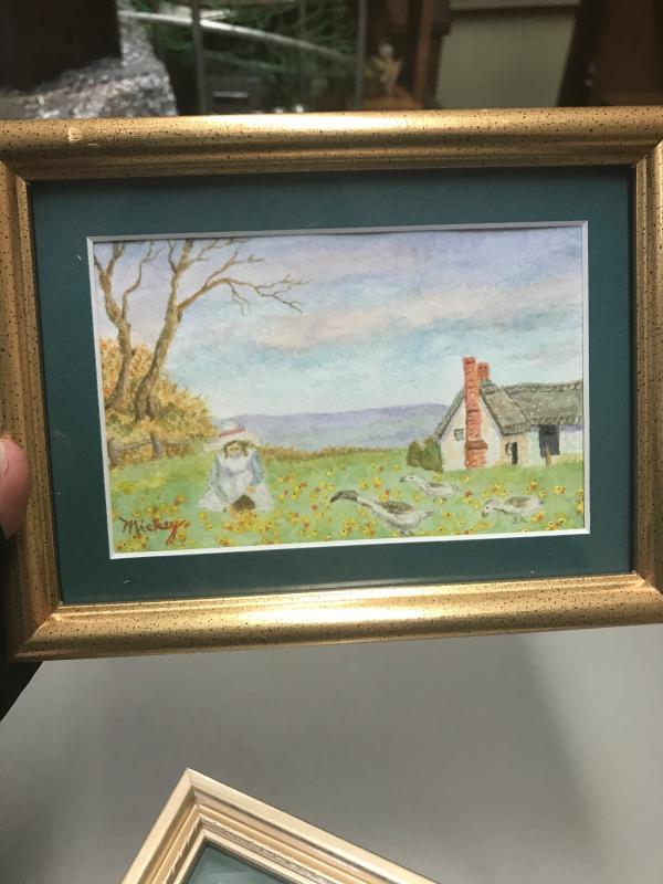 Framed Watercolor Miniatures "Girl with Geese" by Mickey