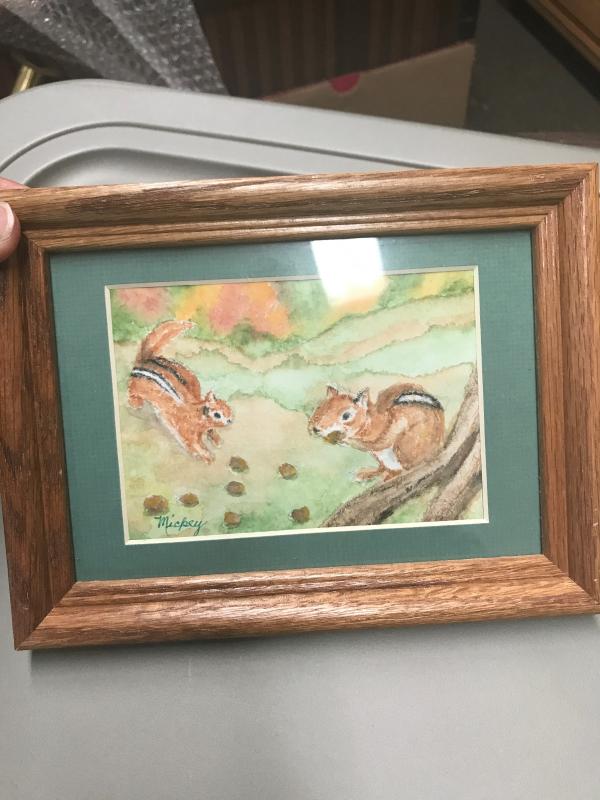 Framed Watercolor Miniatures "Squirrels" by Mickey