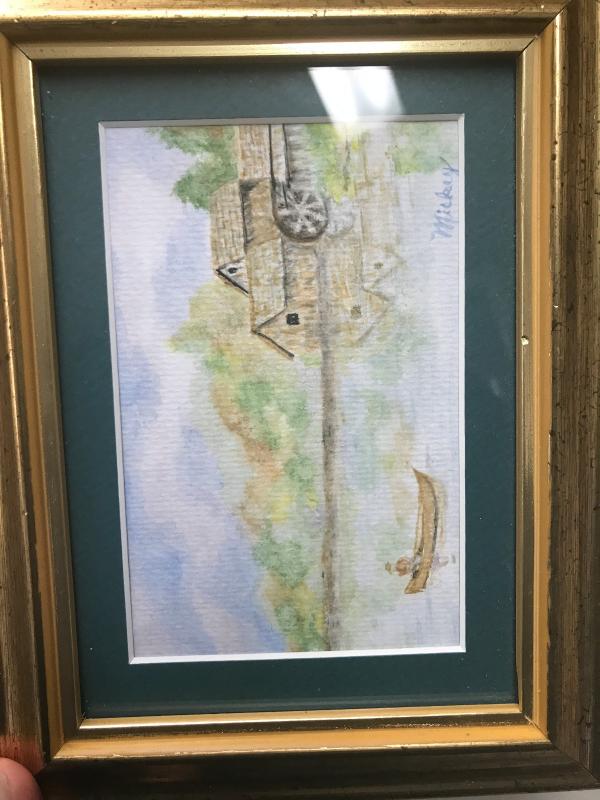 Framed Watercolor Miniatures "Water Wheel" by Mickey