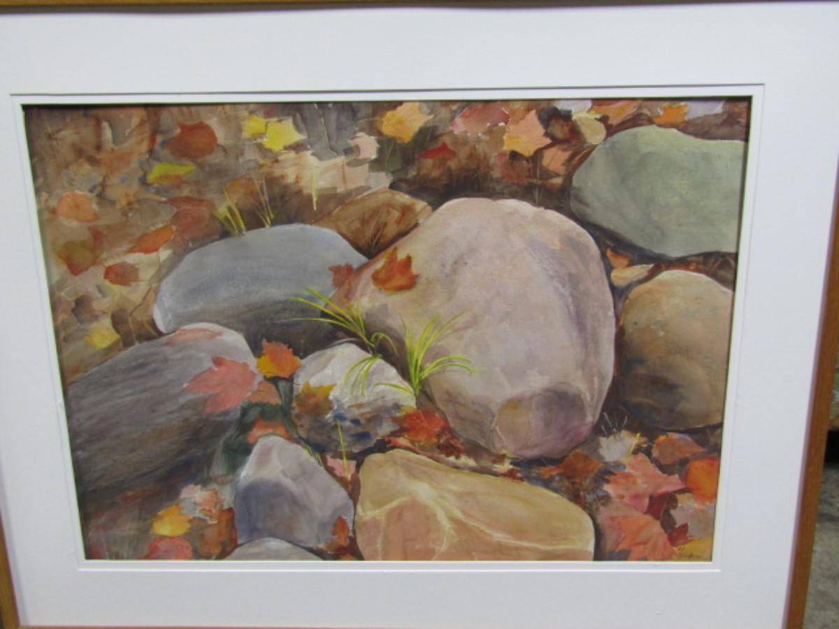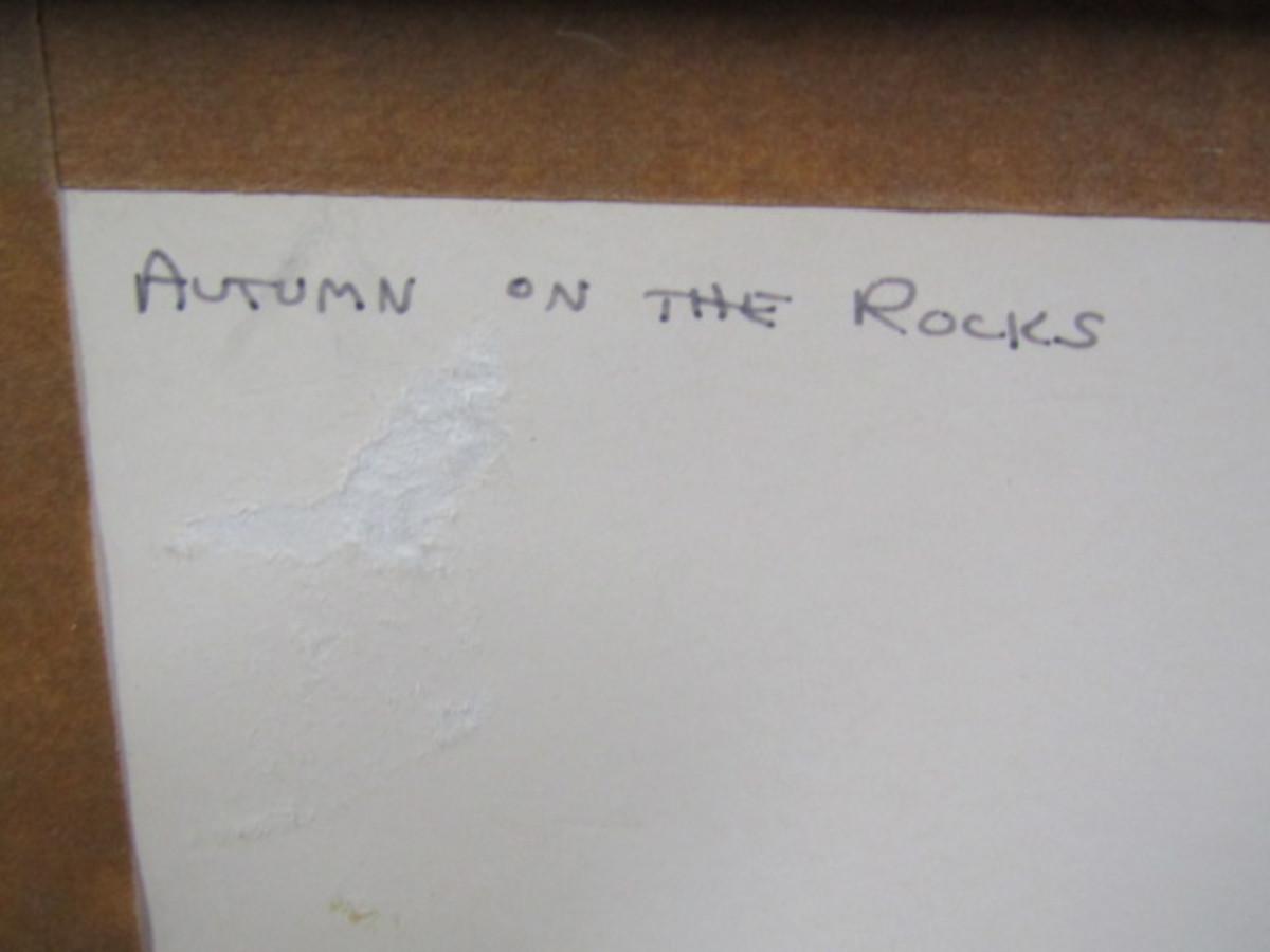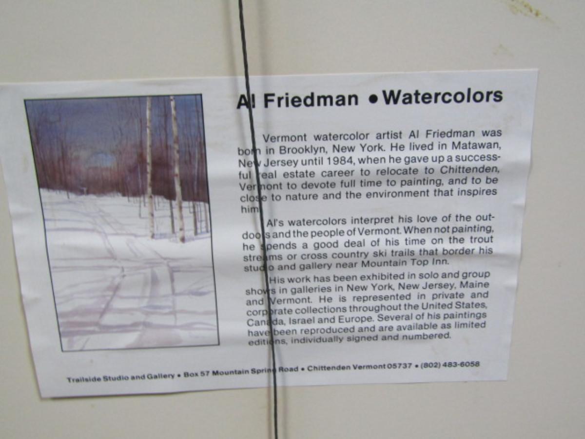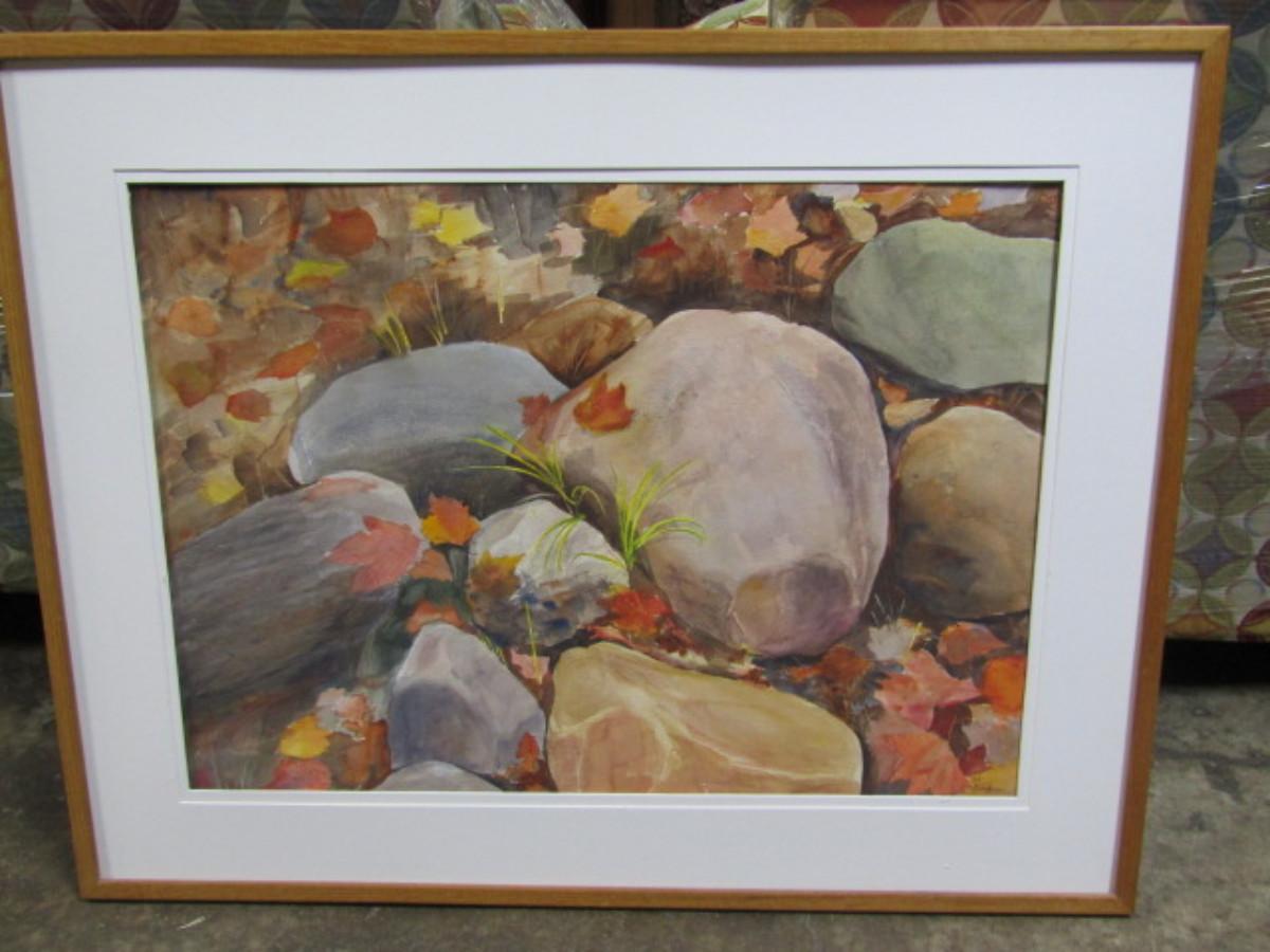 Framed Watercolor Print by Al Friedman- 'Autumn on the Rocks'. Third party shipping only available i.e. UPS Store, Frontier, etc. Auction house will not personally pack and ship this item.