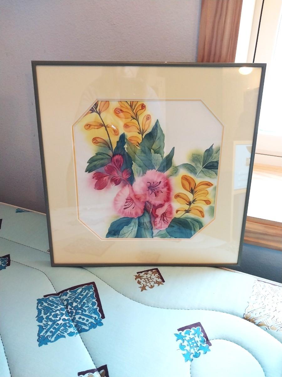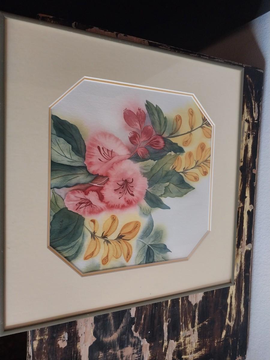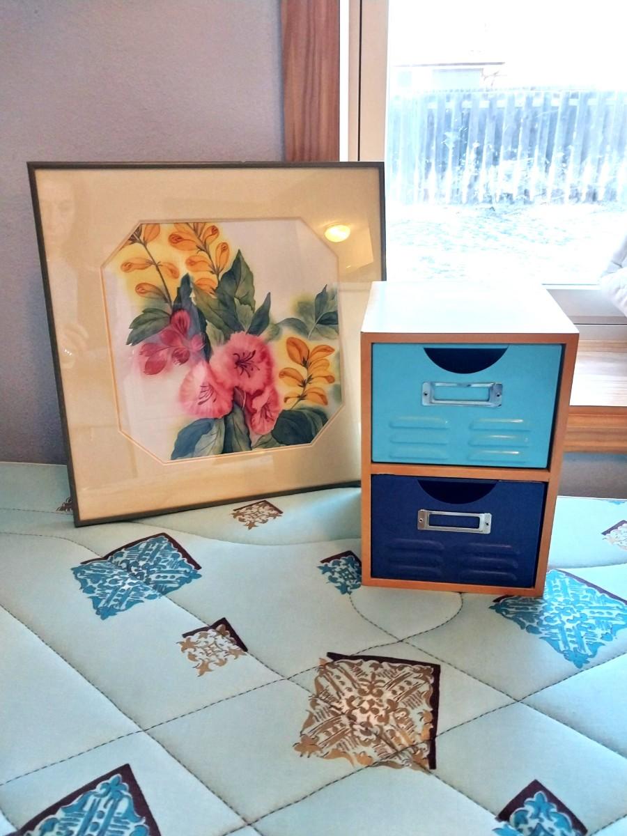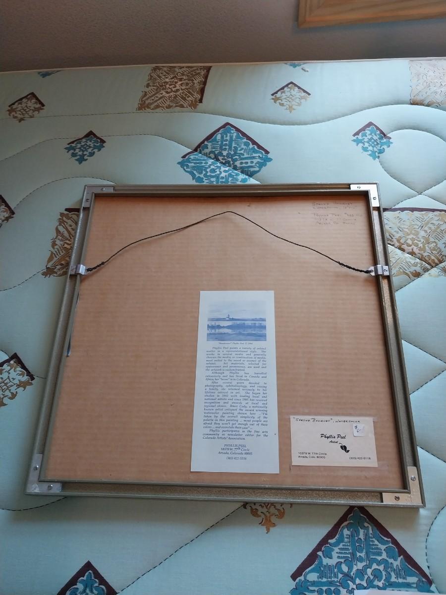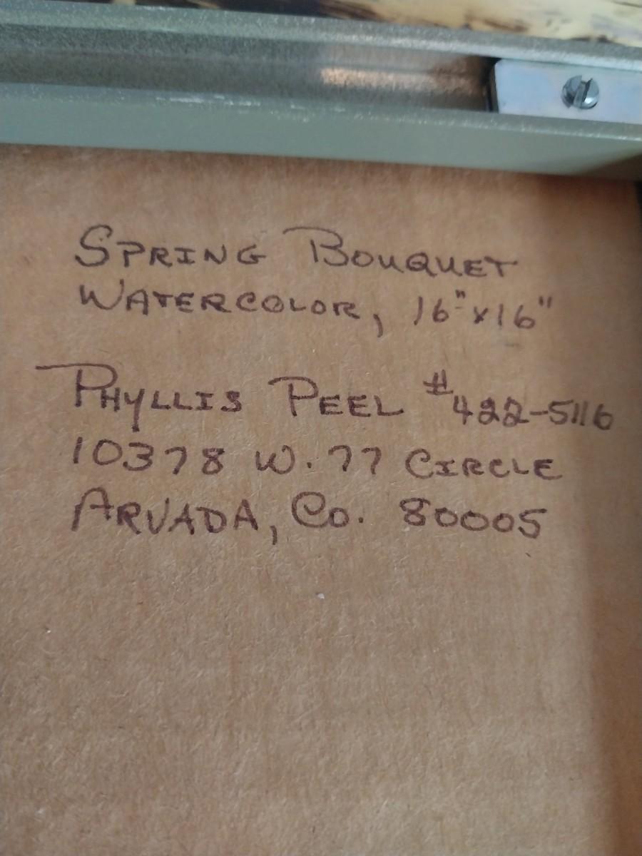 FRAMED WATERCOLOR "SPRING BOUQUET" BY PHYLLIS PEEL & A FILE BOX
